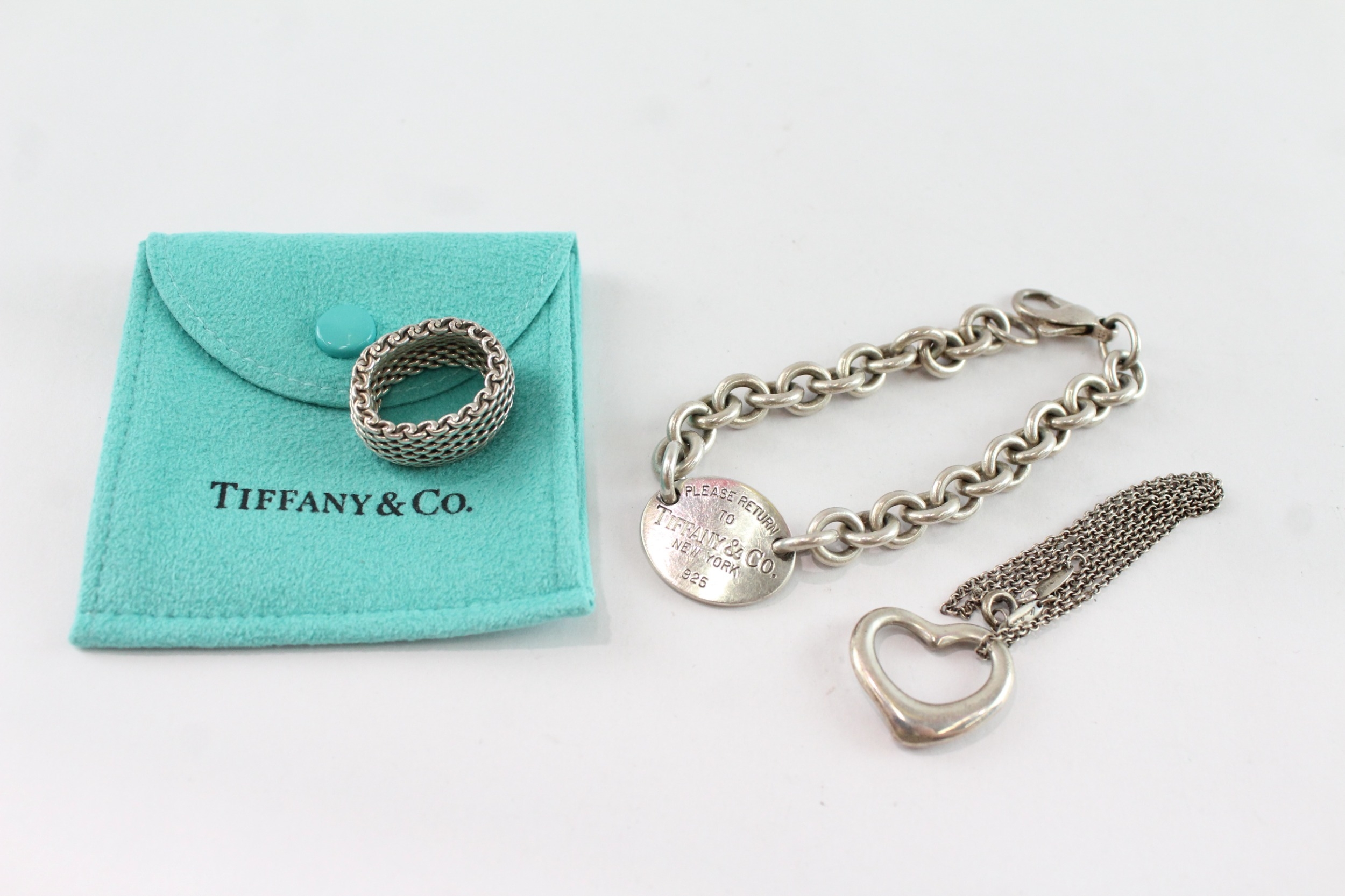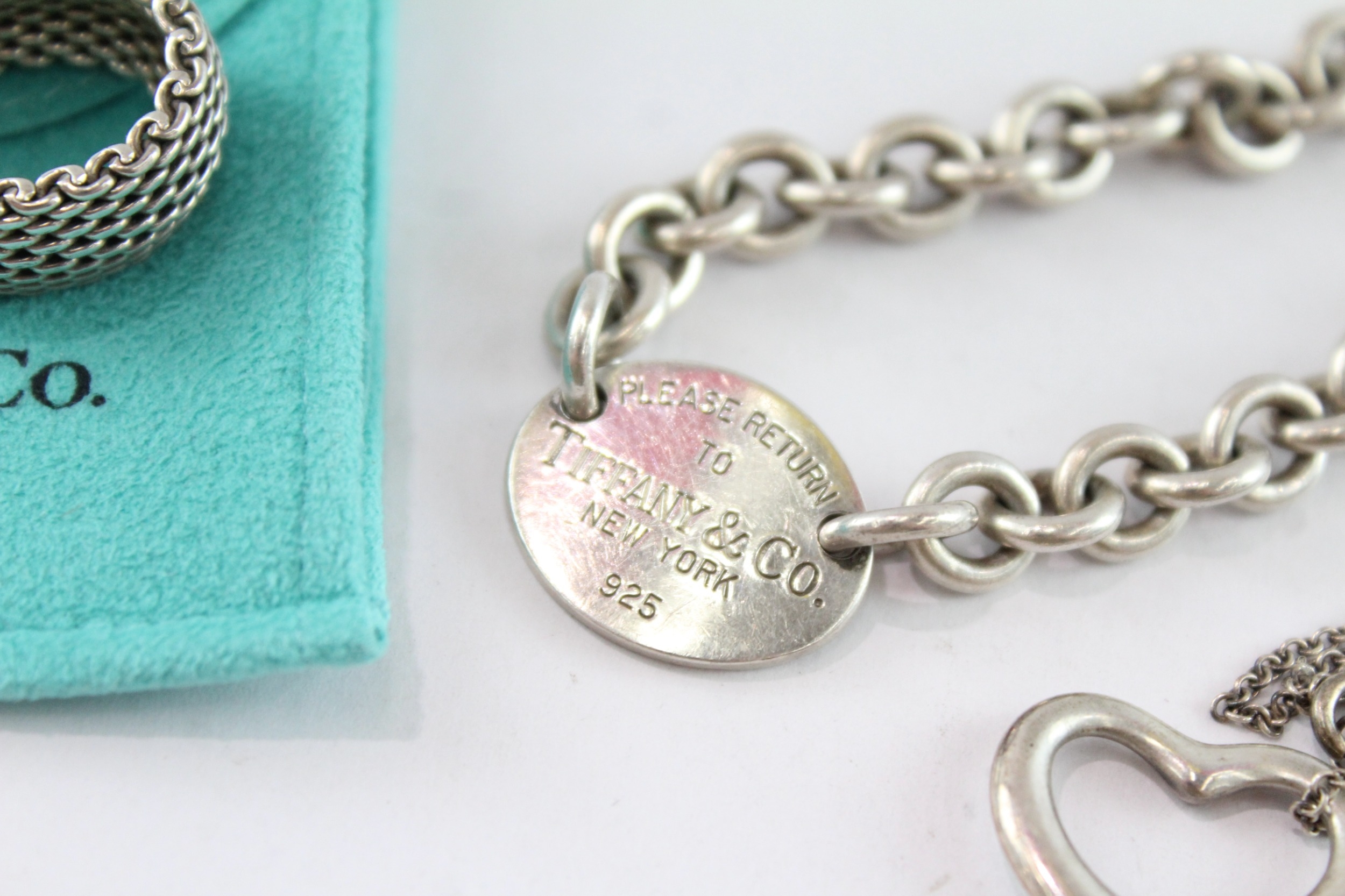 Collection of Sterling Silver Tiffany & Co Jewellery inc. Bracelet, Necklace, Ring x 3 (44g)