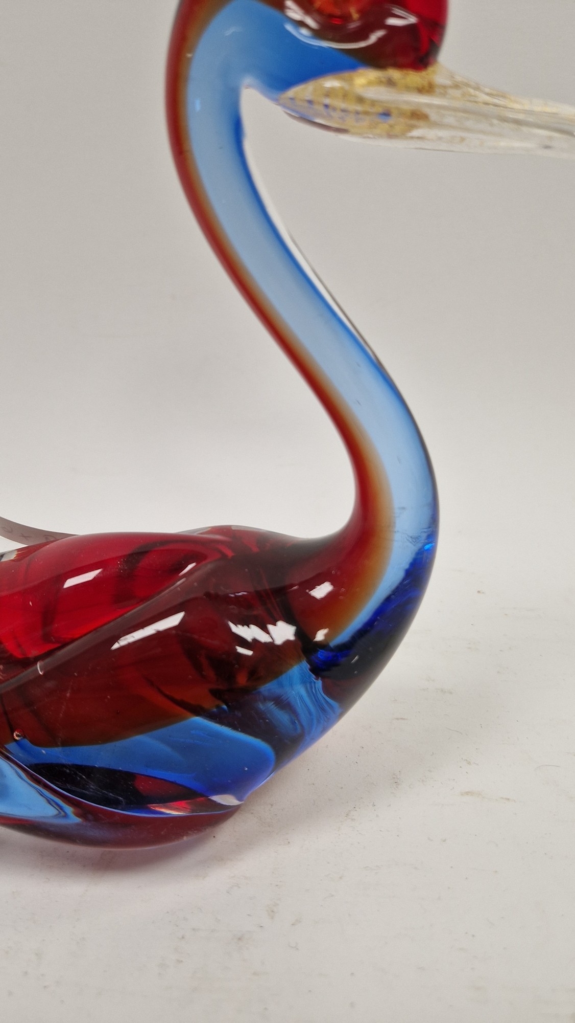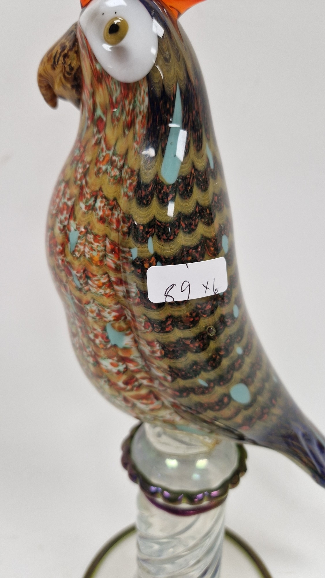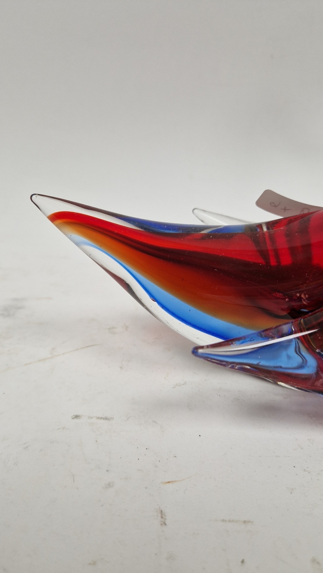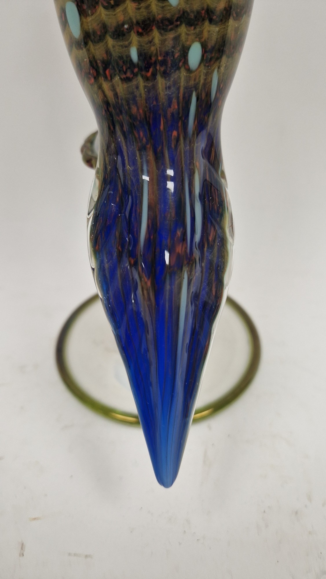 Small quantity of glass animals to include a Murano-style parrot, fish on pedestal base, a Murano duck in red and blue colourway, a Laguna Glass angel fish model, a Crystal D'arques dolphin and a Murano-style gren and yellow glass fish (6)