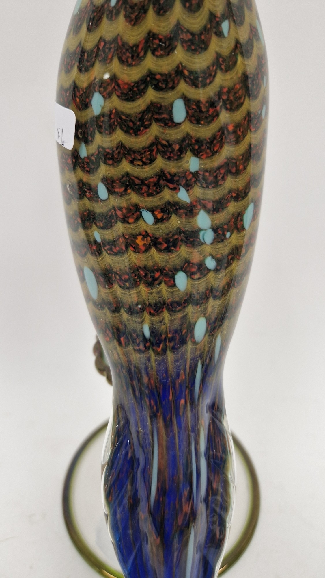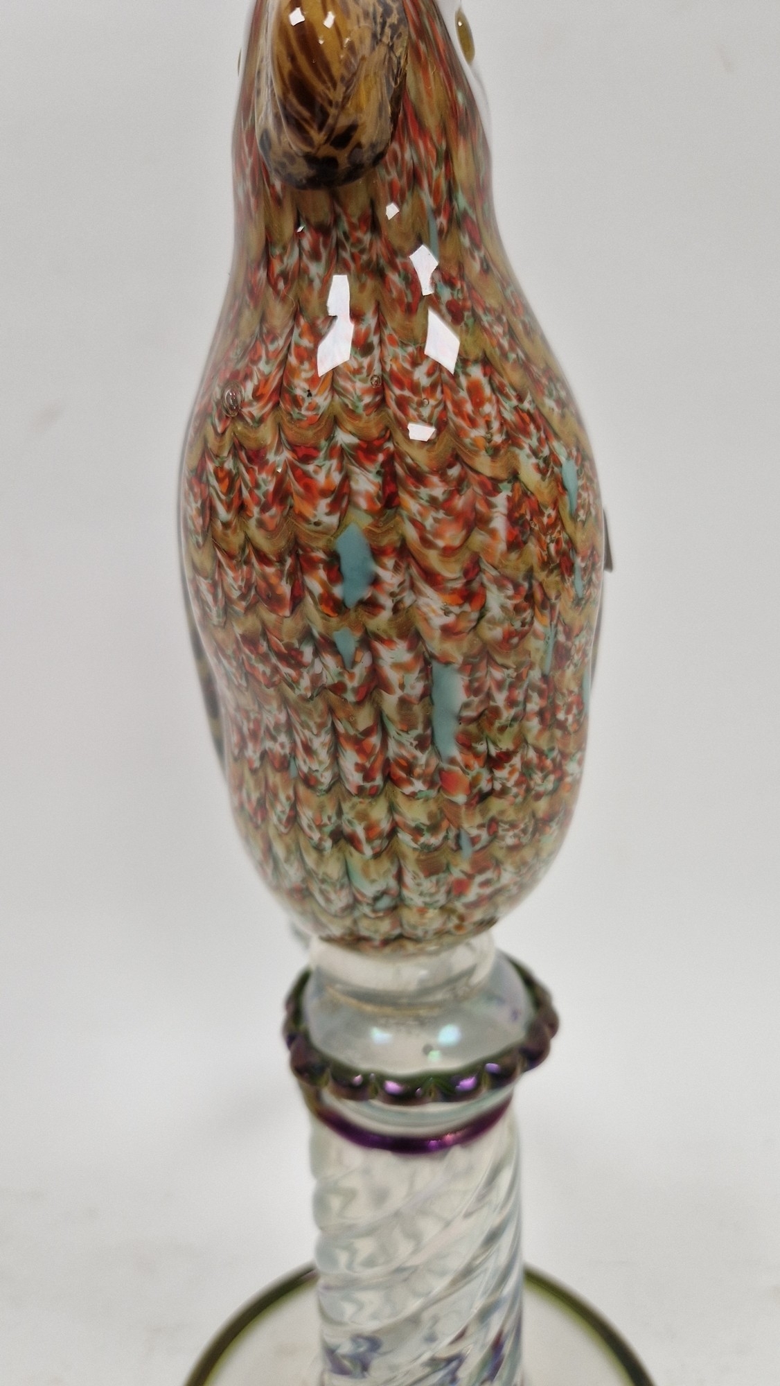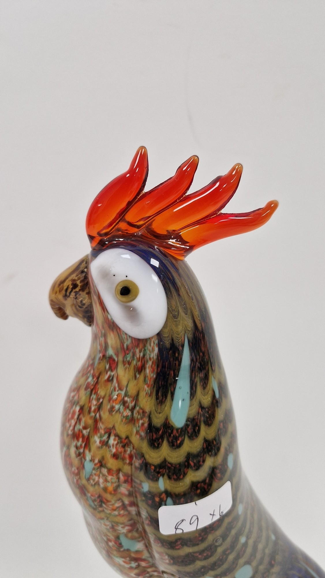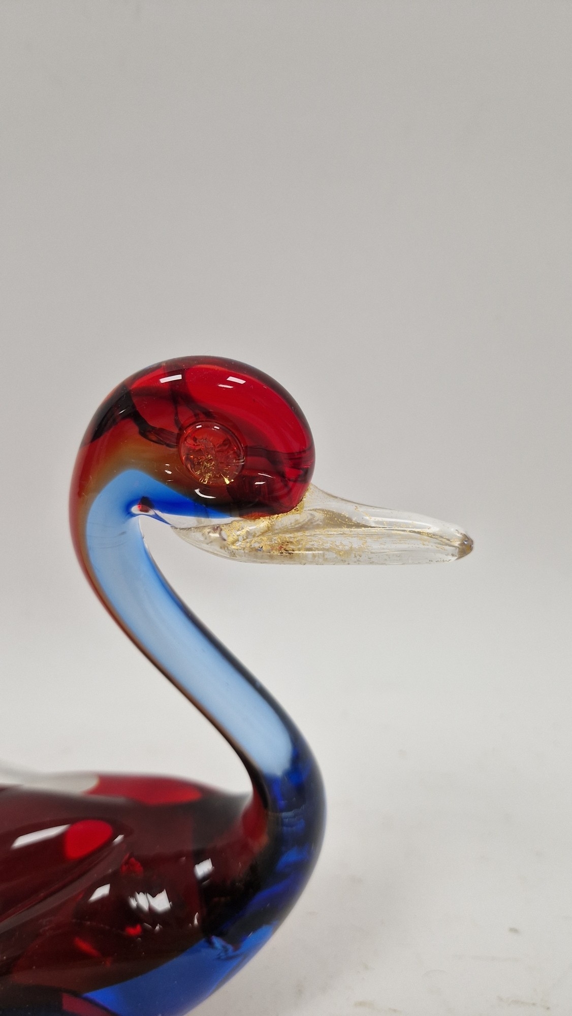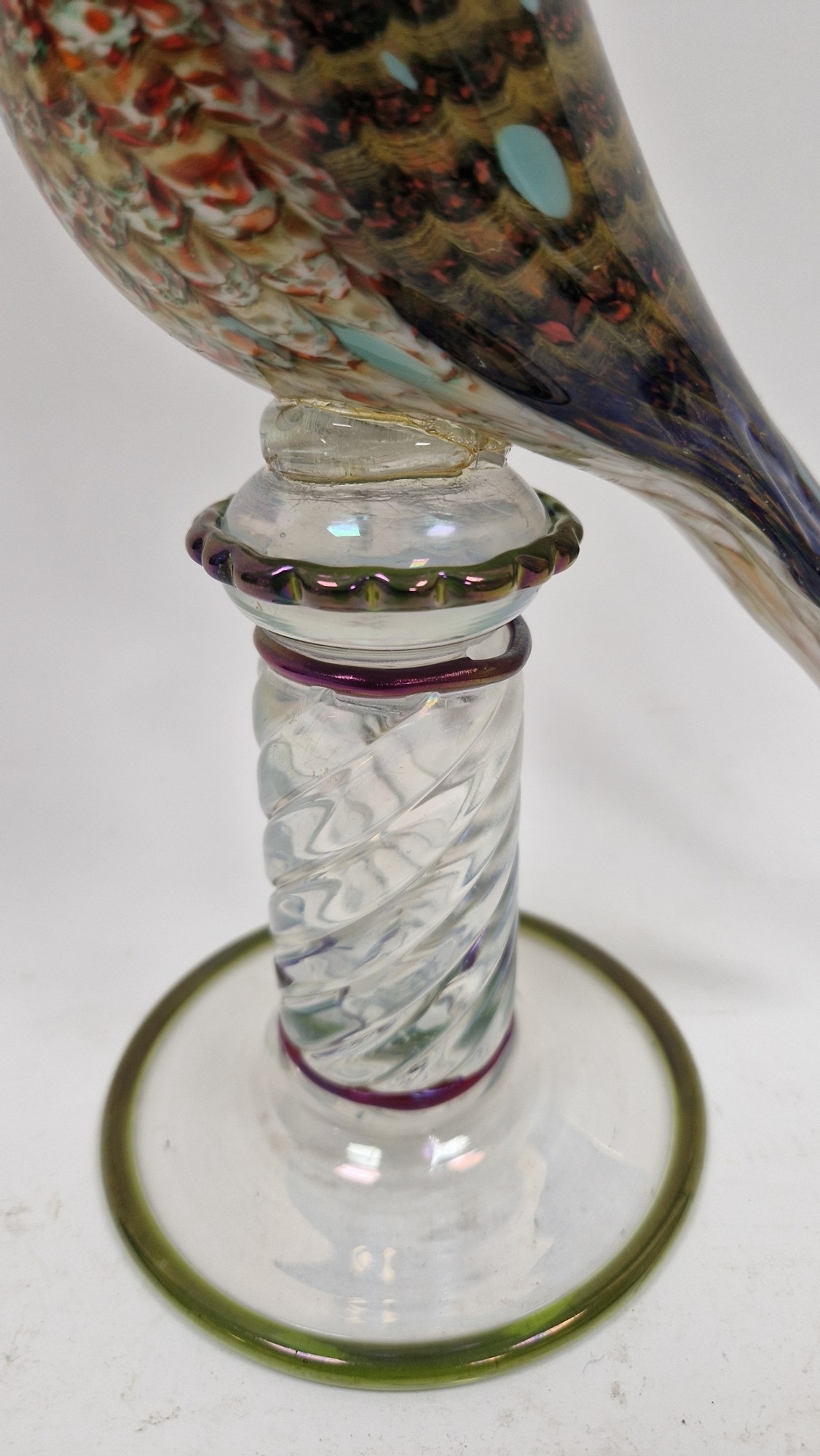 Small quantity of glass animals to include a Murano-style parrot, fish on pedestal base, a Murano duck in red and blue colourway, a Laguna Glass angel fish model, a Crystal D'arques dolphin and a Murano-style gren and yellow glass fish (6)