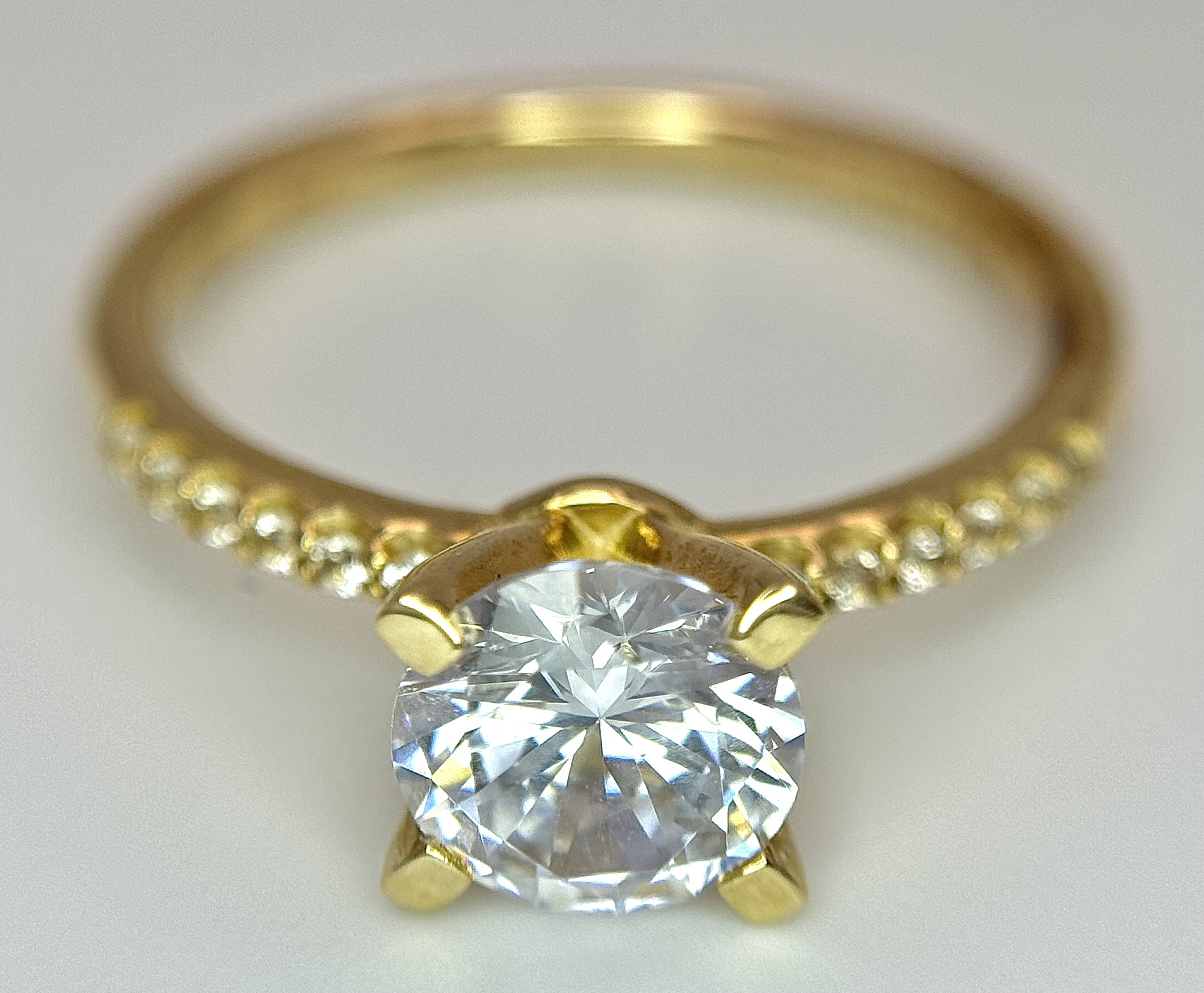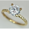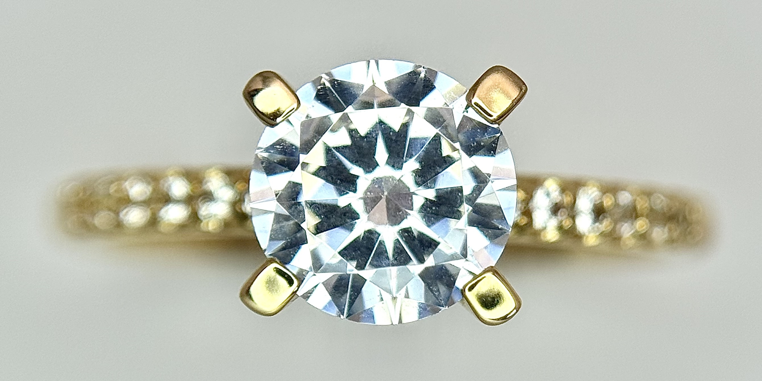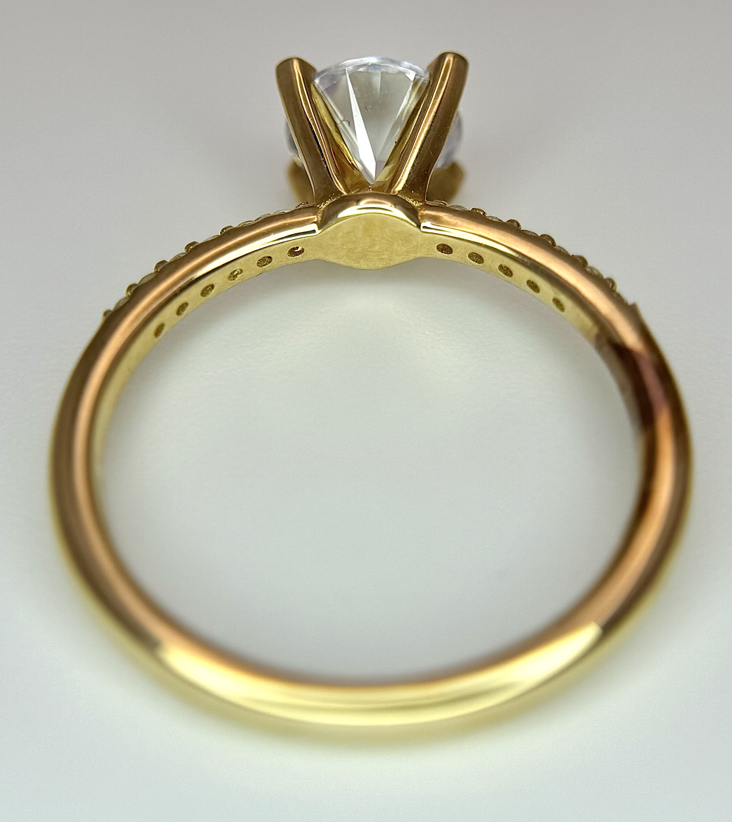 A Glamira 14K Yellow Gold Swarovski Crystal Ring. Size R1/2, 3.93g total weight. Comes with box, pouch, certificate of authenticity and lifetime warranty card. STK025334