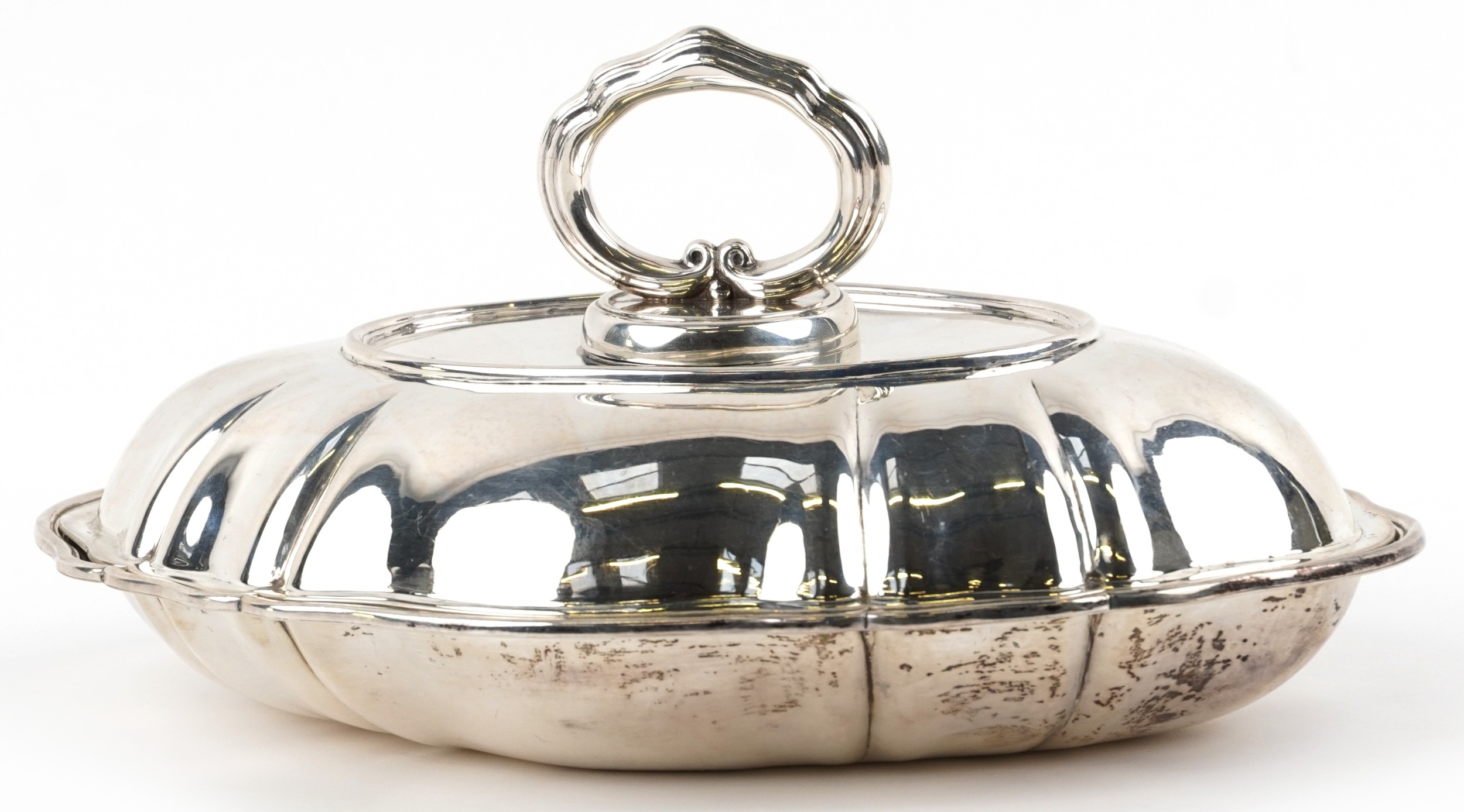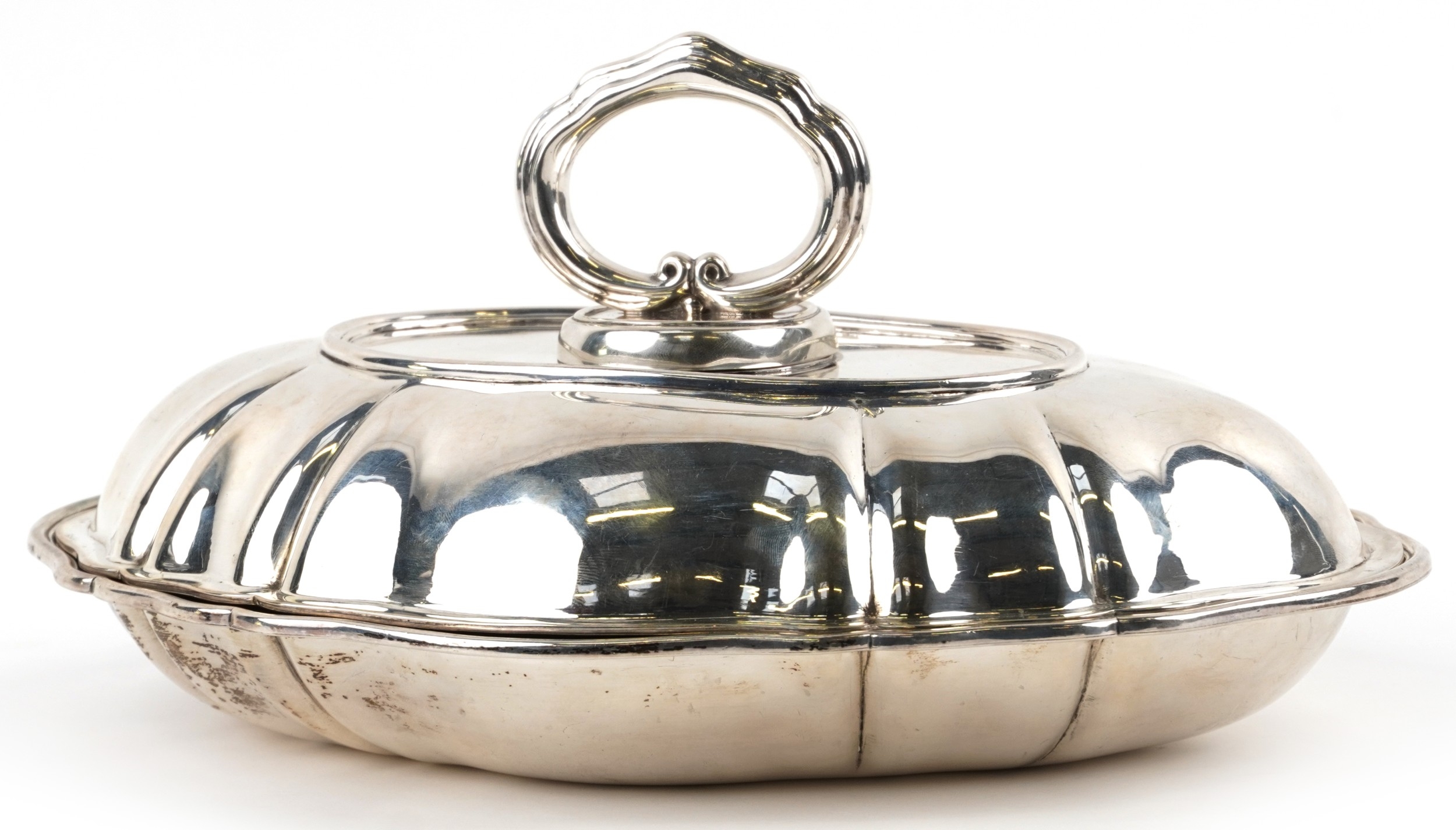 An American sterling silver entrée dish and cover, stamped M Levy Sterling, 29cm wide, 1095.0g.