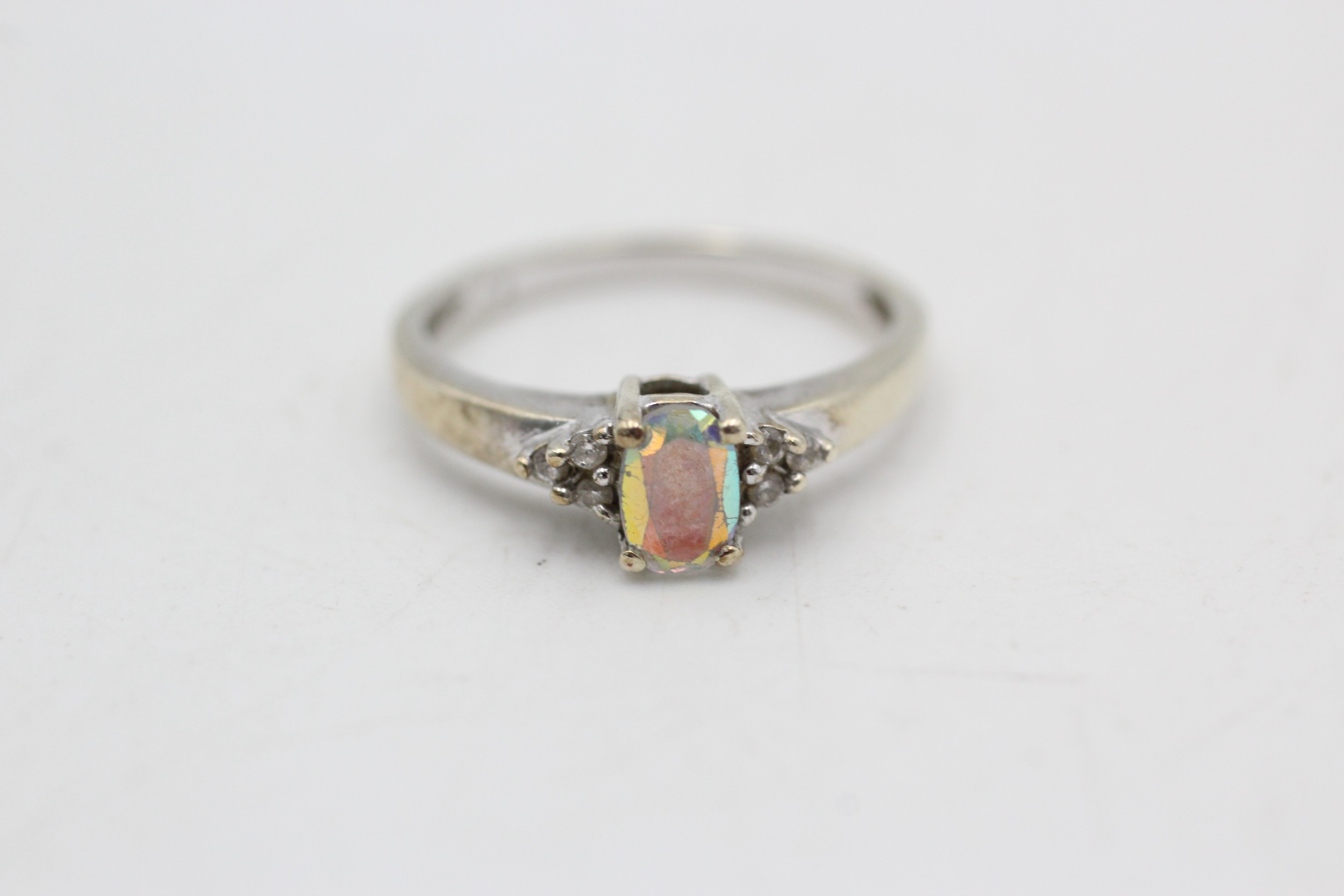 9ct gold clear gemstone set dress ring (2.2g) SIZE N