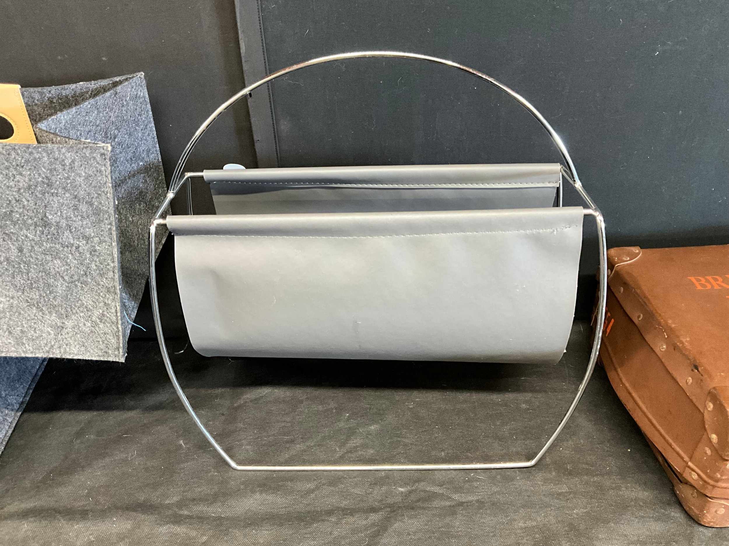 VINTAGE SUITCASE, MAGAZINE RACK ETC