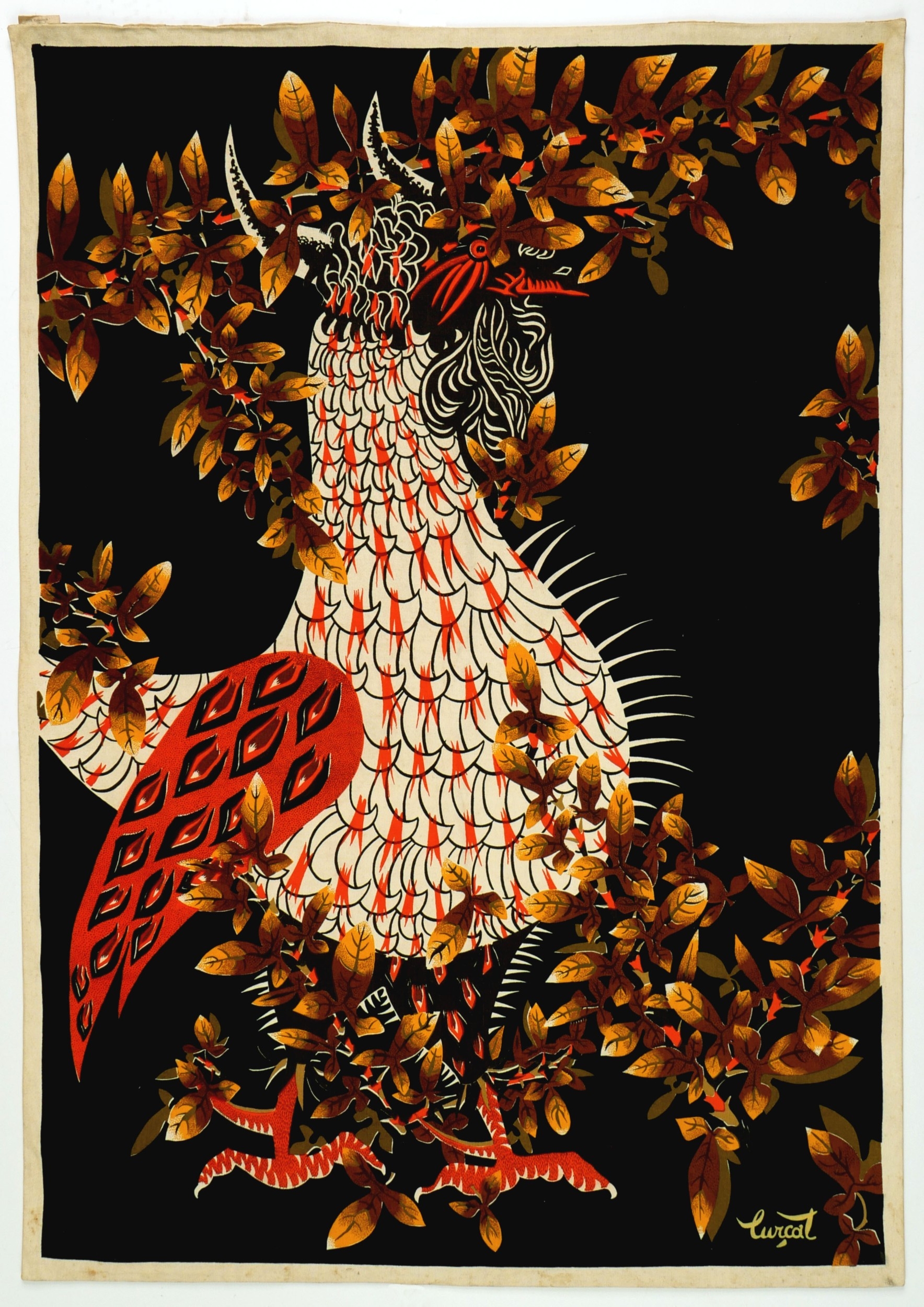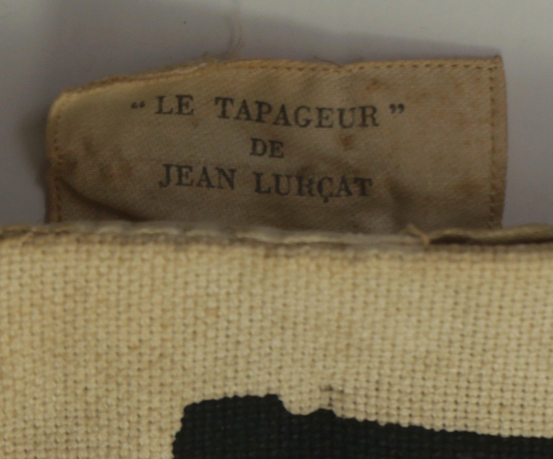 JEAN LURCAT. LA TAPAGEUR. large French printed tapestry, signed in the plate, 1957, Corot label verso, 168 cmx 123cm.