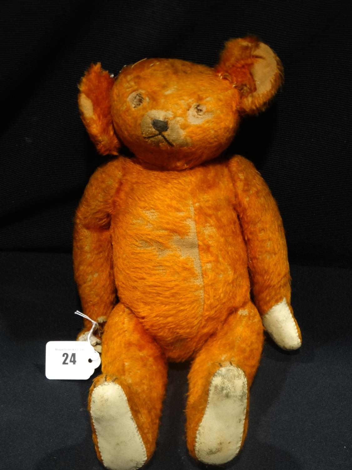 An Antique Red Mohair Musical Teddy Bear 15 Inches Long (Af)