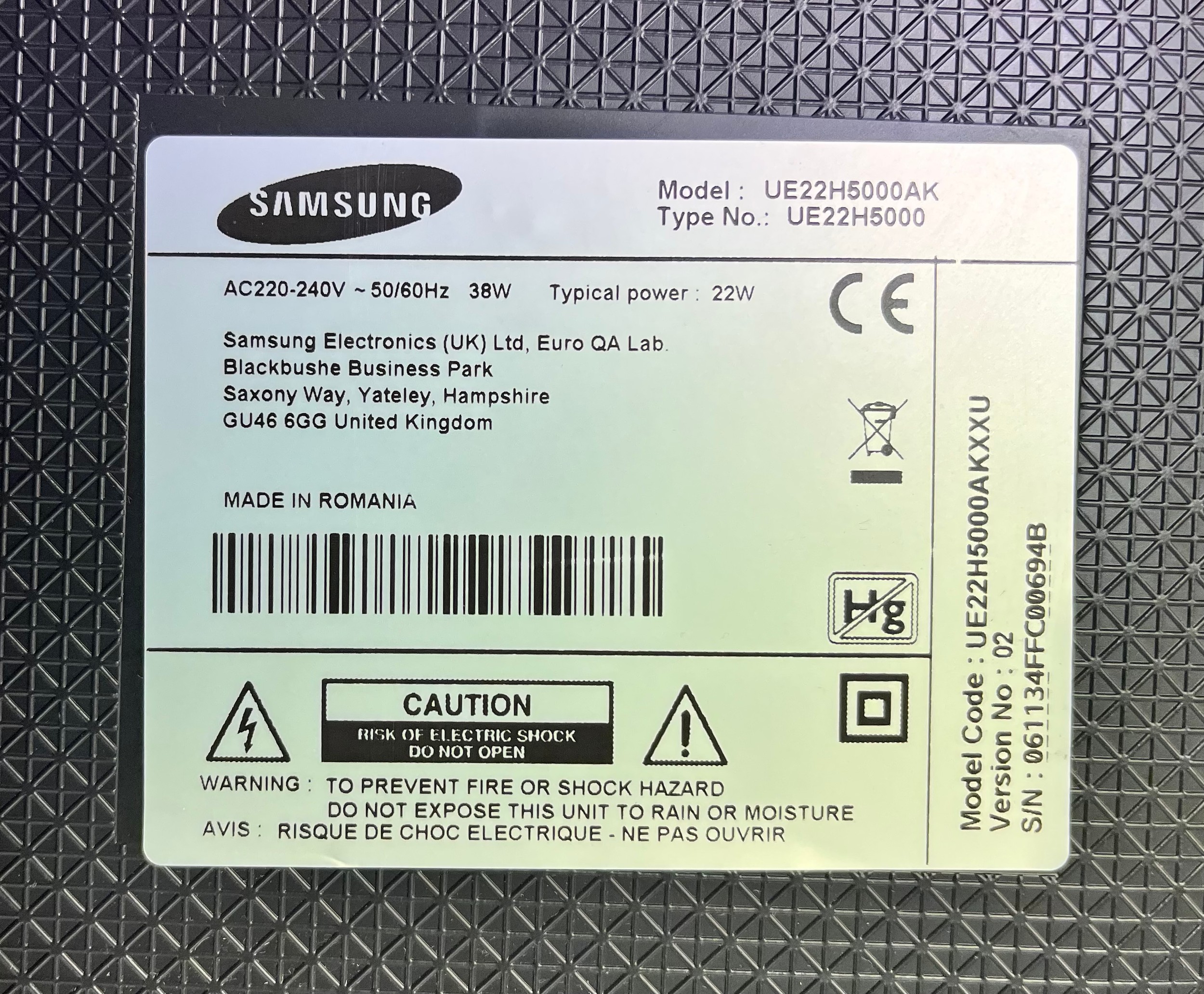 SAMSUNG LED 22 INCH TV