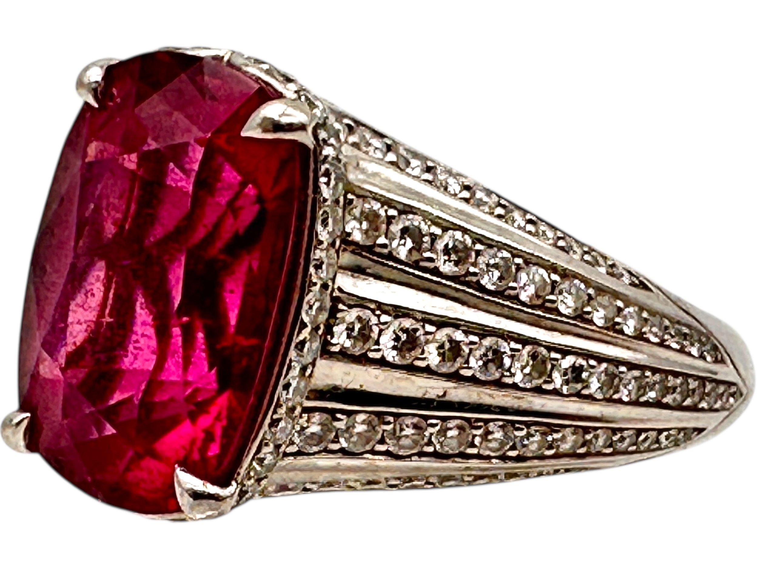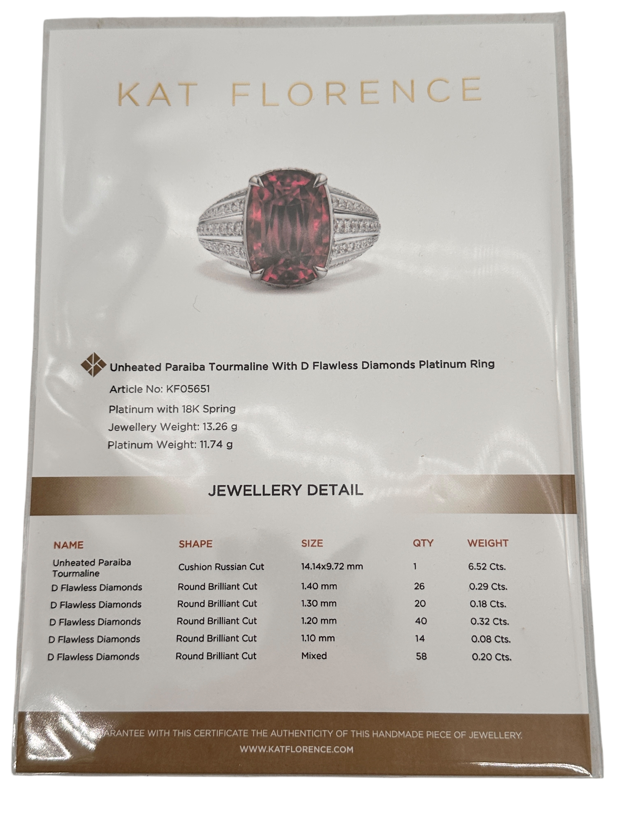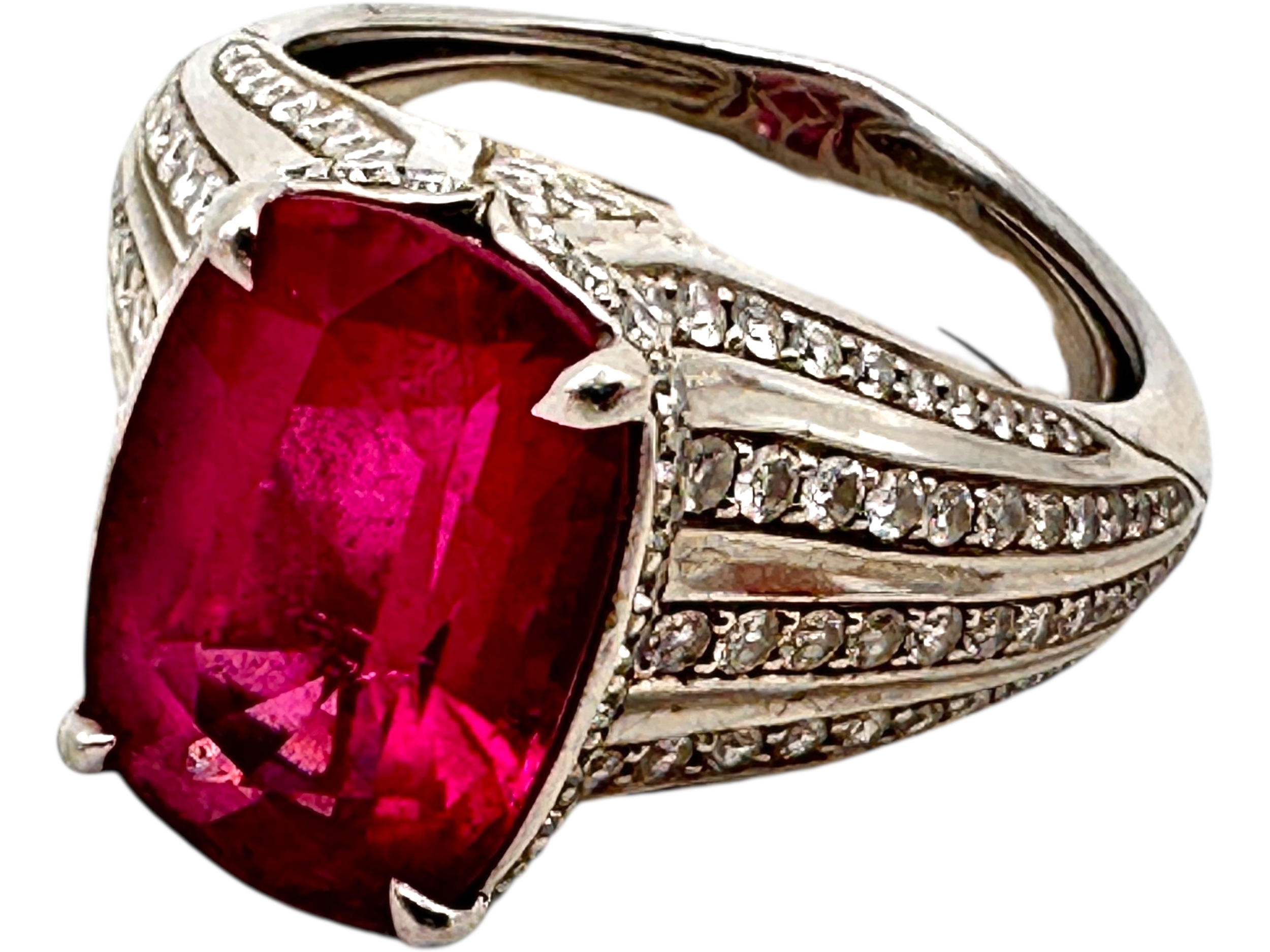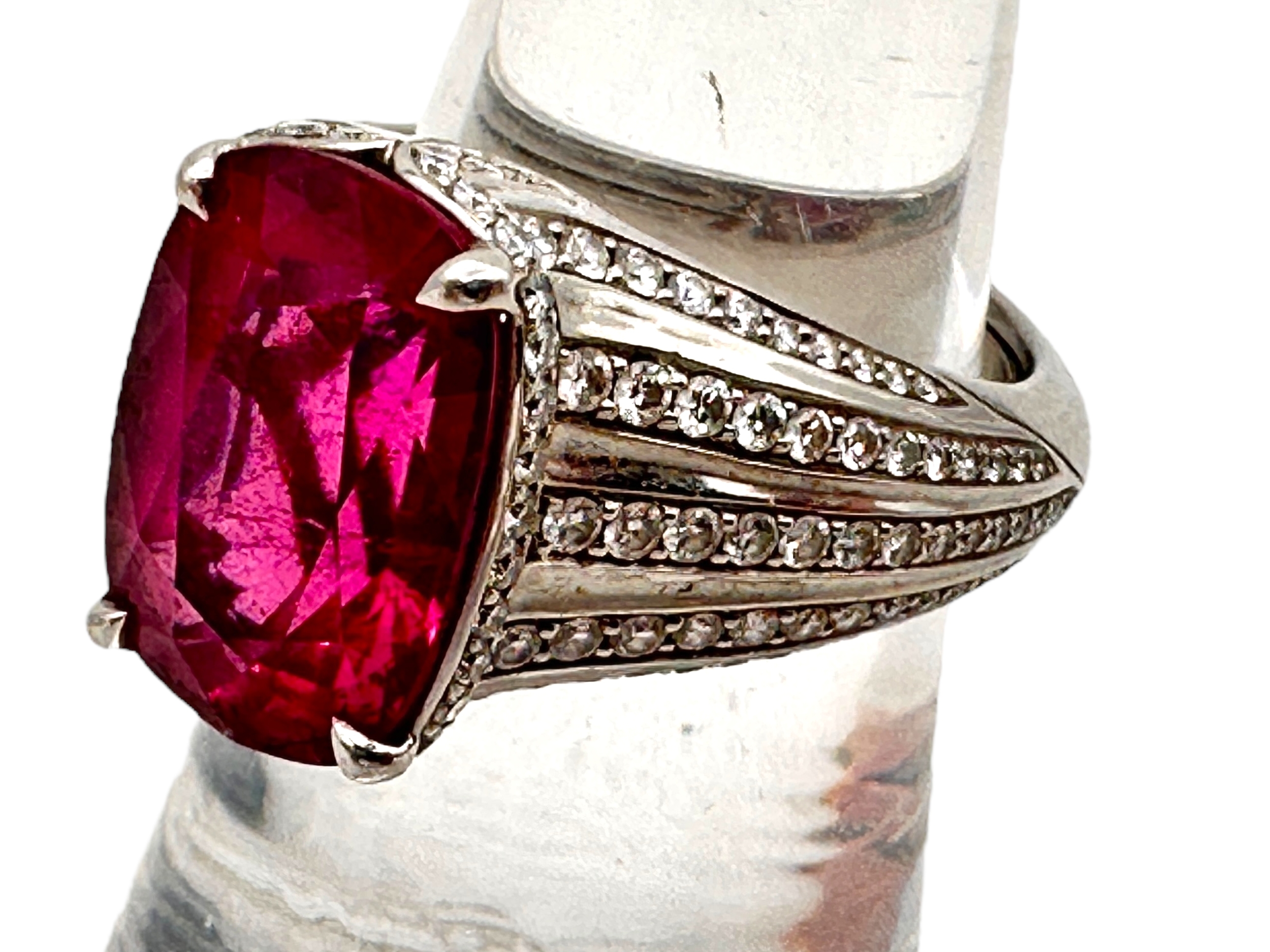 Kat Florence - 6.52 ct Unheated Paraiba Tourmaline - Rubellite Ring. Set in Platinum with 158, 1.07 Cts of D Flawless Diamonds. 11.74g of Platinum. Viewing by Appointment