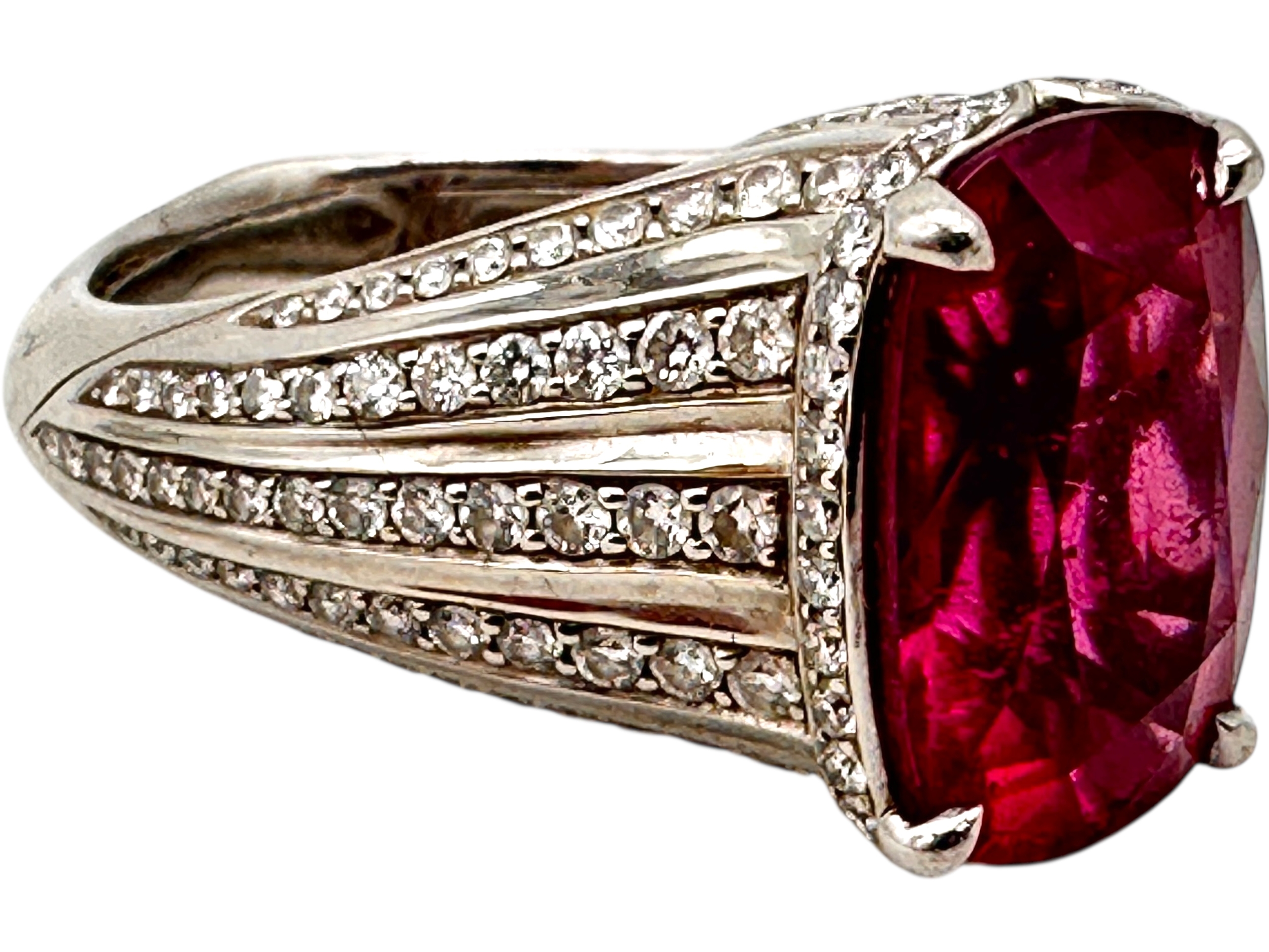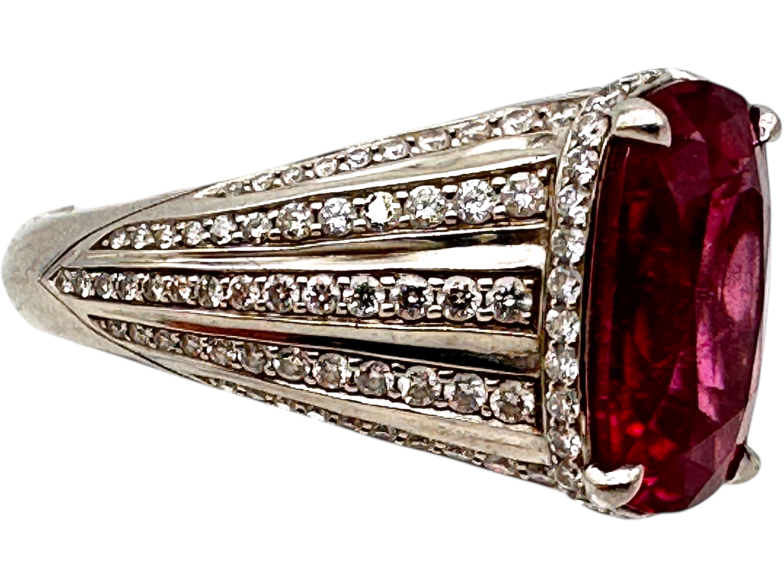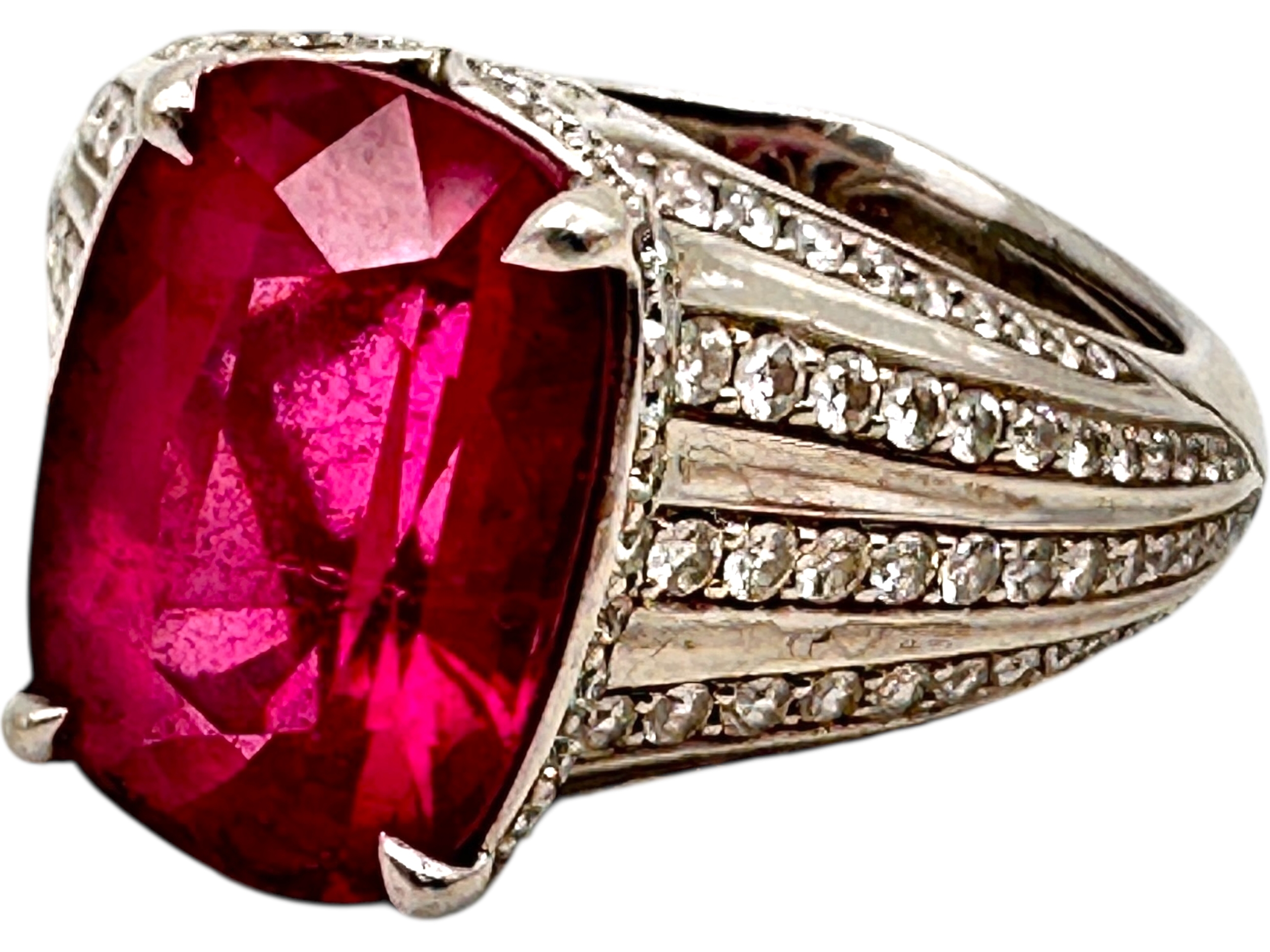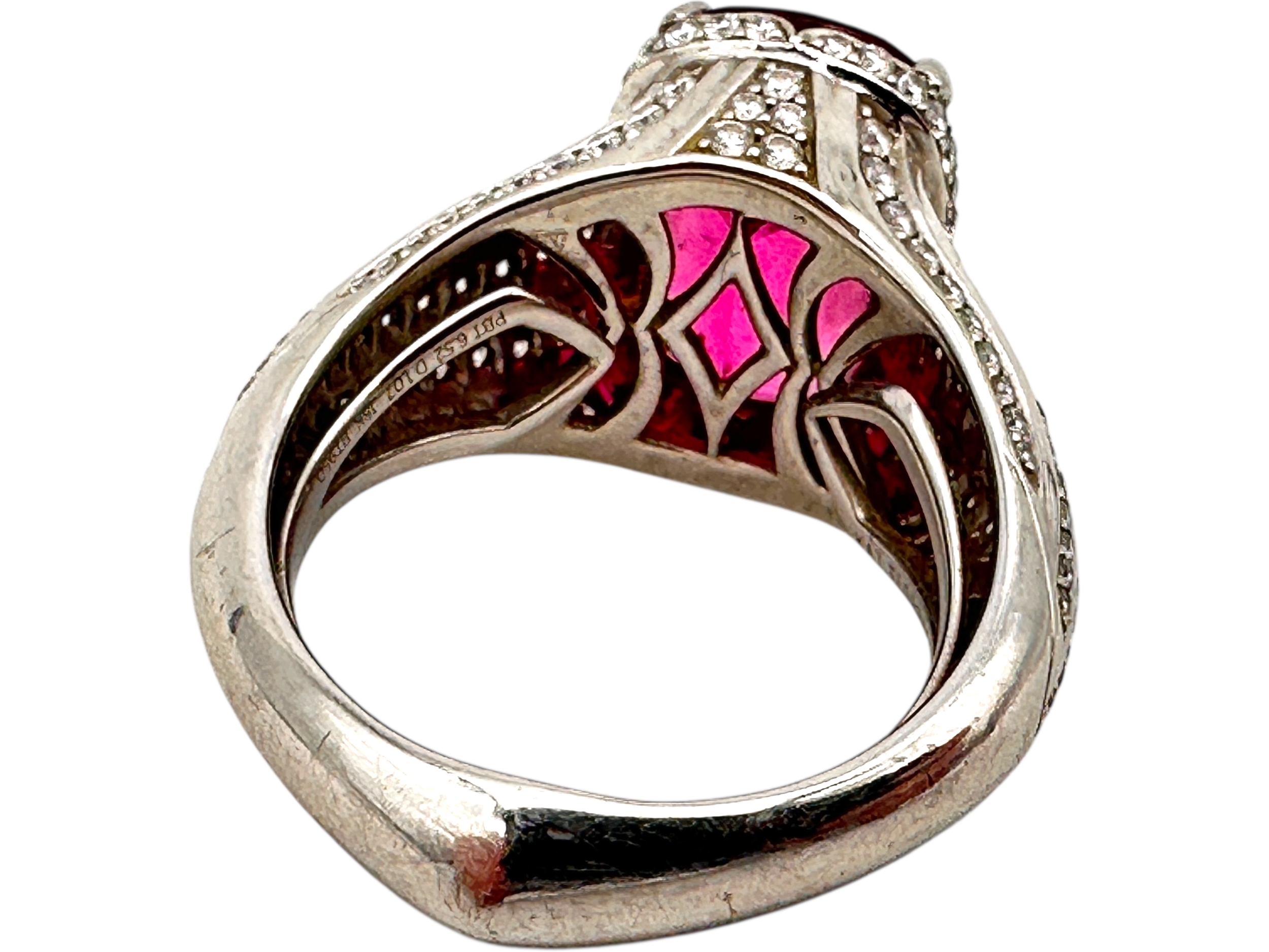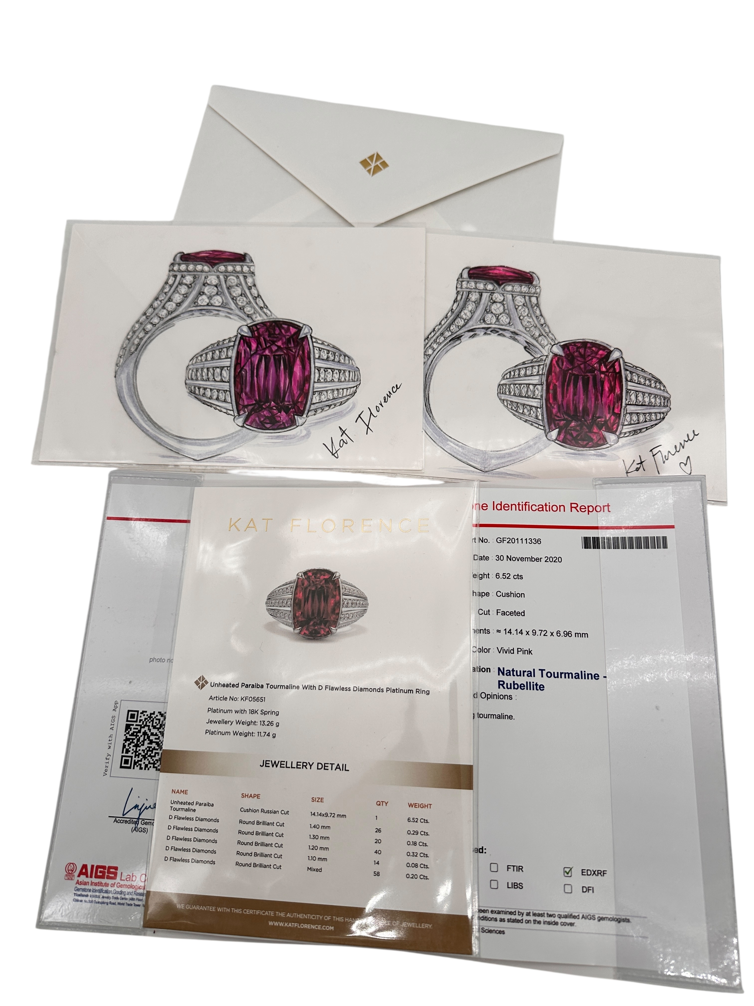 Kat Florence - 6.52 ct Unheated Paraiba Tourmaline - Rubellite Ring. Set in Platinum with 158, 1.07 Cts of D Flawless Diamonds. 11.74g of Platinum. Viewing by Appointment