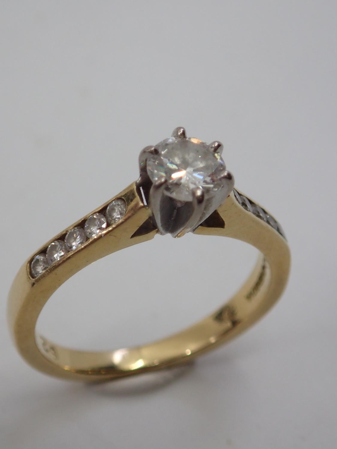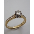 A diamond solitaire ring set with diamond shoulders
