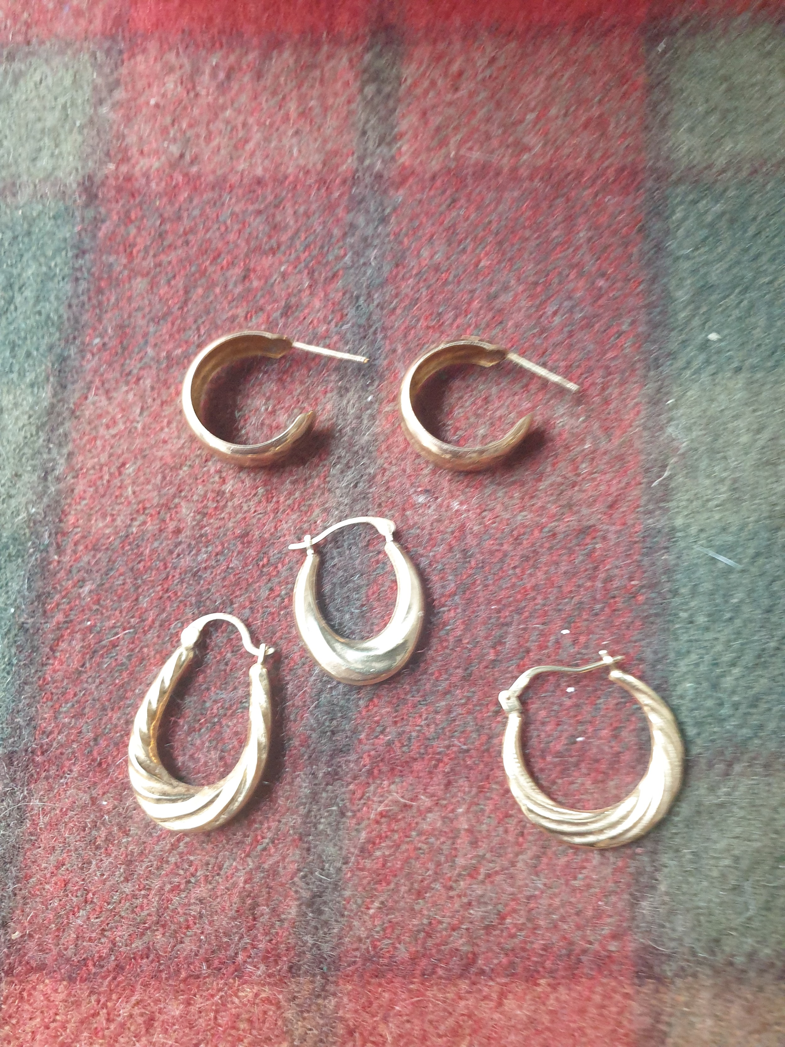 Pair 9ct Gold Ear Rings And Three 9ct Gold Earrings Total Weight 3.1grams.