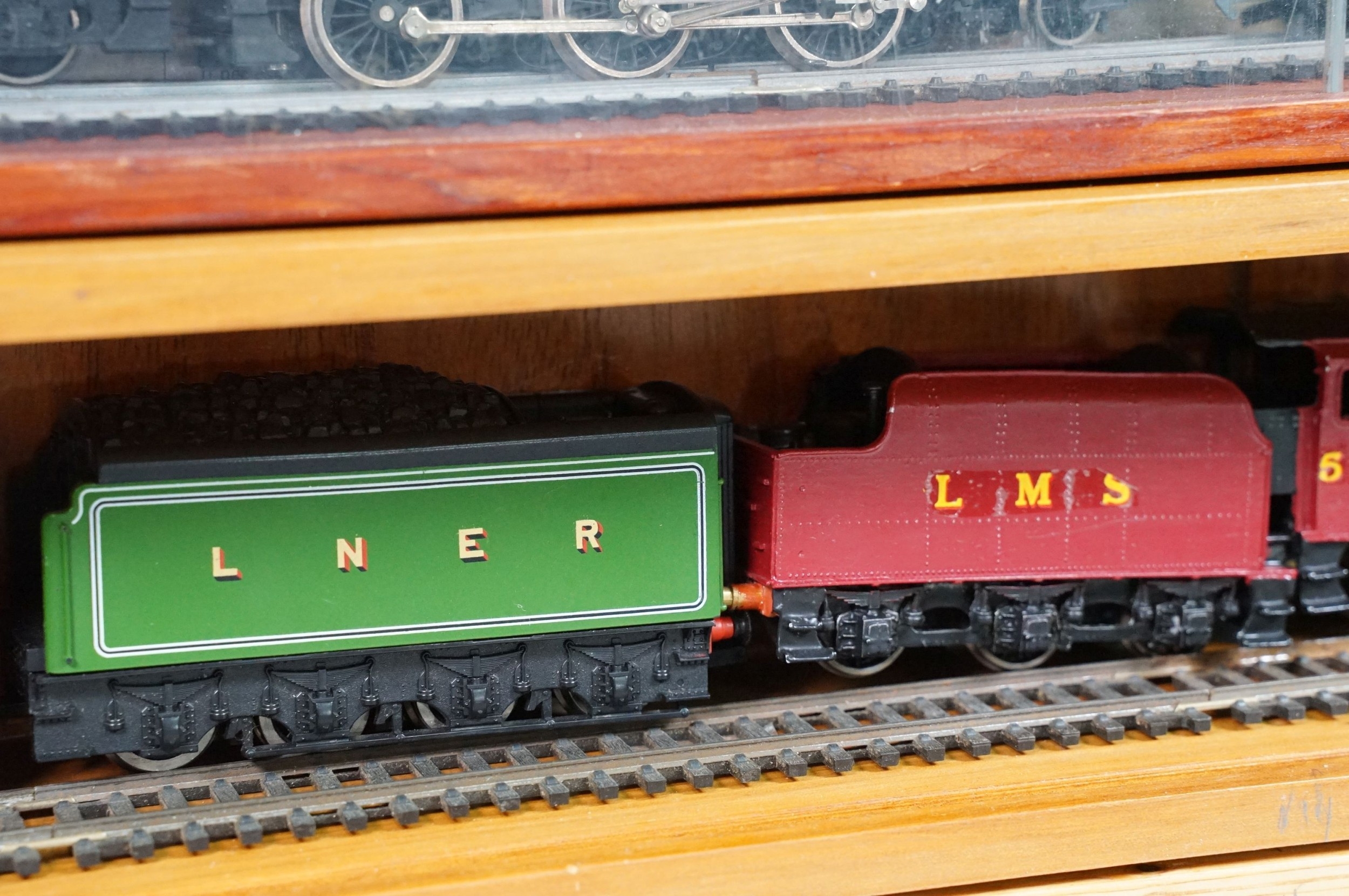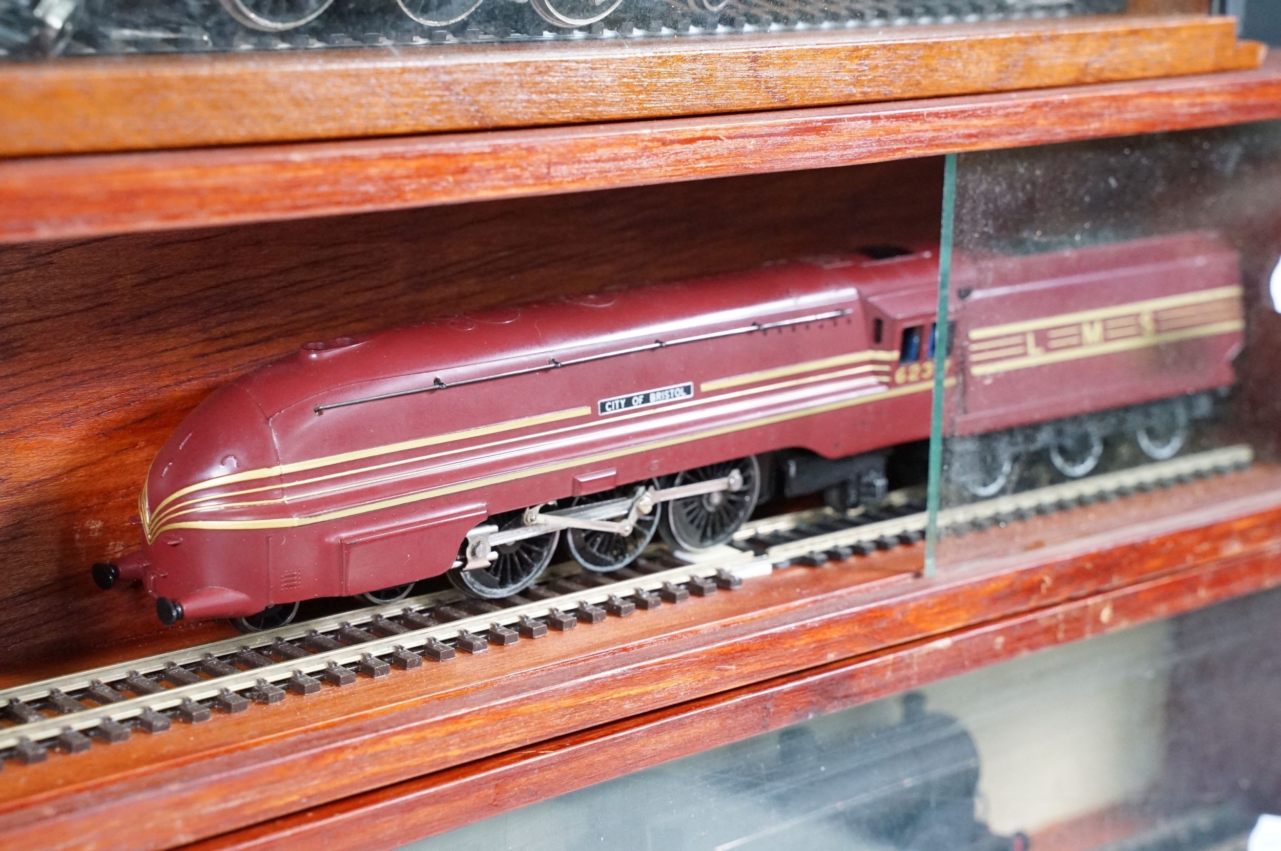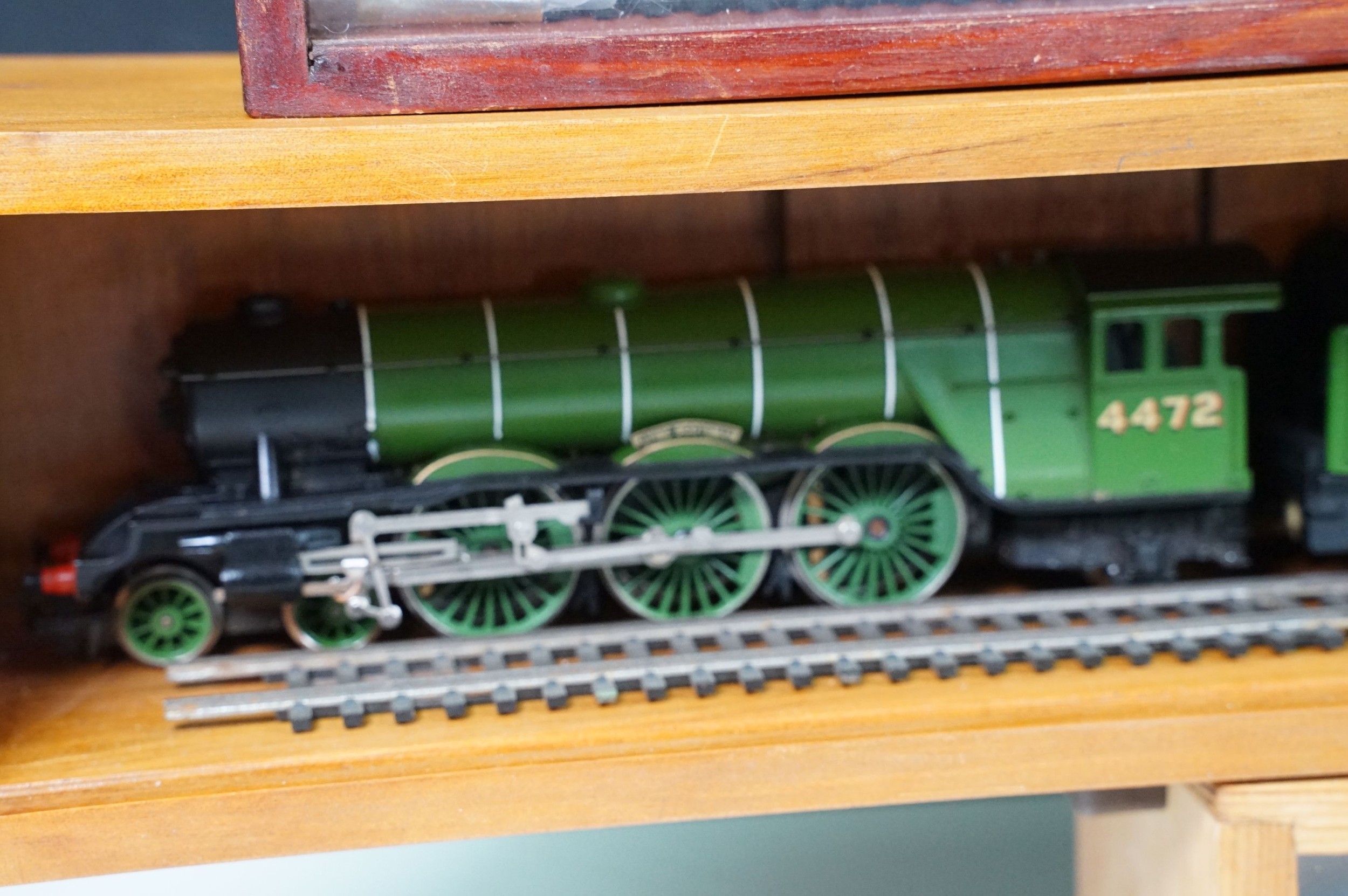 Ten OO gauge locomotives to include Hornby Flying Scotsman, Wrenn 80138 2-6-4, Hornby Coronation, Hornby City of Bristol, Lima 42700 2-6-0, Airfix 0-6-0 44454, Wrenn City of London etc, contained within 4 x display cases
