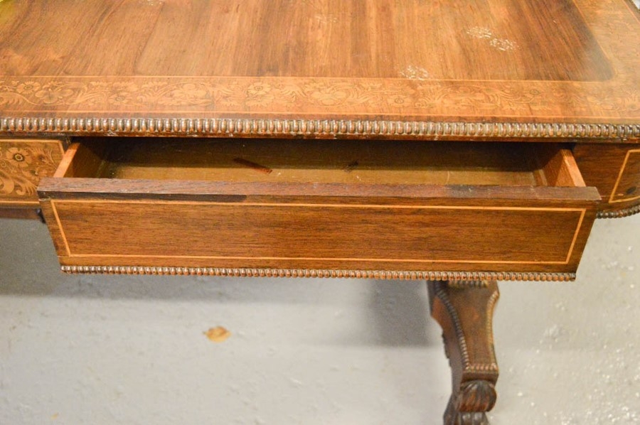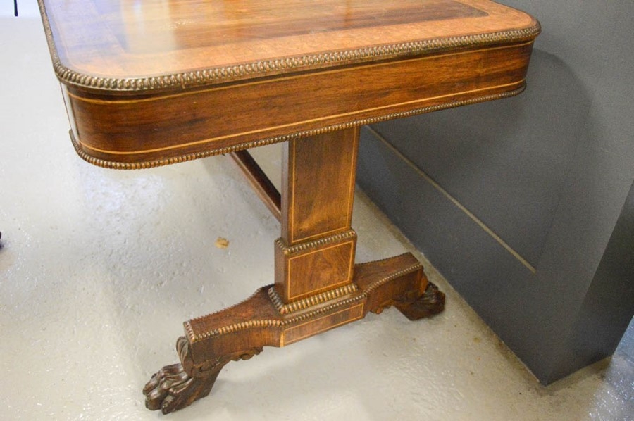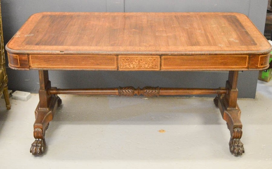 A Regency / William IV inlaid mahogany writing table, in the manner of Gillows 150 by 75 by 74cm.