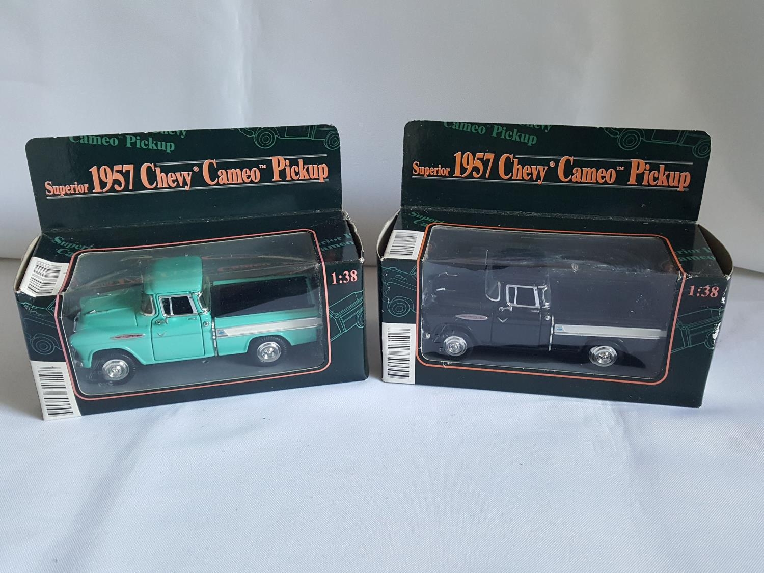 2 1957 Chevy Cameo pickup 2 colourways diecast cars