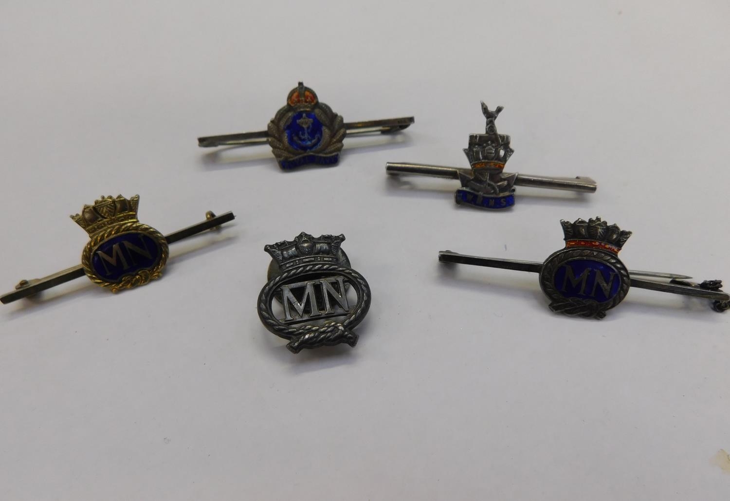 5x Silver sweetheart brooches - 3x merchant navy, 1x royal navy and 1x WRN's