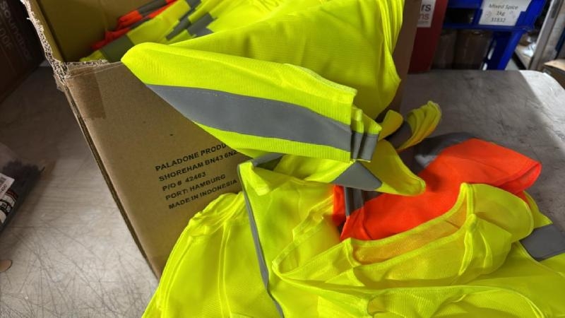 BOX OF A LARGE QTY. OF HI-VIZ VESTS / NEW / PLEASE NOTE: ANY PURCHASES LEFT AFTER 5 WORKING DAYS MAY BE RE-SOLD TO COVER STORAGE & ADMIN