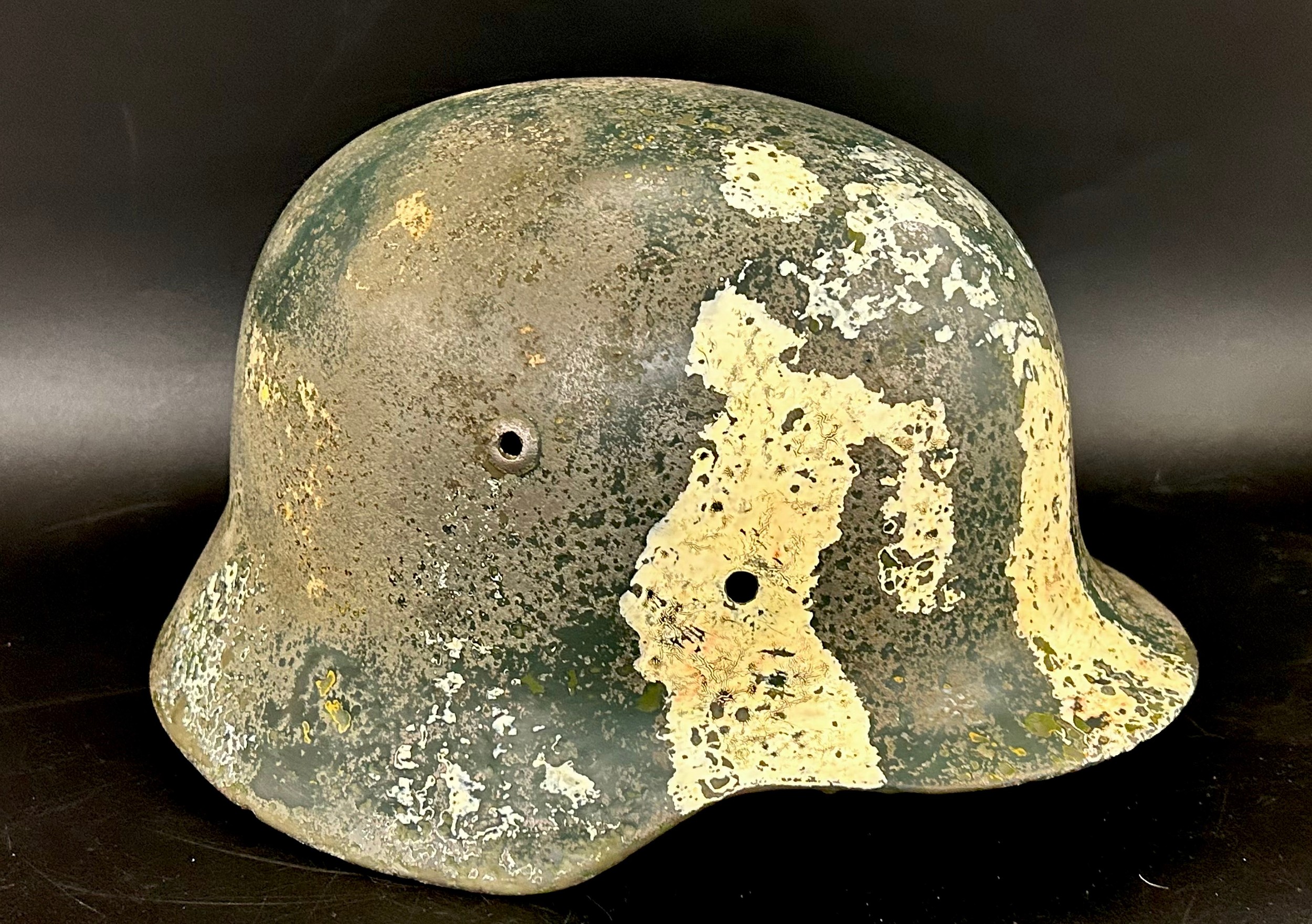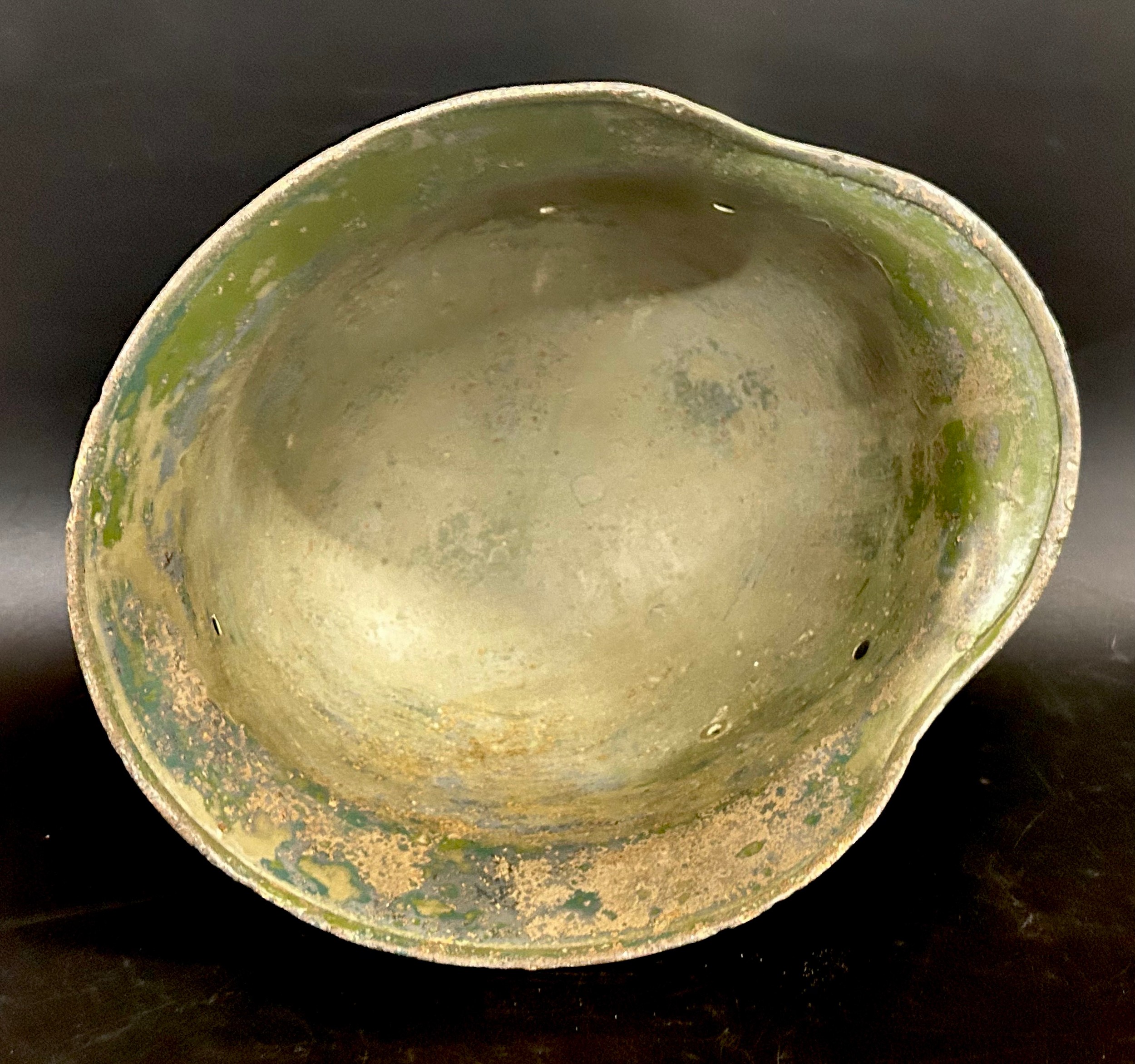 A German World War II helmet shell,