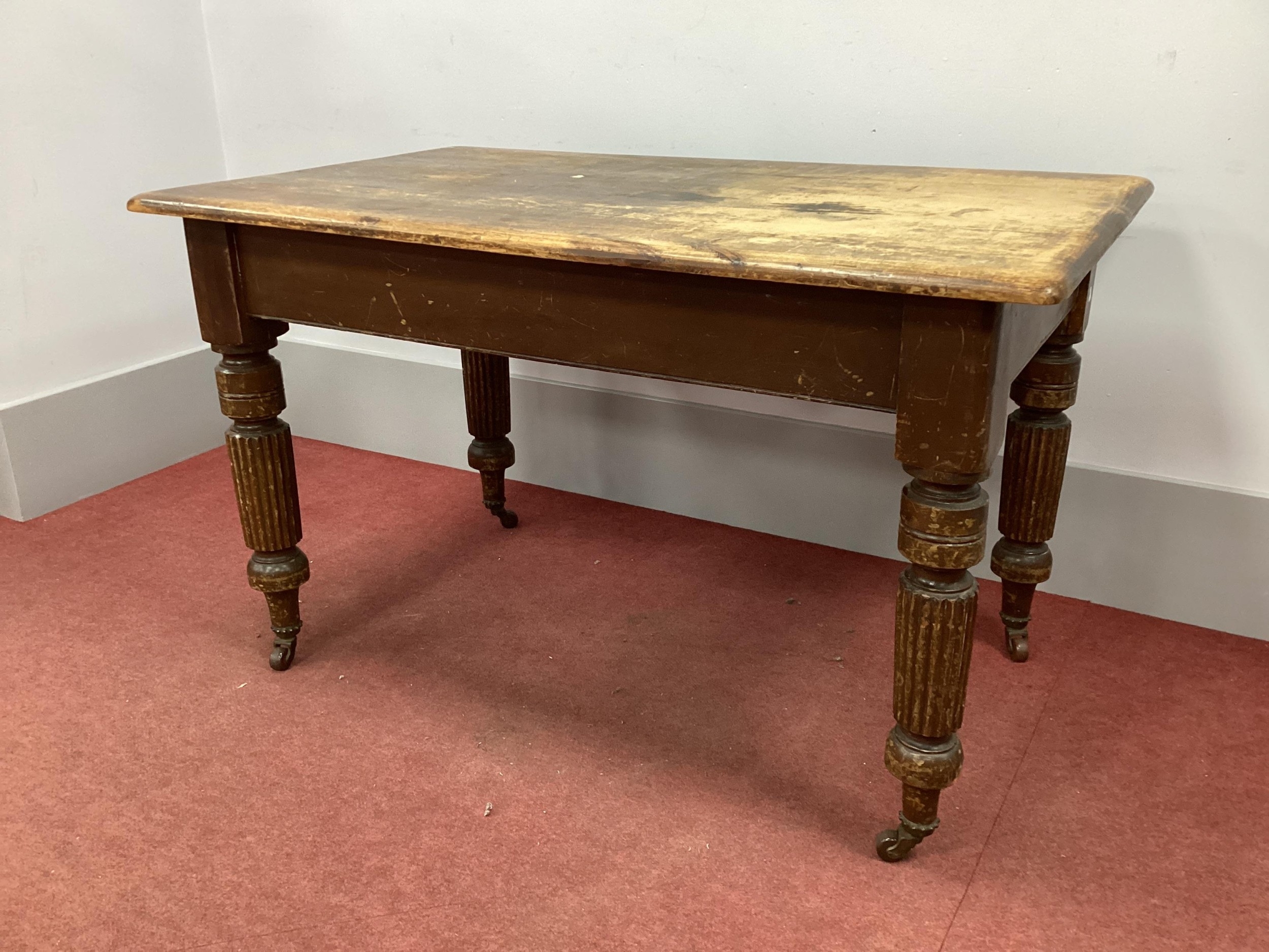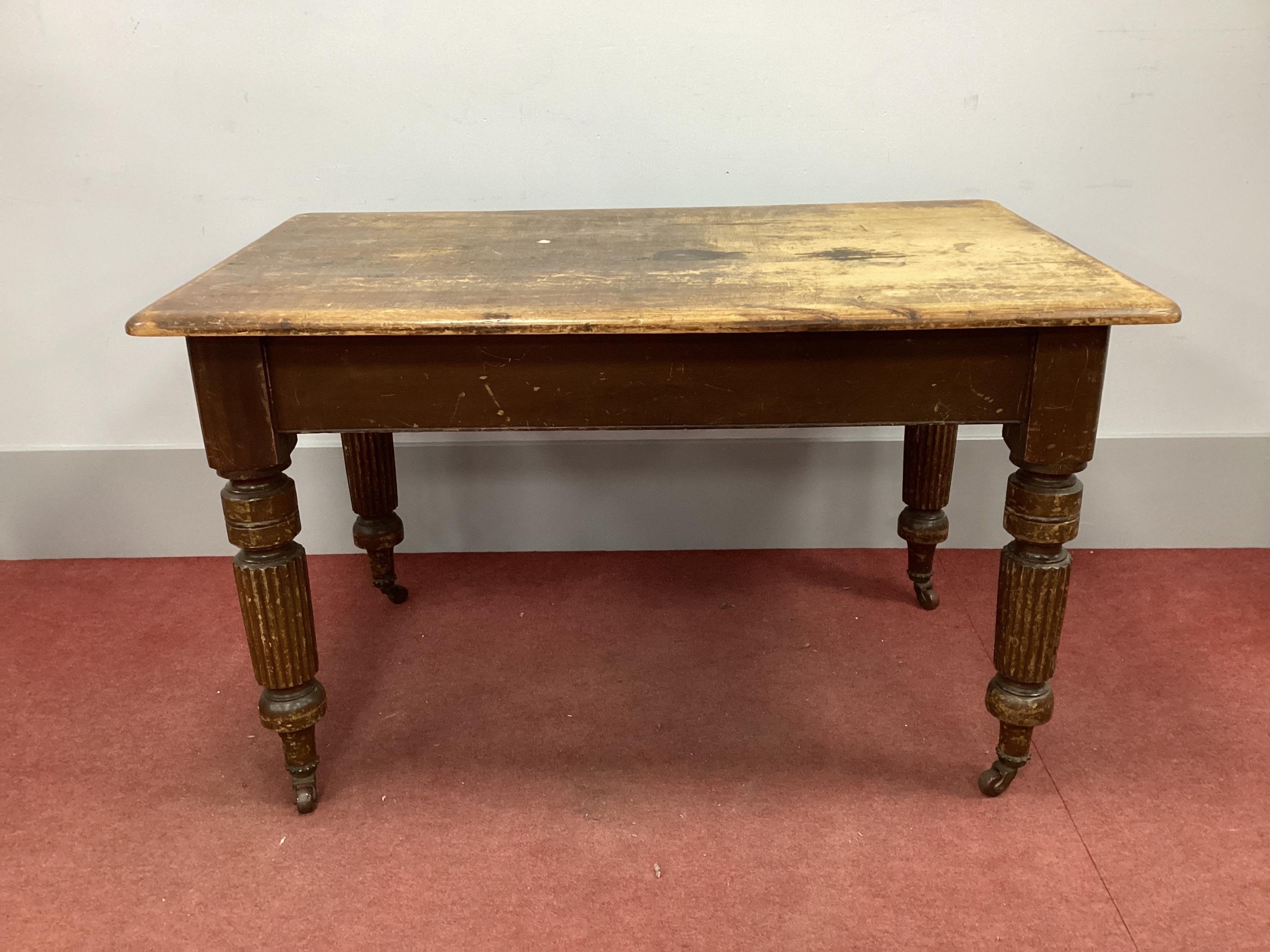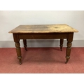 A XIX Century Pine Table, with rectangular top on turned, reeded supports, 120cm wide.