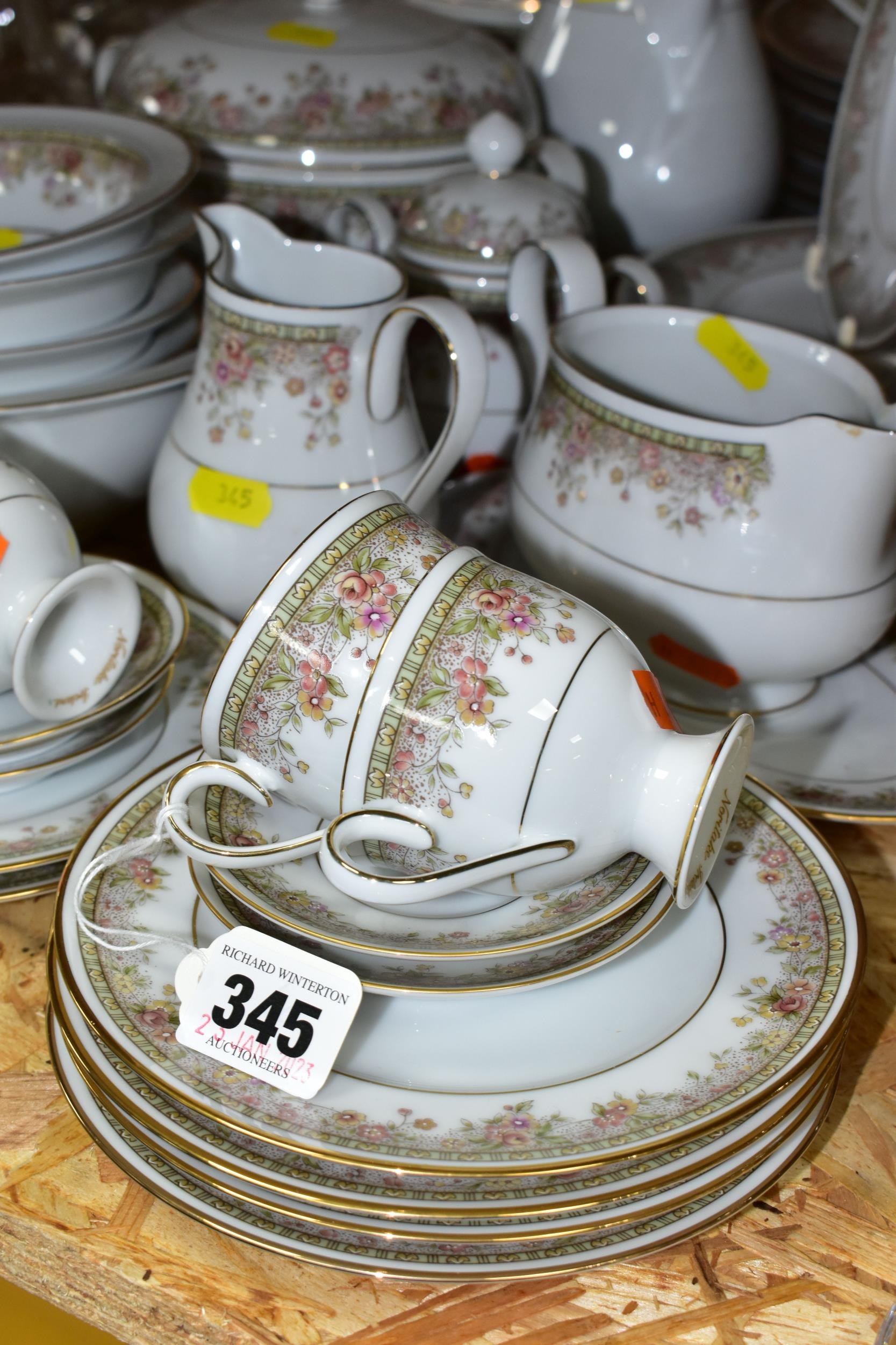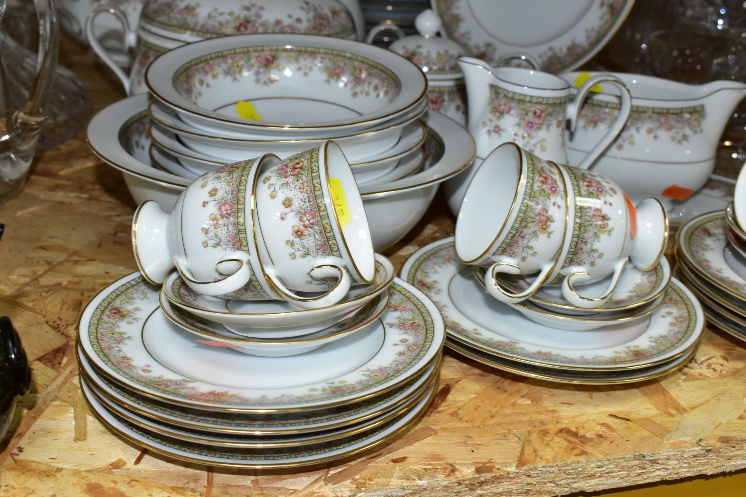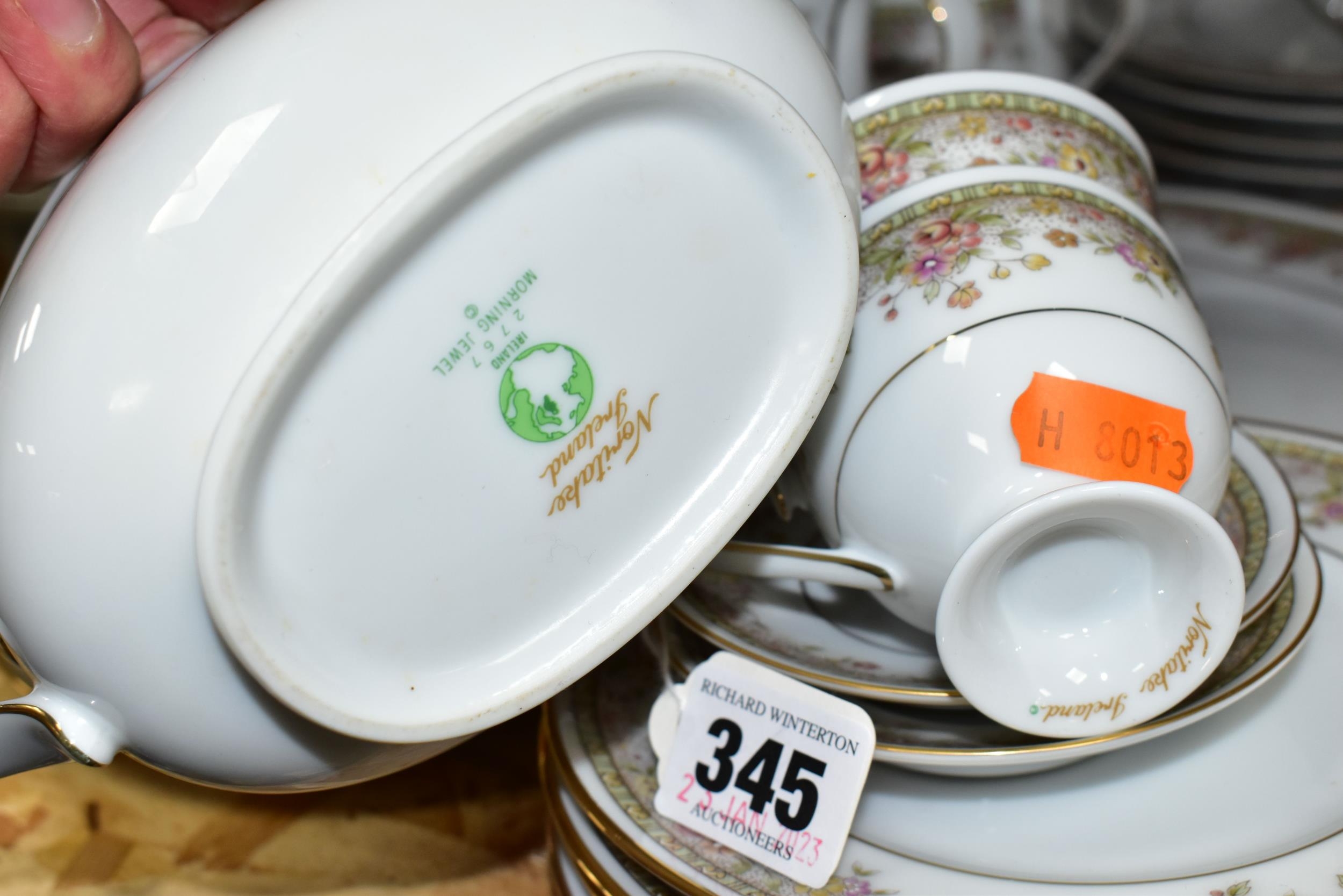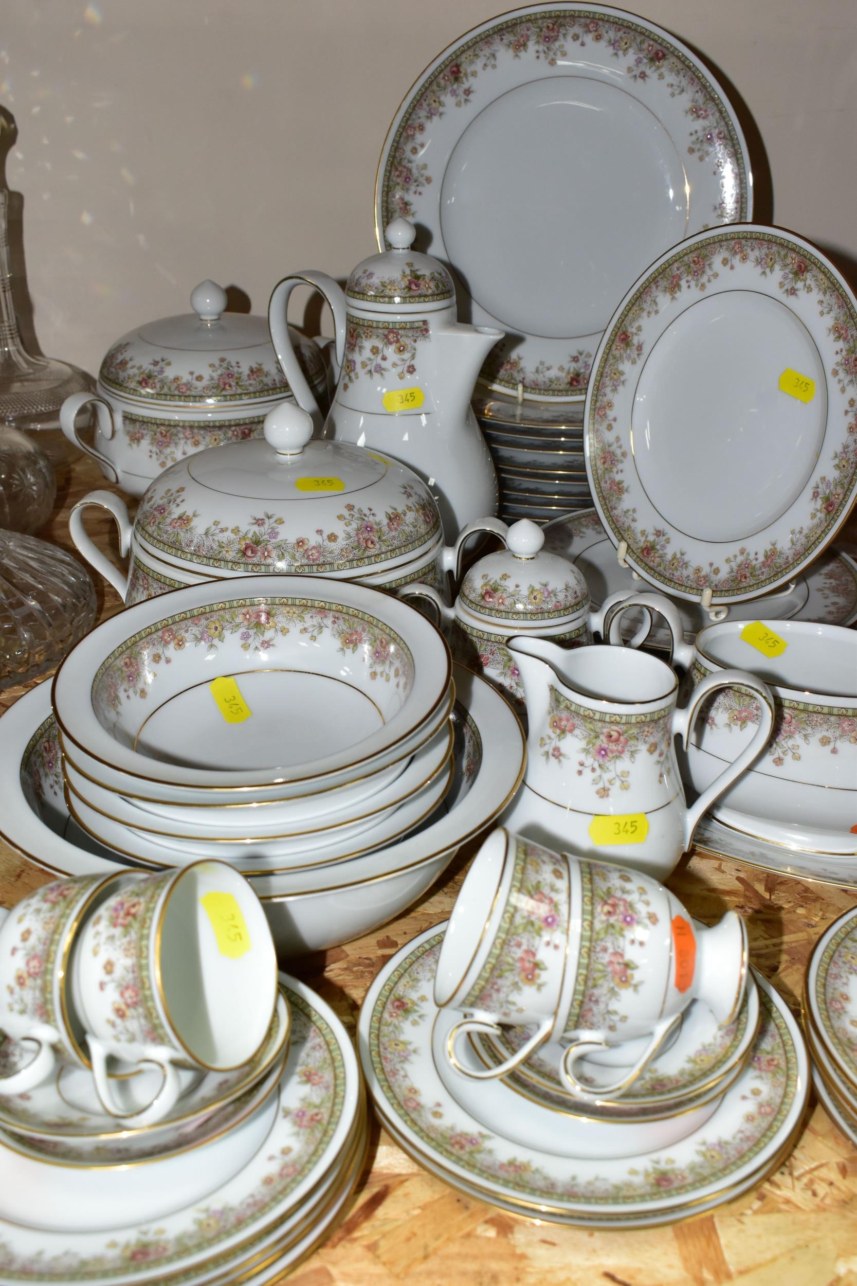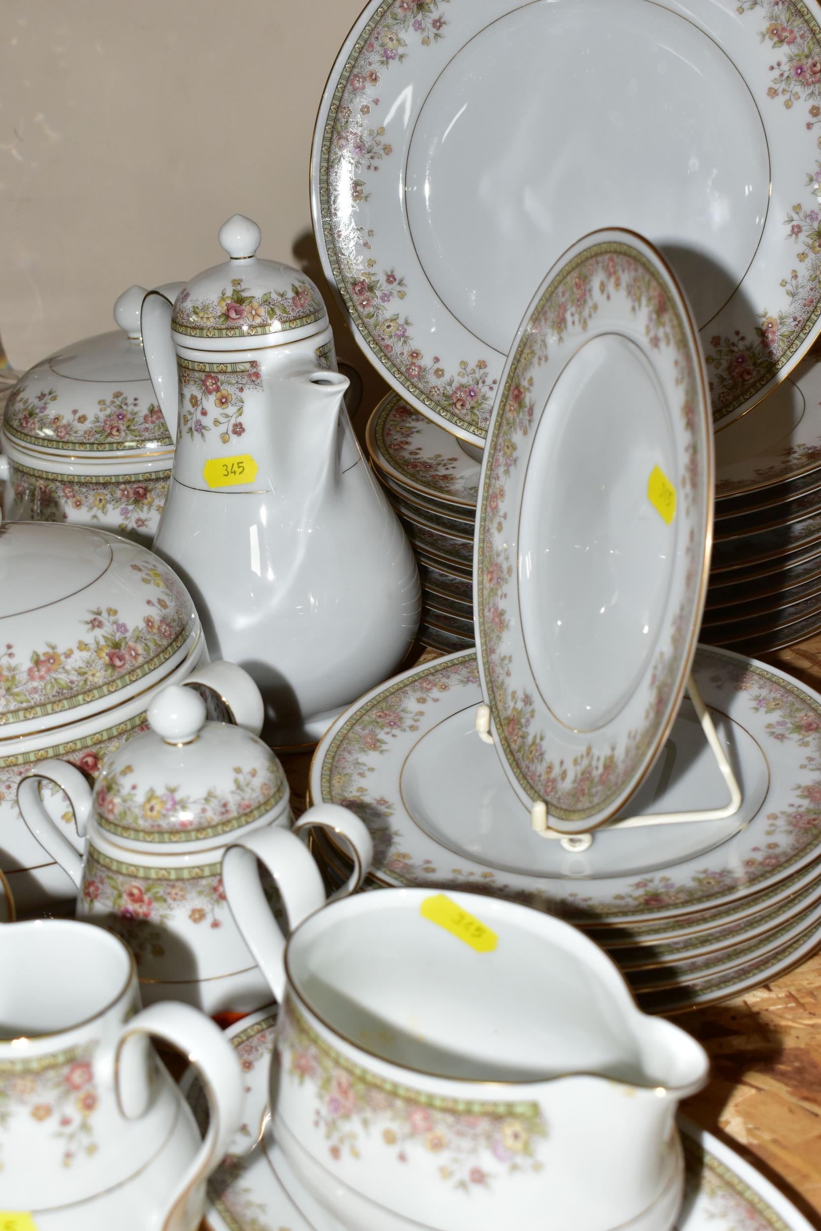 A NORITAKE IRELAND 'MORNING JEWEL' PART DINNER SET, comprising two circular covered tureens, ten dinner plates, six side plates, gravy jug and stand, coffee pot, milk jug, sugar bowl, one serving bowl, four dishes, six coffee cups, six saucers, ten tea plates (50) (Condition Report: signs of very light use)