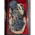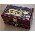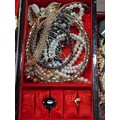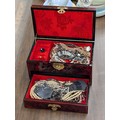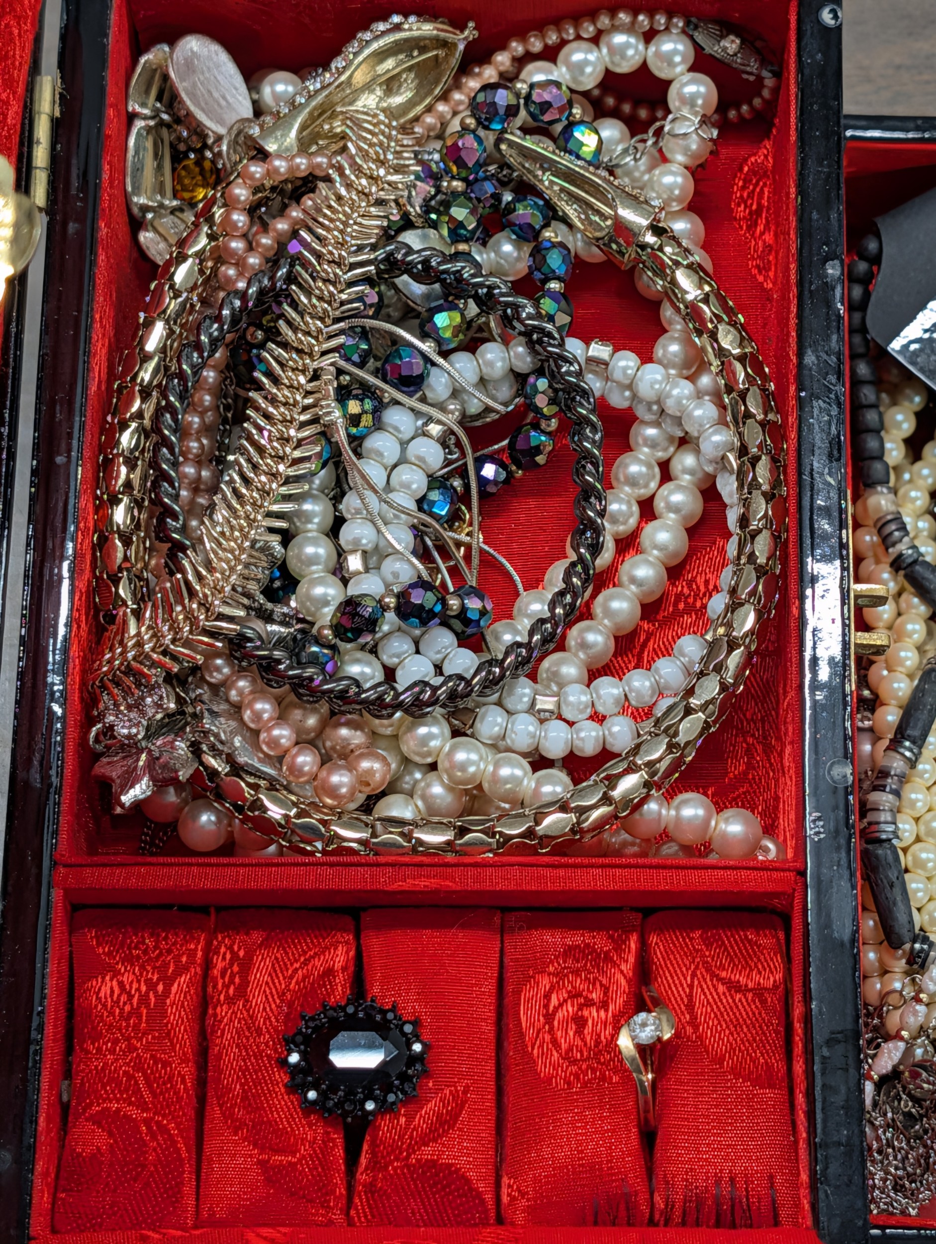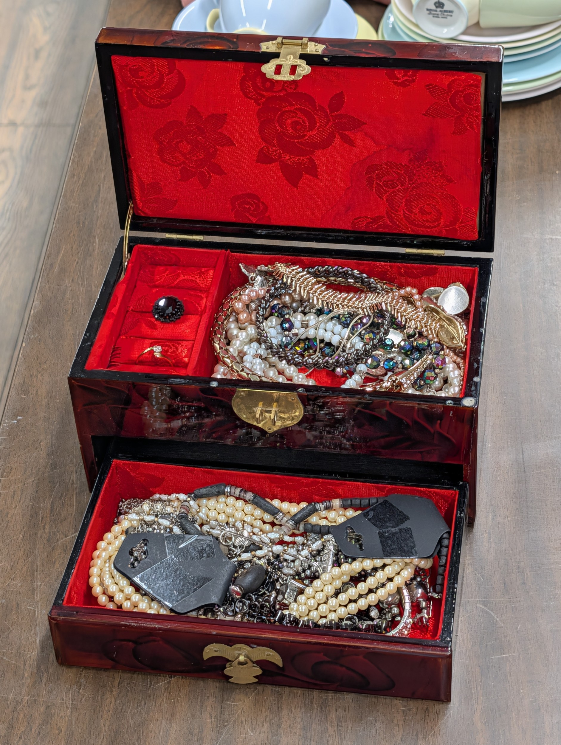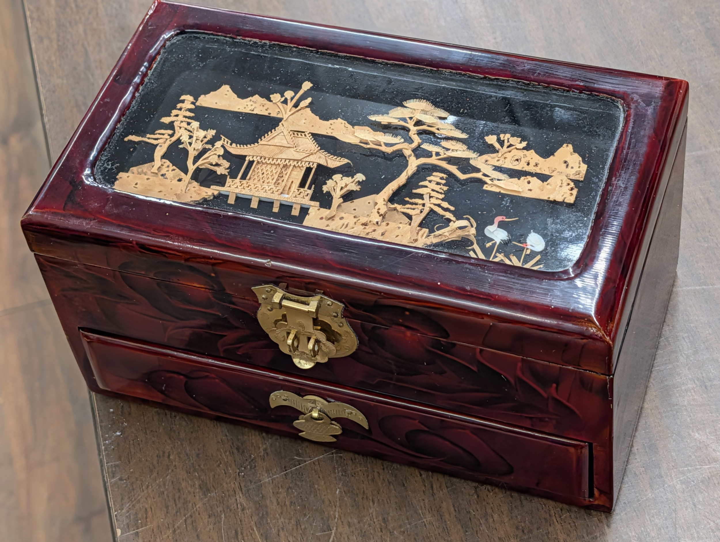 An Assortment of Vintage Costume Jewellery in an Asian-Style Cork Diorama Jewellery Box