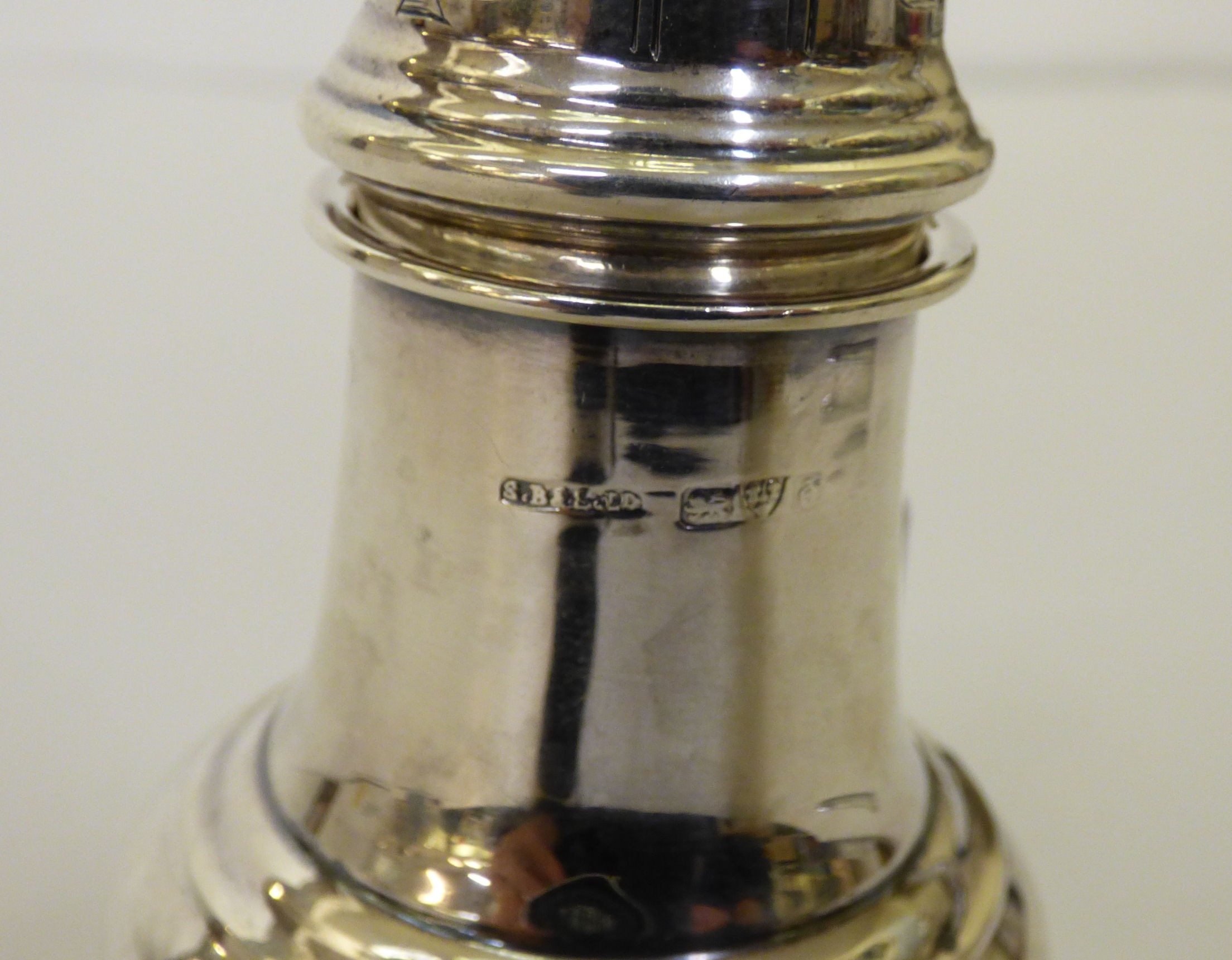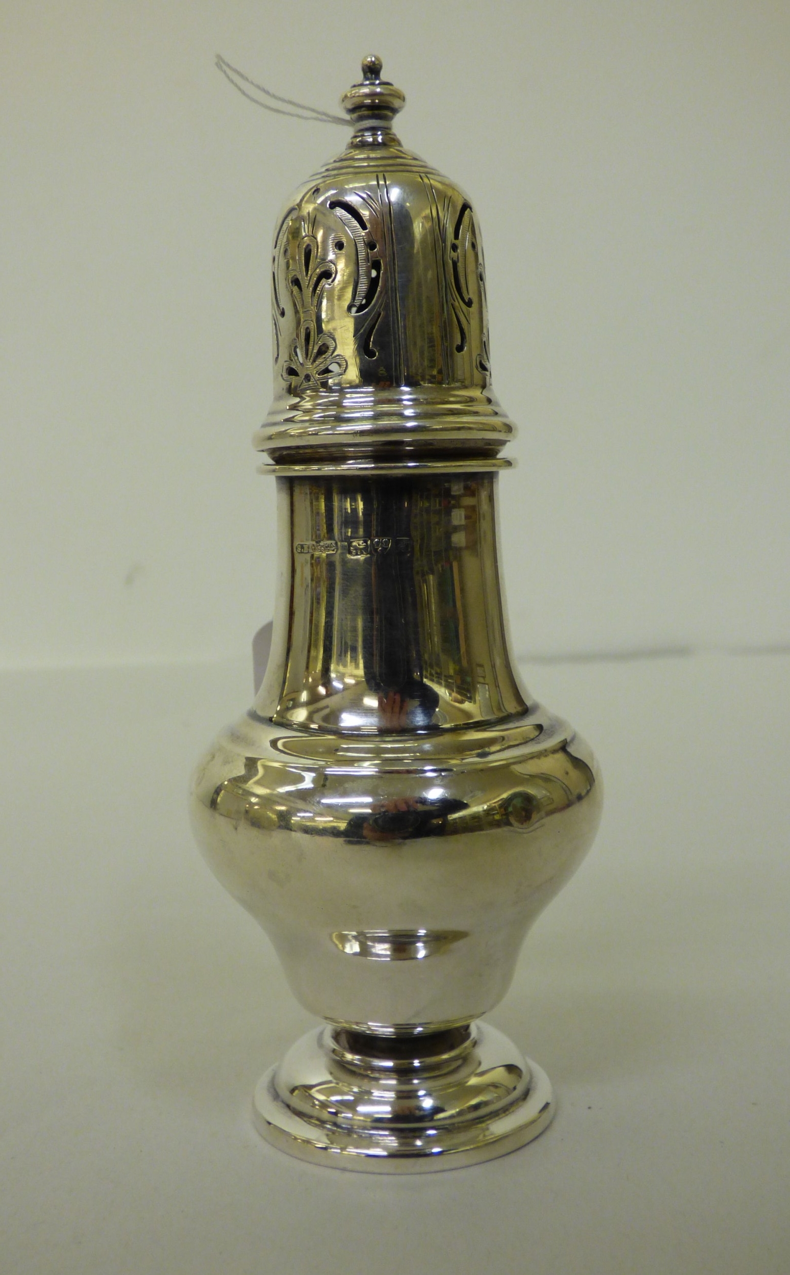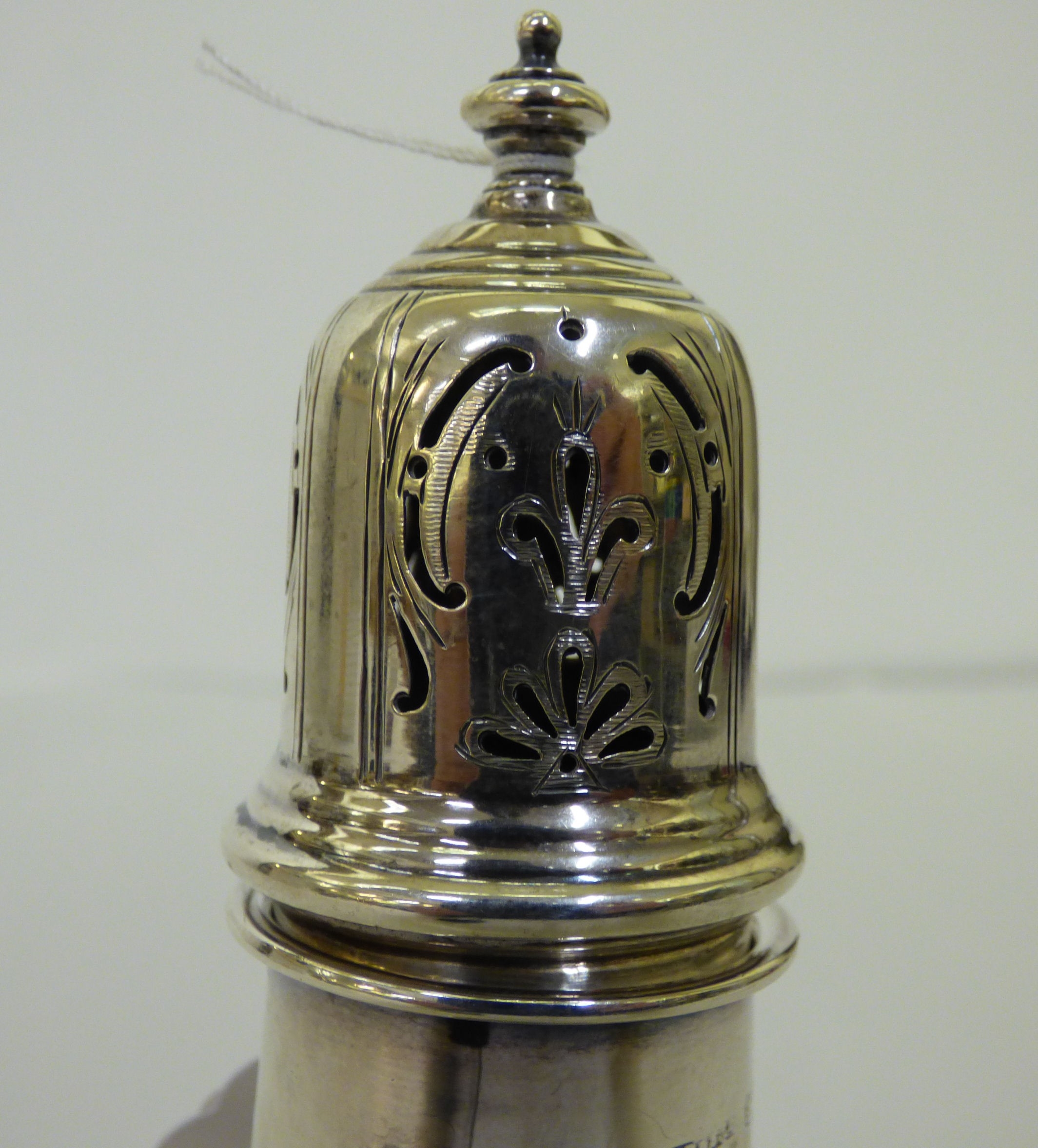A silver caster of pedestal form Chester mark indistinct (approx. 63.2grms)
