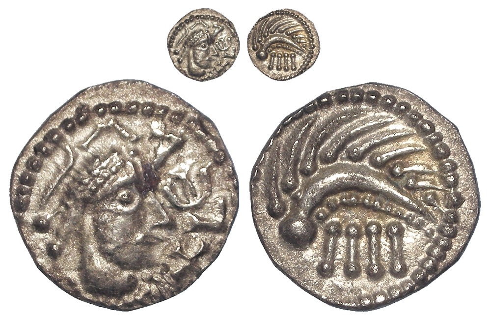 Anglo-Saxon silver Sceat, secondary phase c.710-c.760, series T, Type 9. Obv: Diademed bust r. before legend +LELNA (NA very squashed). / Rev: "Porcupine" l. Similar to S.815 but with porcupine facing the other way. Similar to Abramson 25-20. 1.00g. GVF. Found Cambridgeshire.