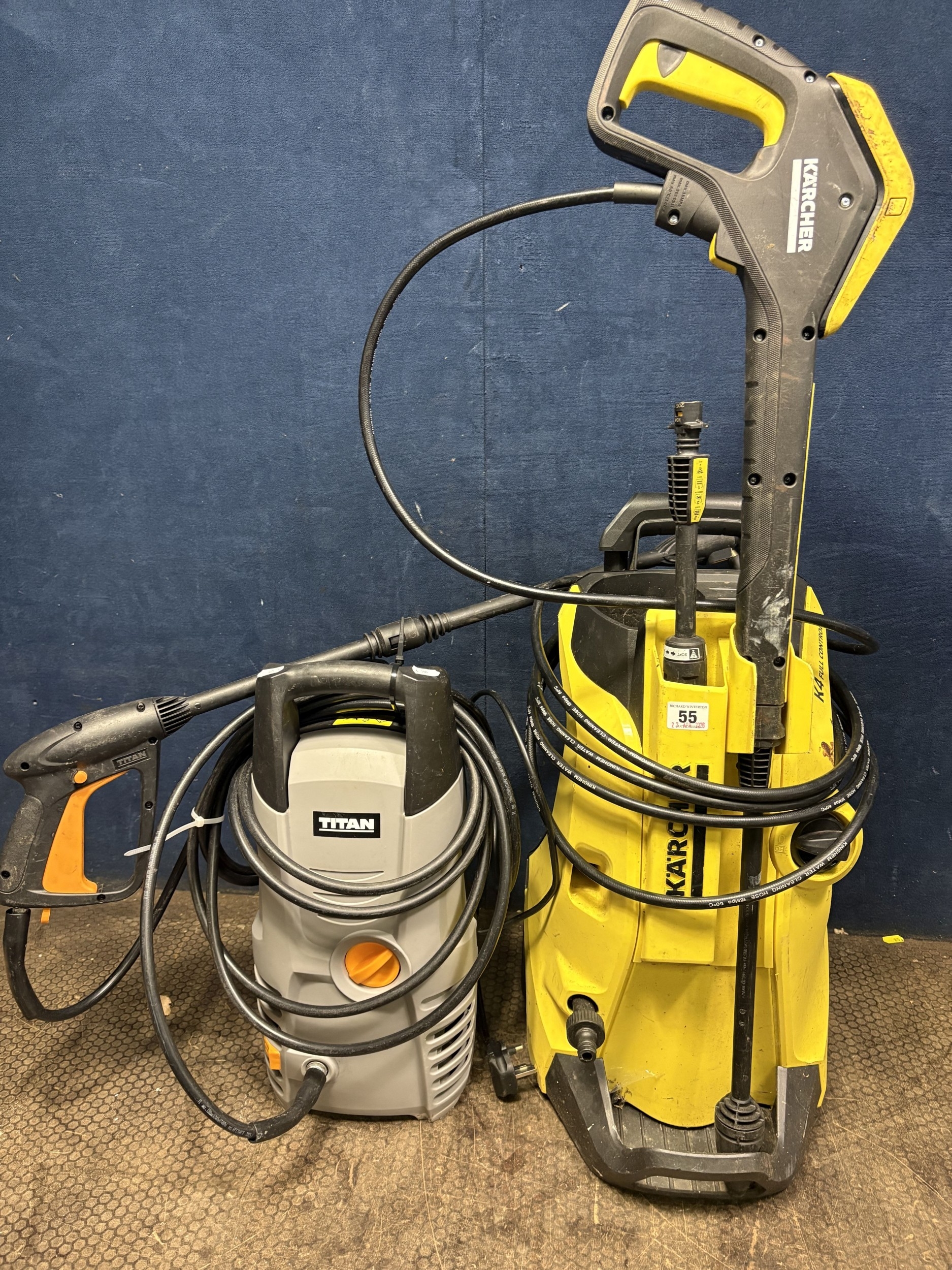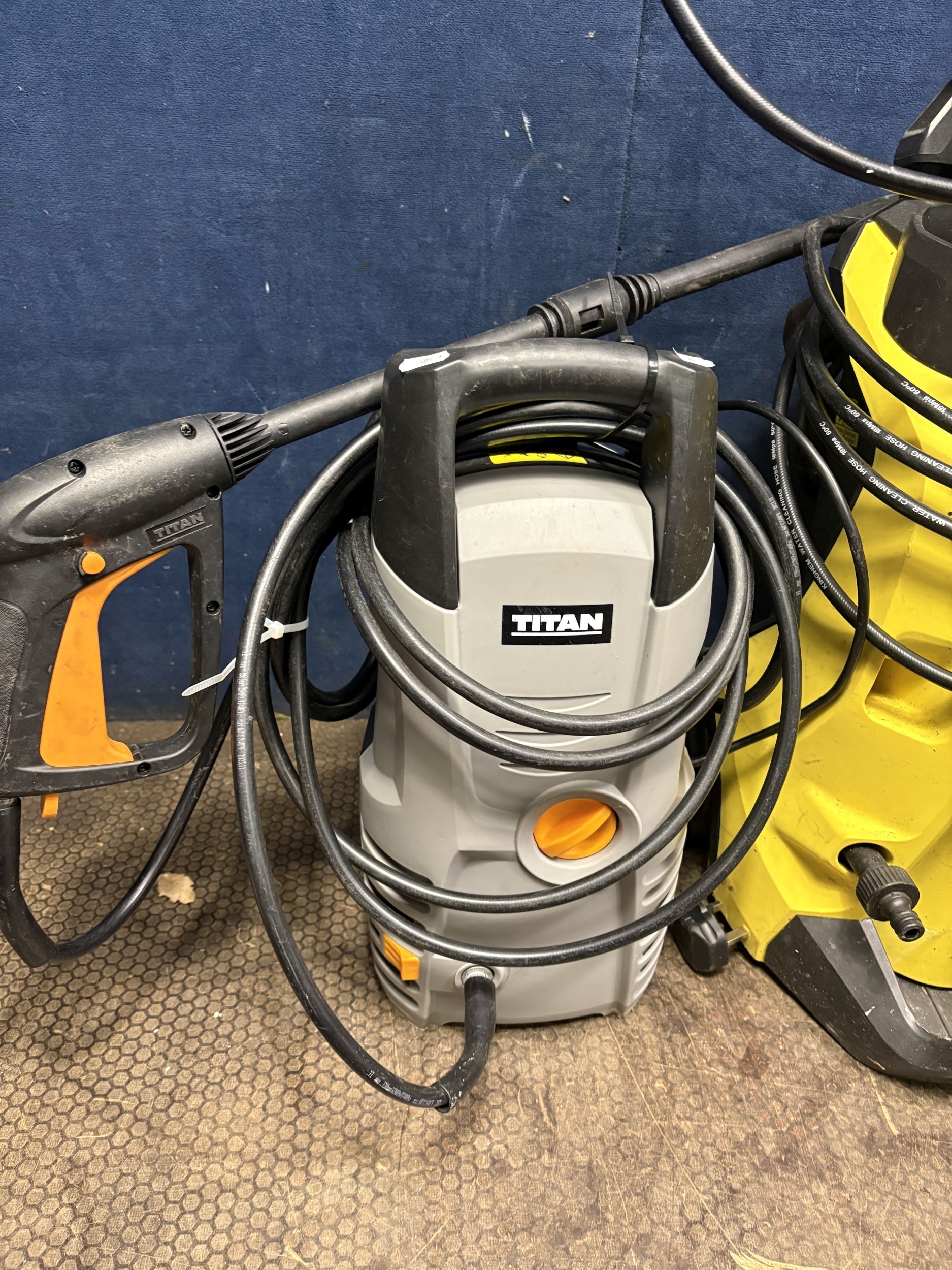 A KARCHER K4 PRESSURE WASHER, along with a Titan pressure washer (both PAT pass and working but not fully tested) (2)