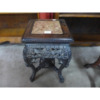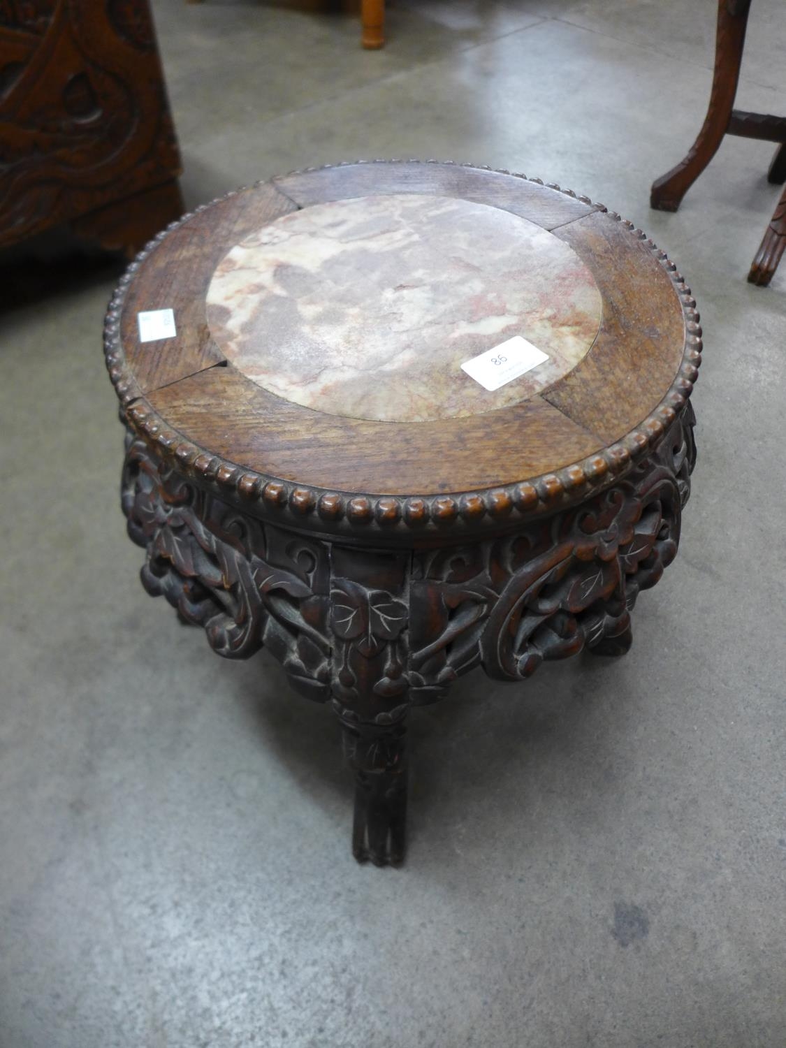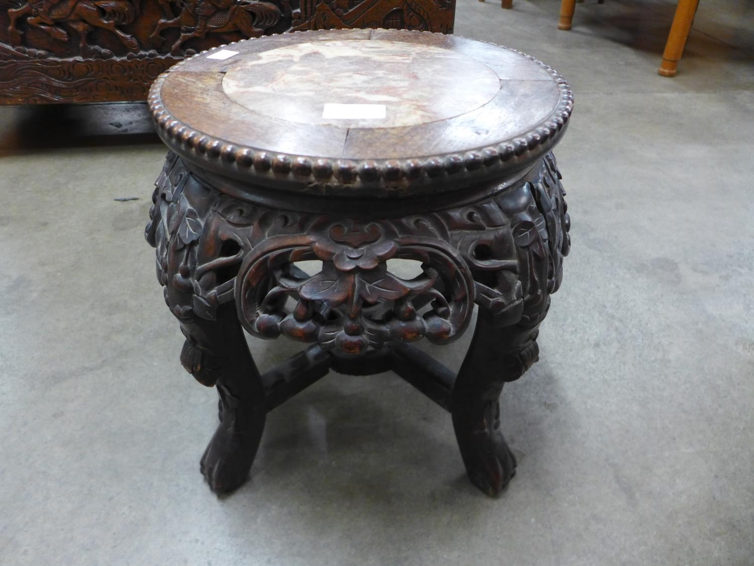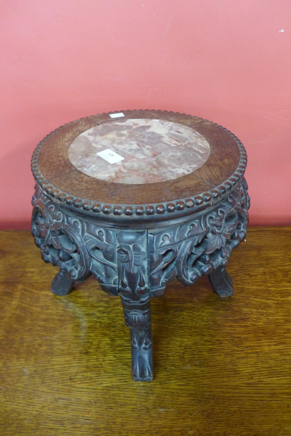 A Chinese marble topped padouk jardiniere stand, 34cms