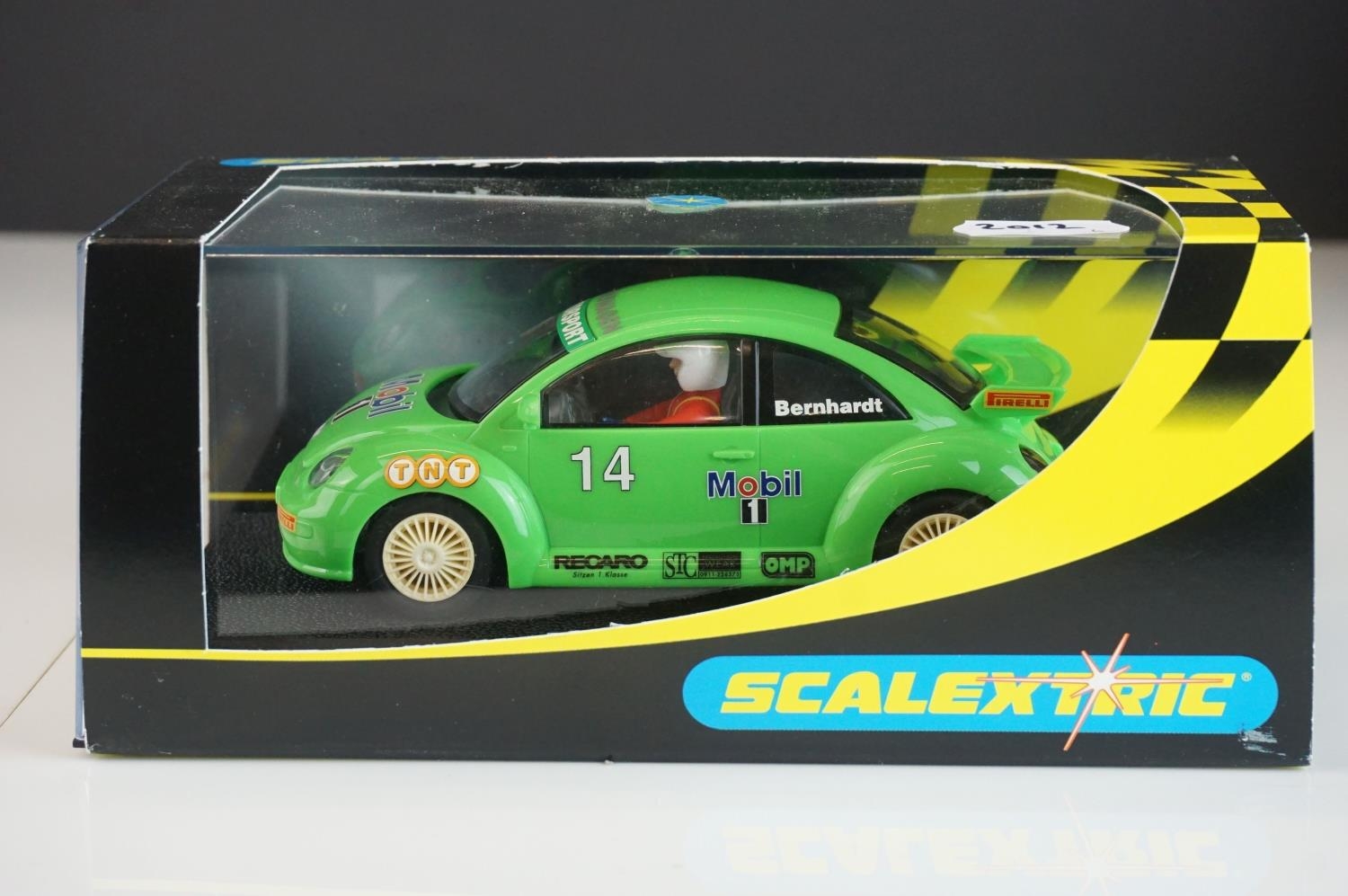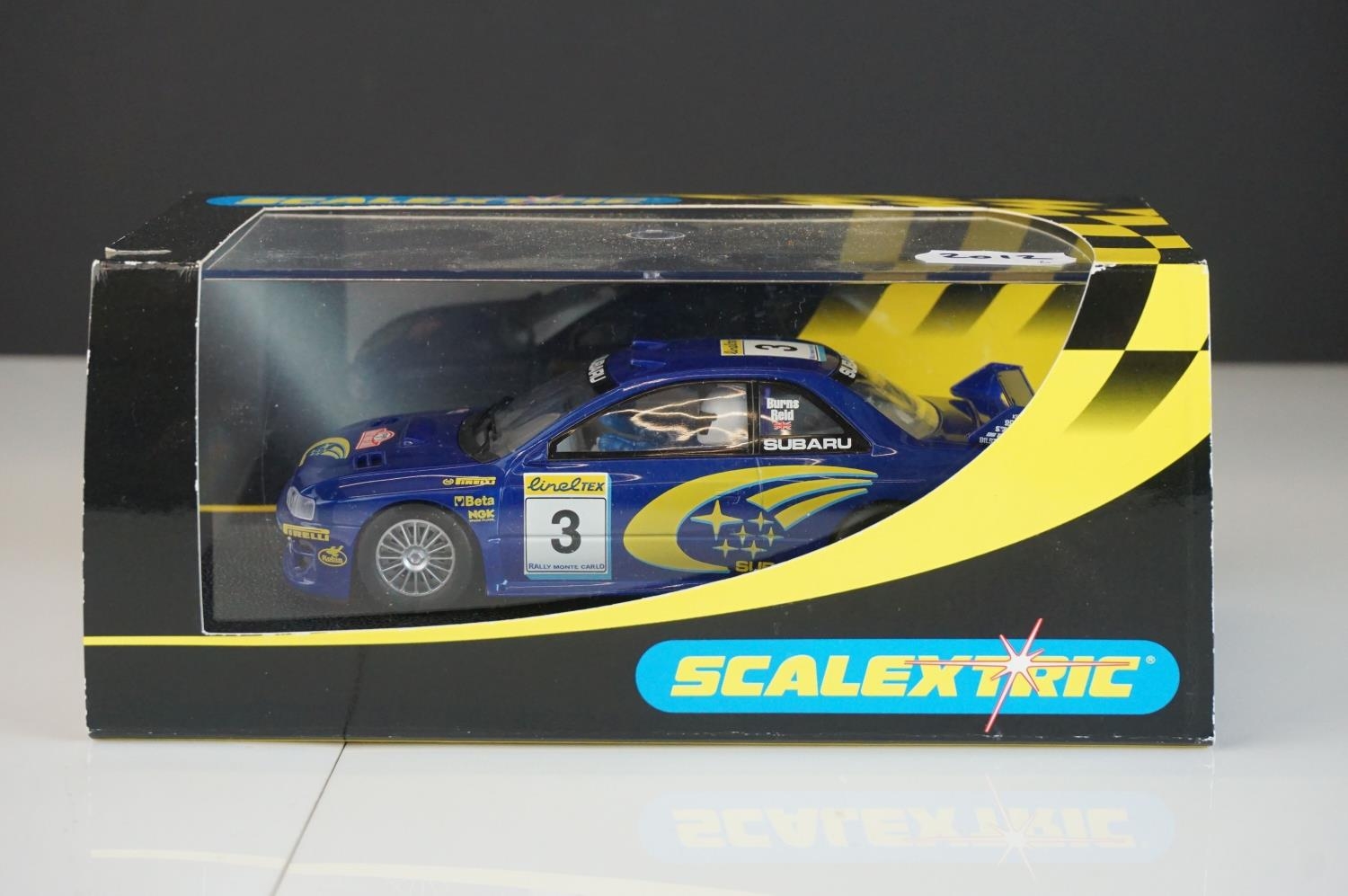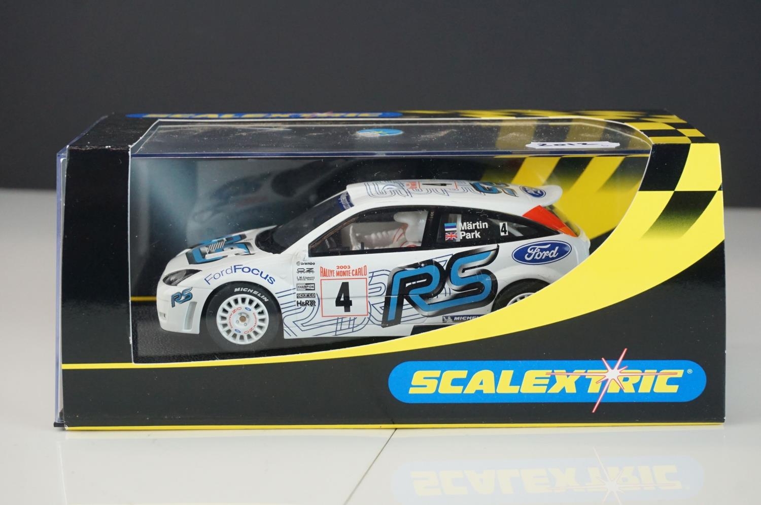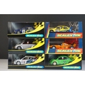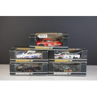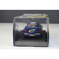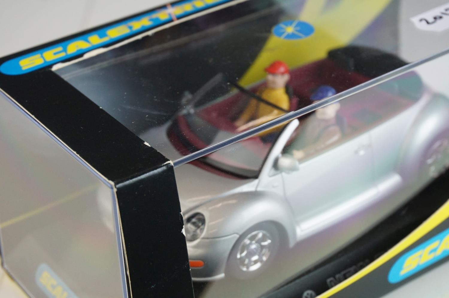 Six cased Scalextric slot cars to include Special Edition 0347 of 1000 C2204 McLaren Mercedes F1 Test Car No 7, c2234 VW Beetle Mobil 1 no 14, C2489 Ford Focus WRC Works 2003 No 4, C2314 VW Beetle silver and C2257 Subaru Impreza Works 2000 No 3,