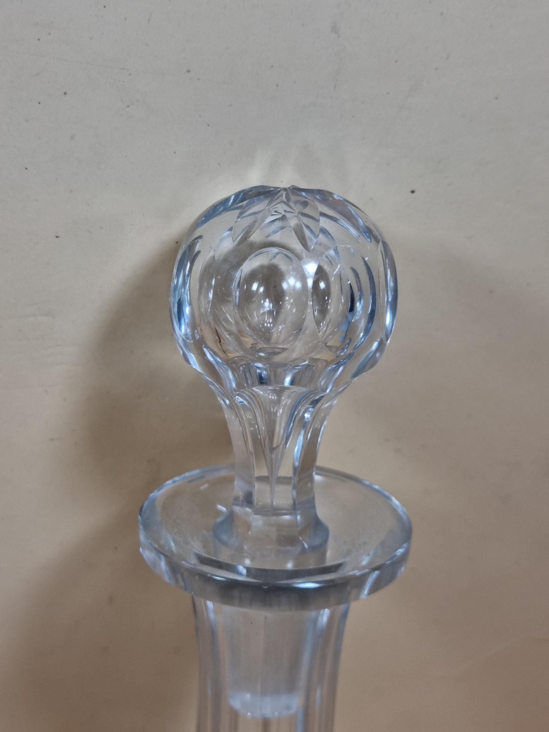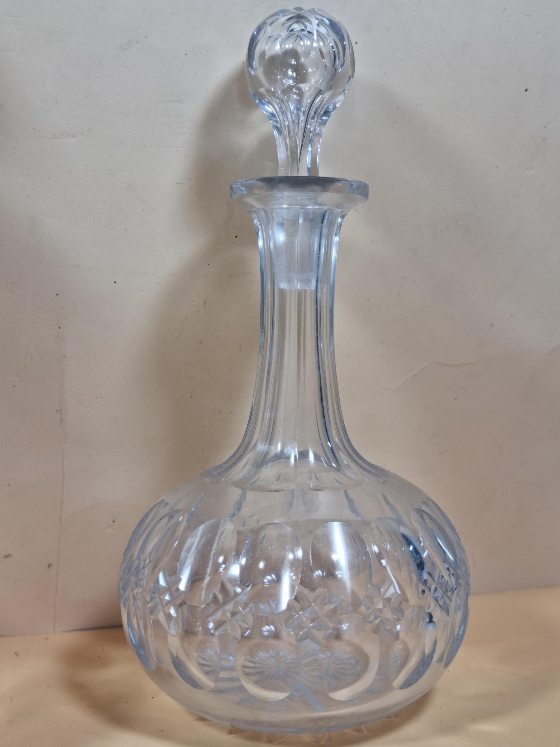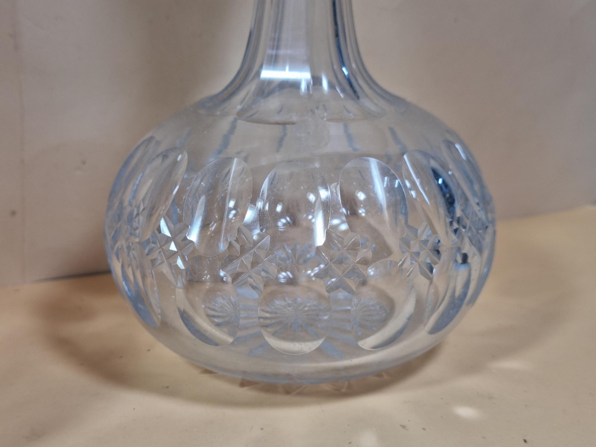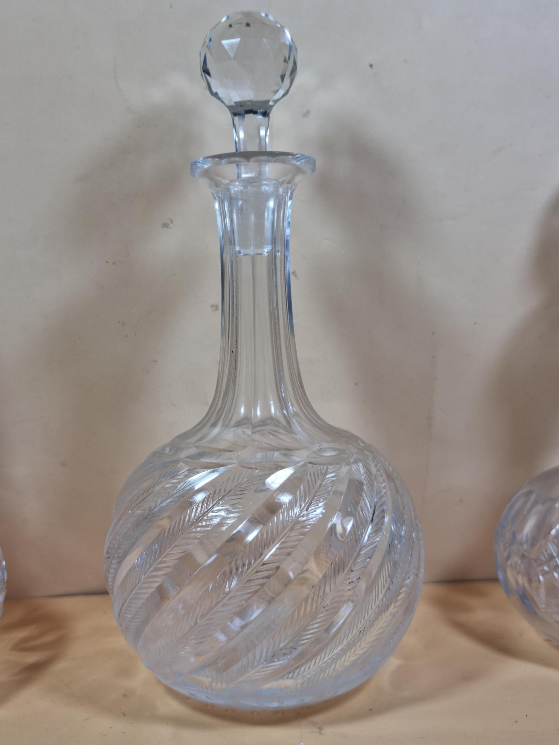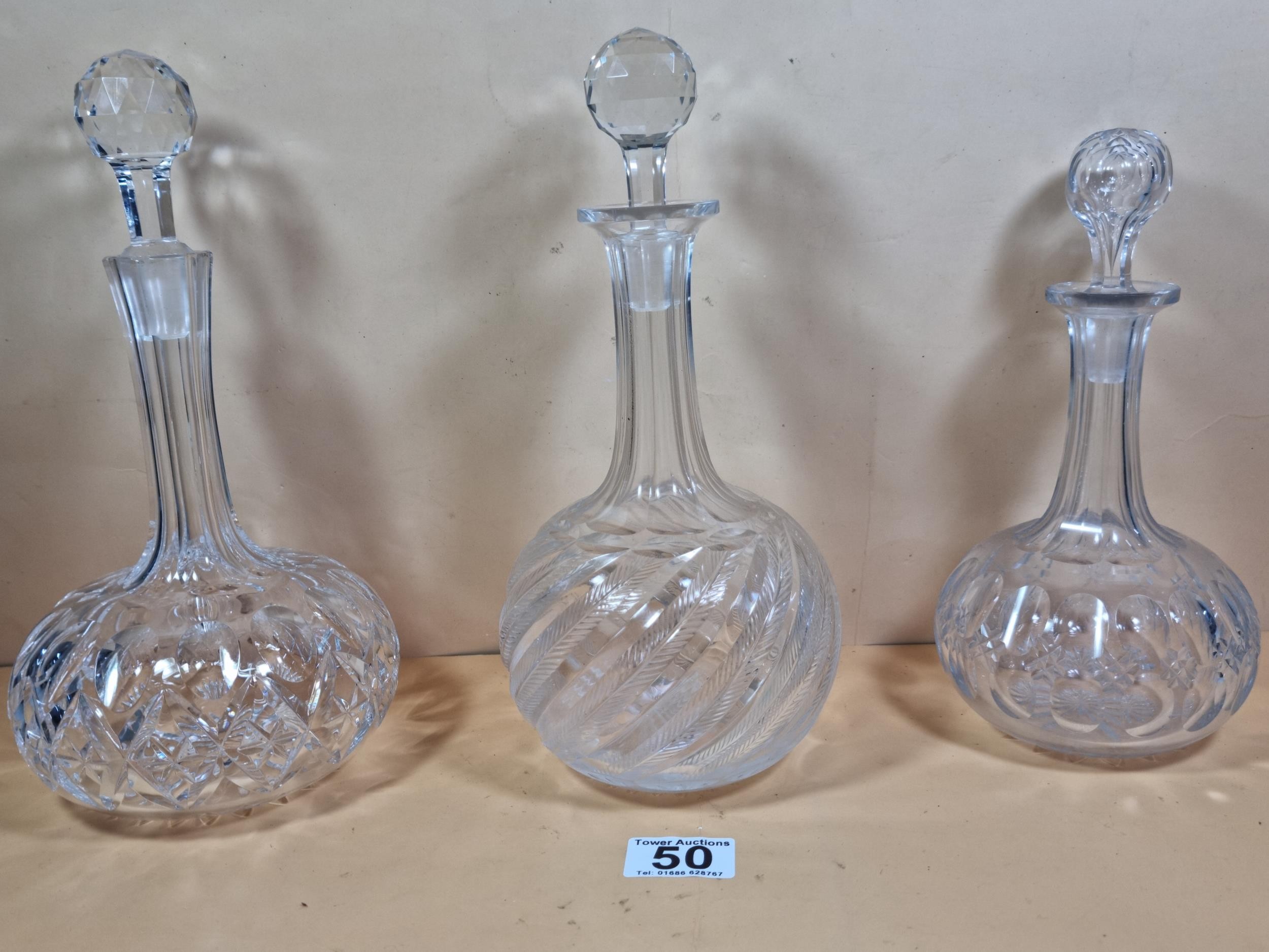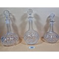 Three good quality cut glass decanters complete with their original glass stoppers. All are in excellent condition with no chips or cracks. Tallest measures 28cm.