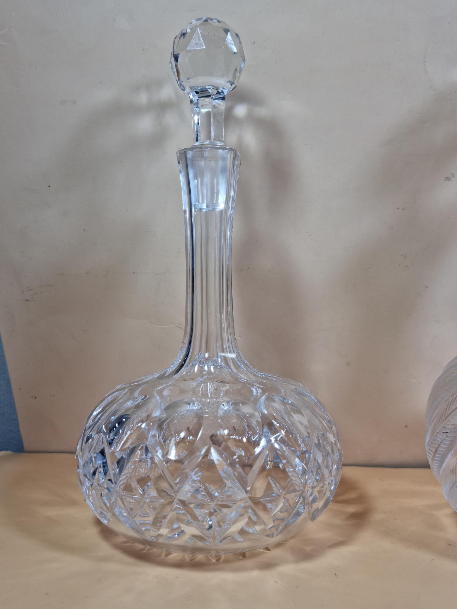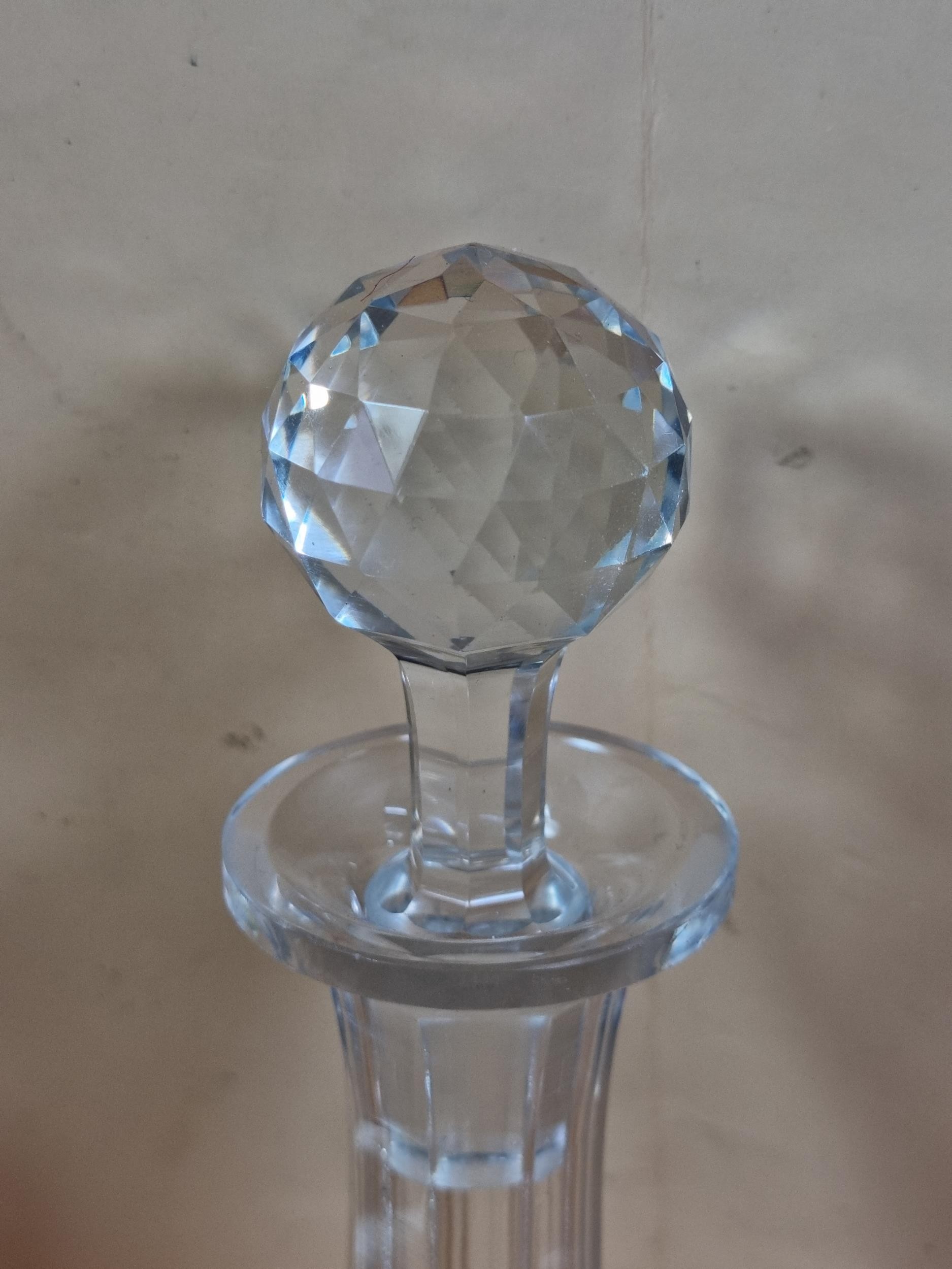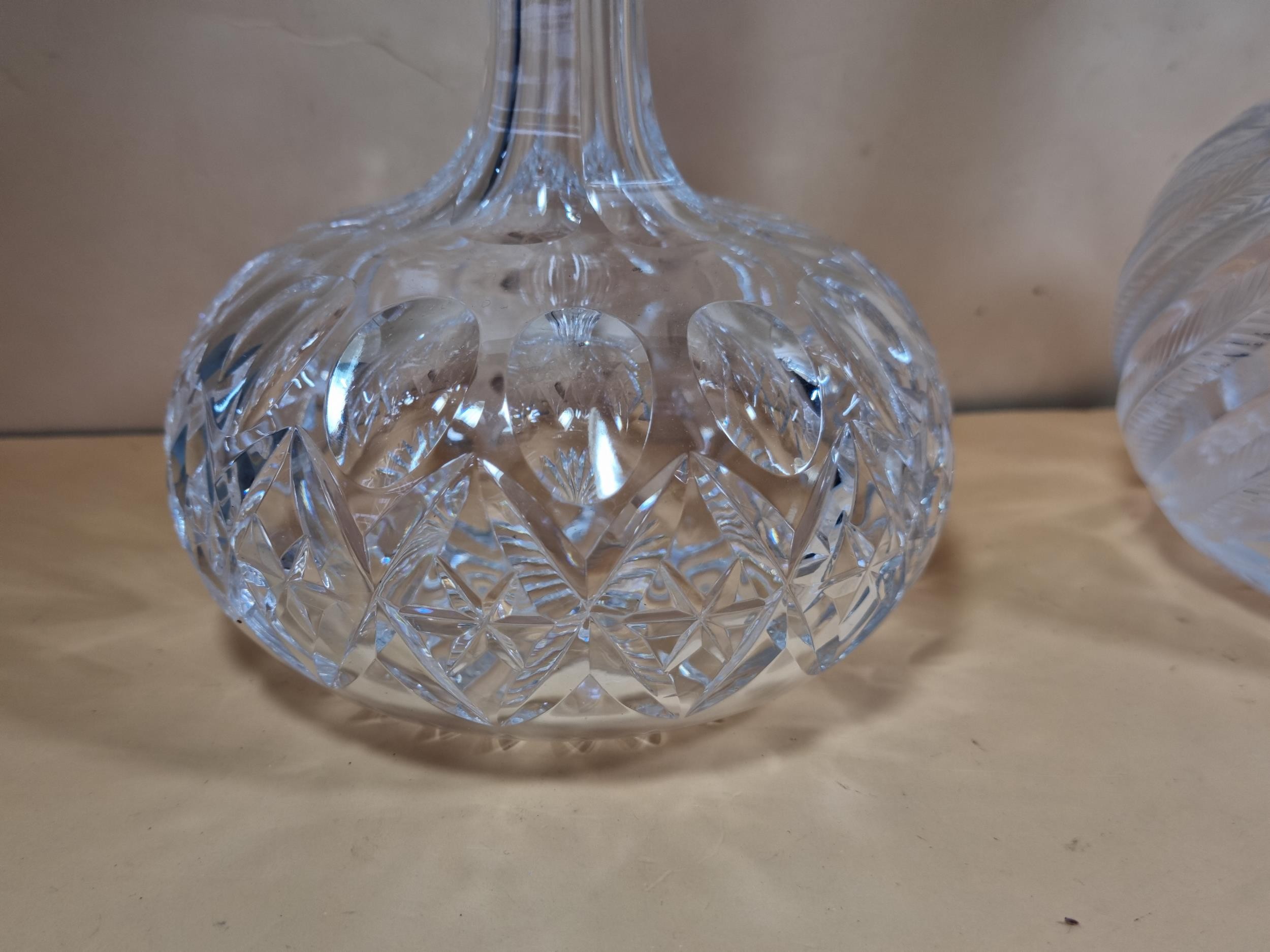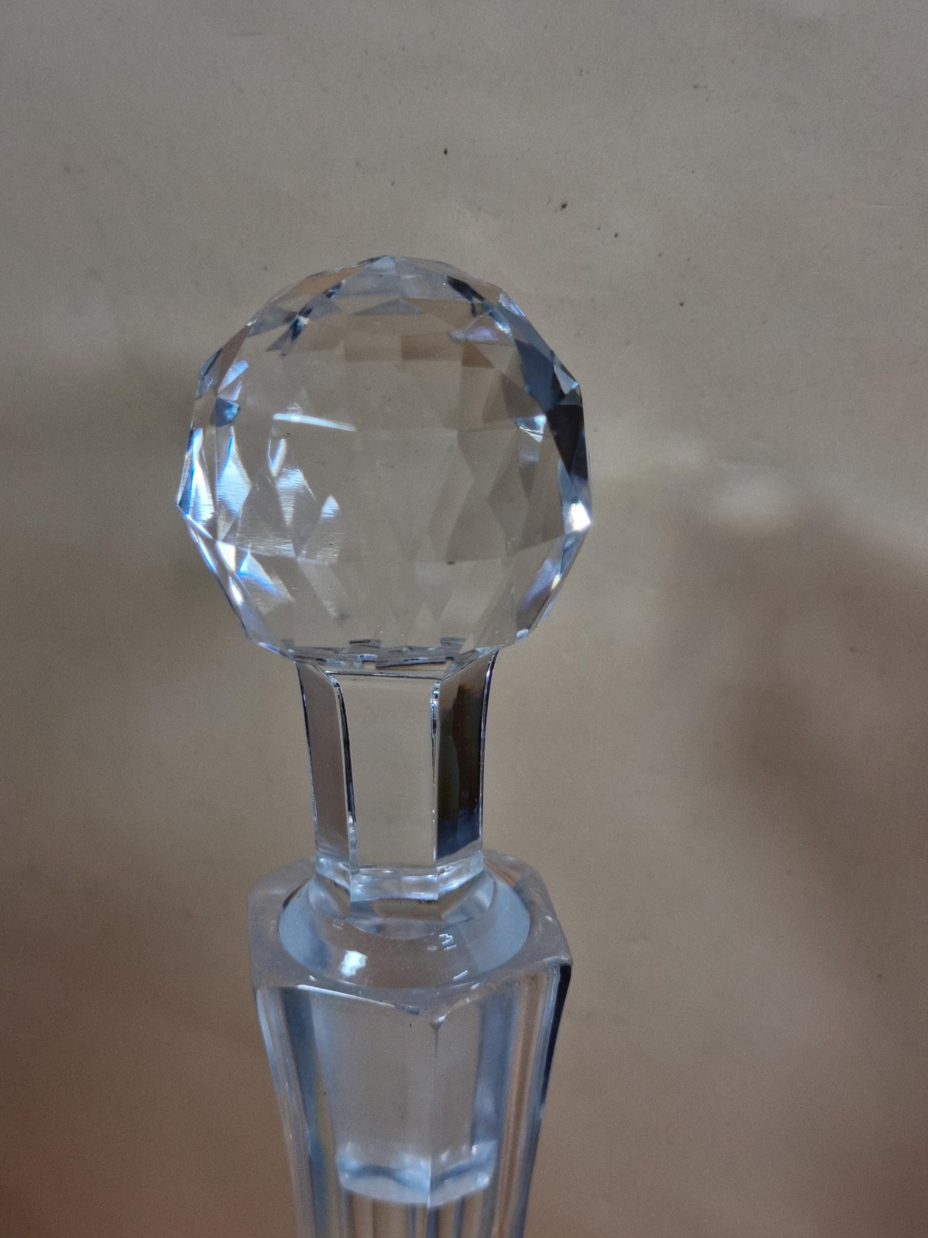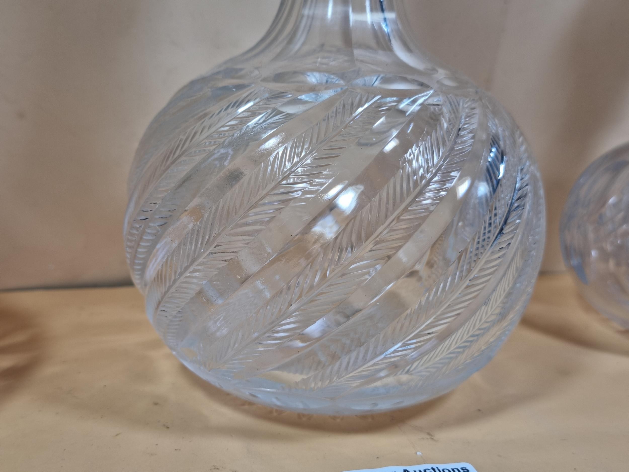 Three good quality cut glass decanters complete with their original glass stoppers. All are in excellent condition with no chips or cracks. Tallest measures 28cm.