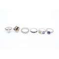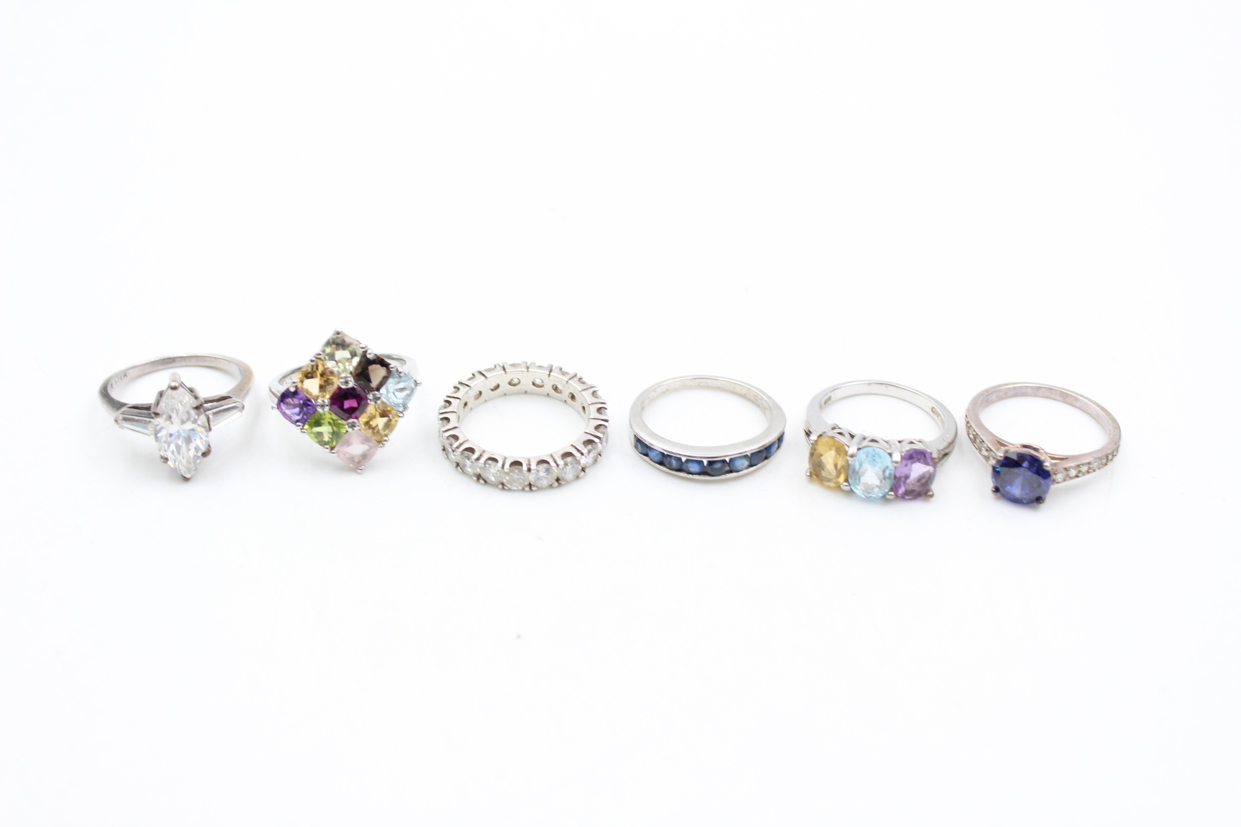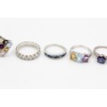 6 x .925 Sterling Silver RINGS inc. Band, Blue, Pink, Drop (20g)
