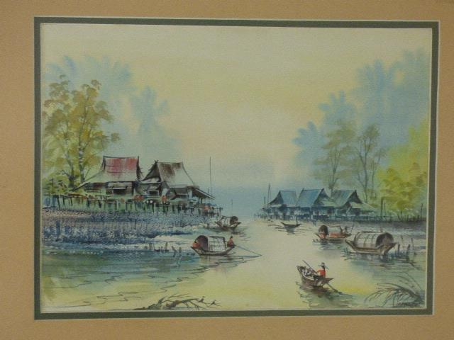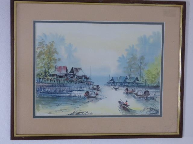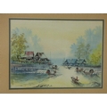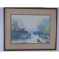 Framed and Glazed watercolour depicting fishing scene (20" x 16")