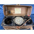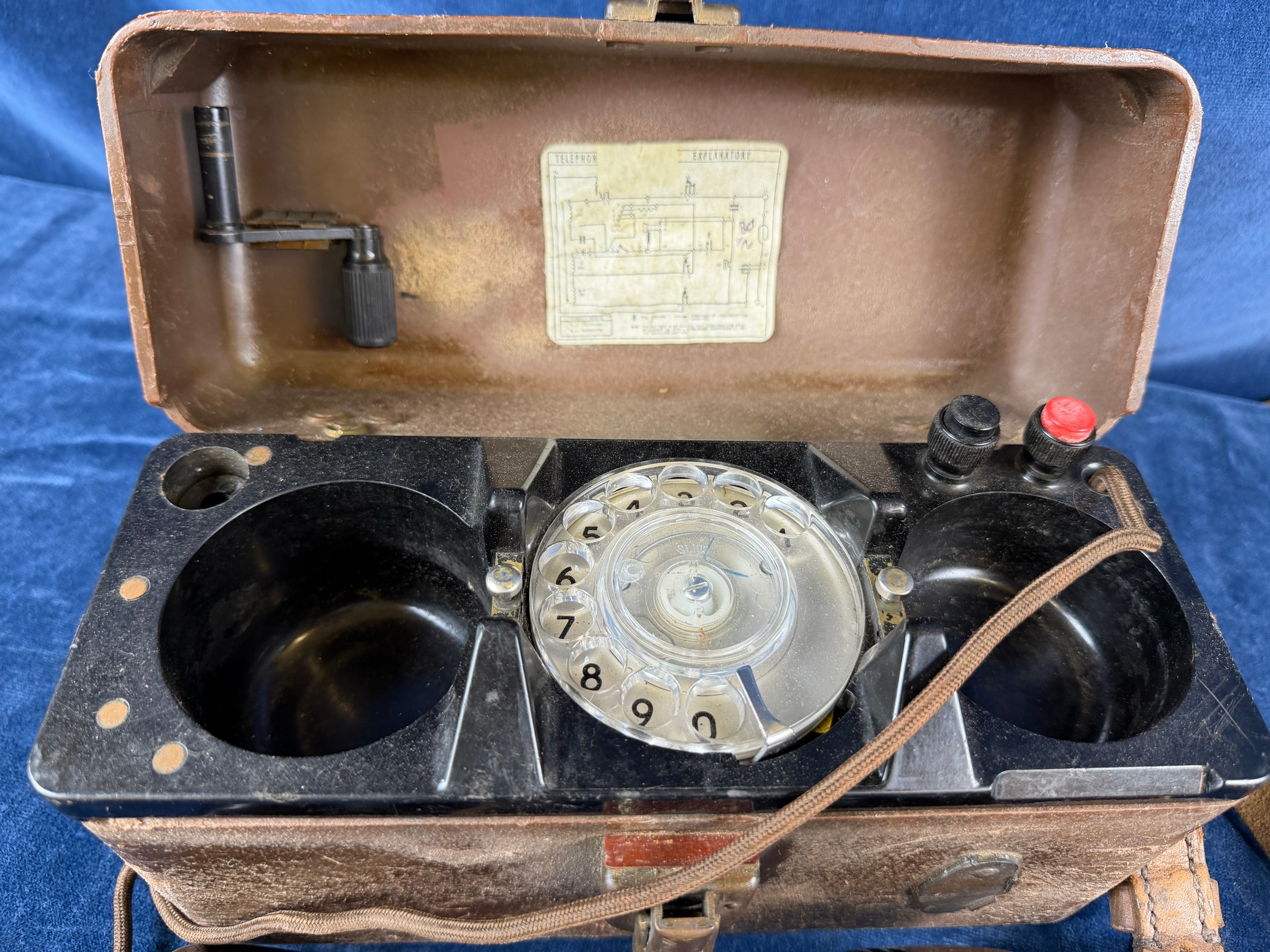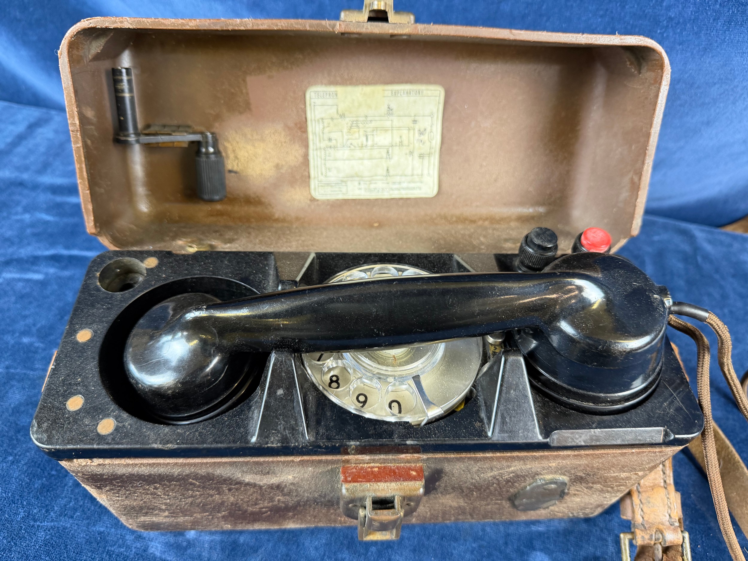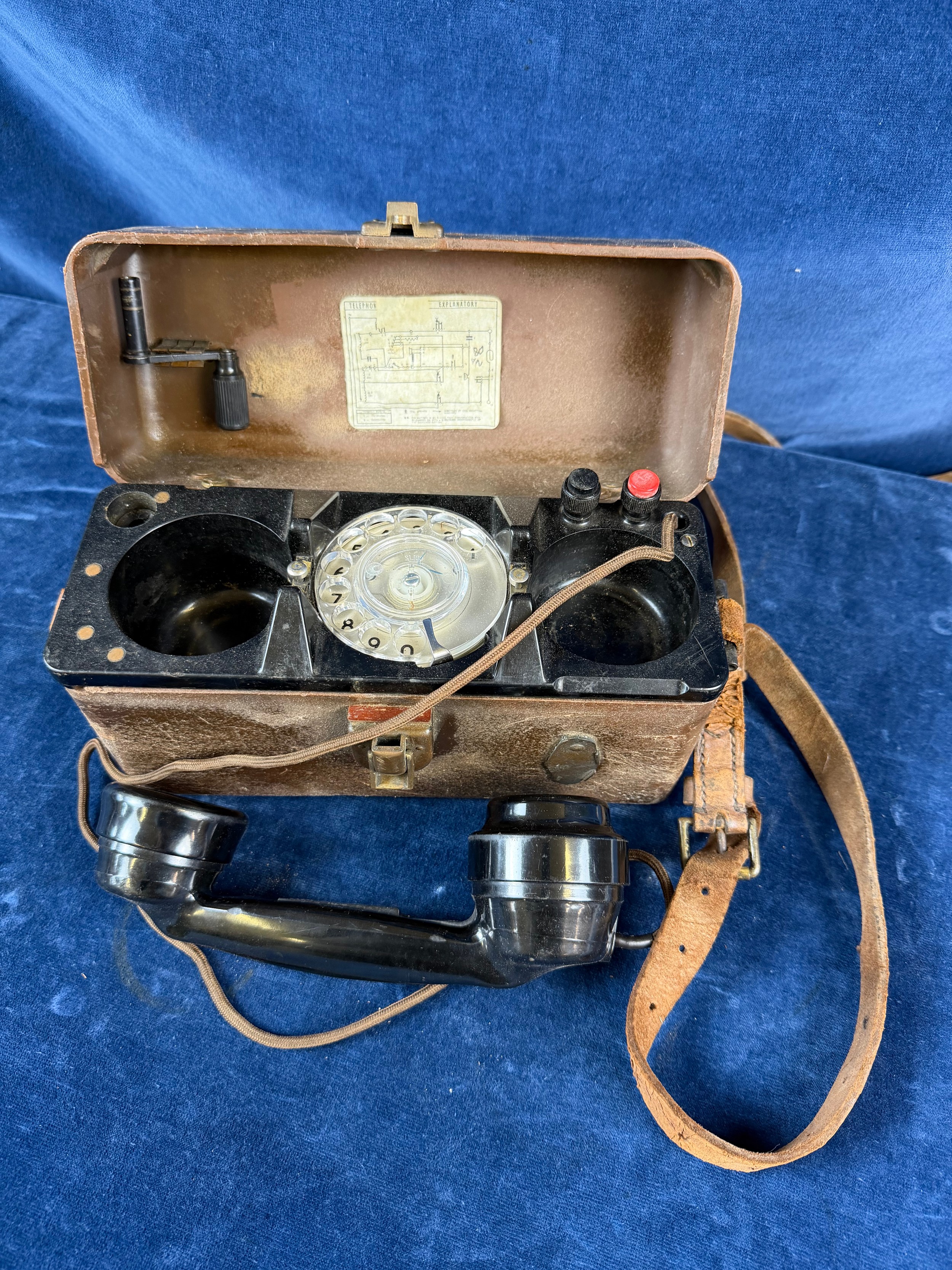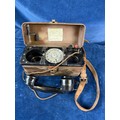 A vintage bakelite field telephone.
