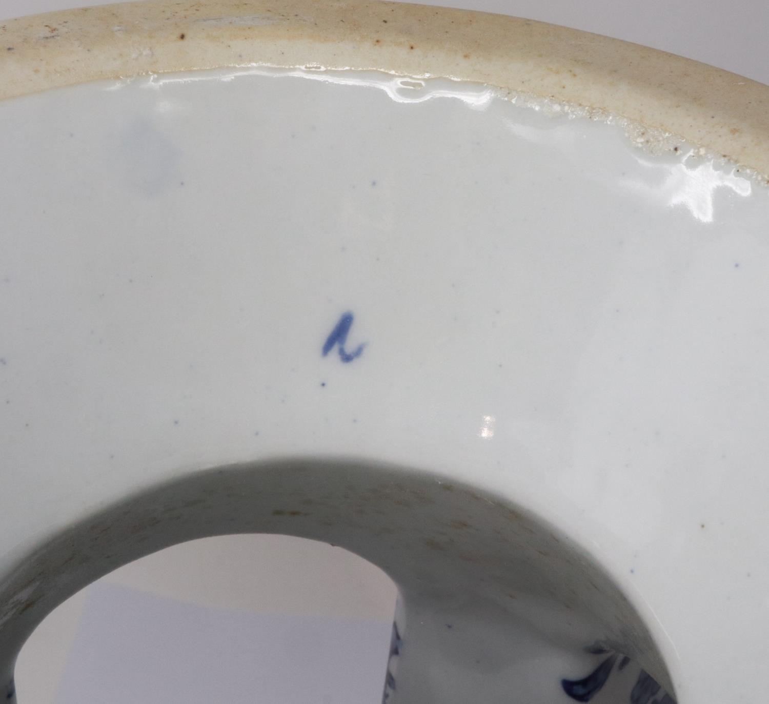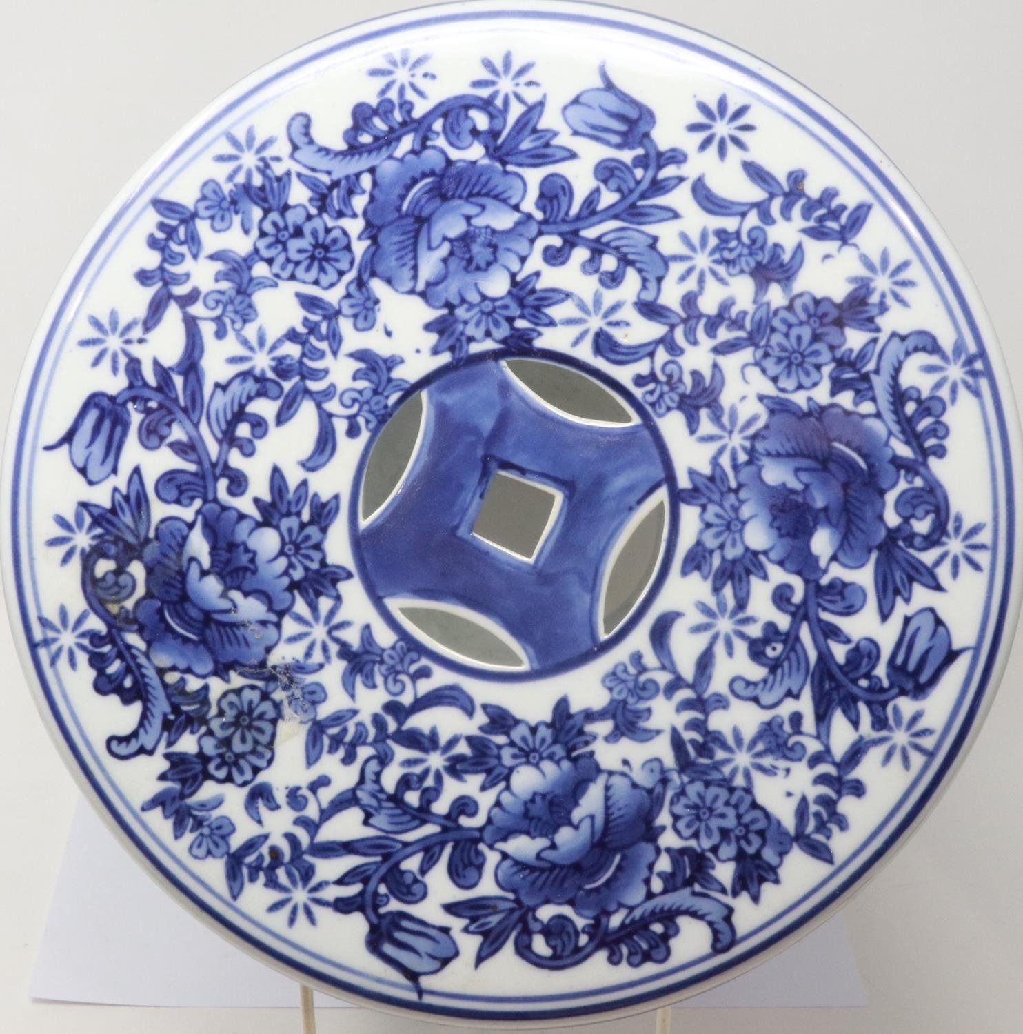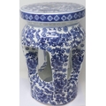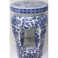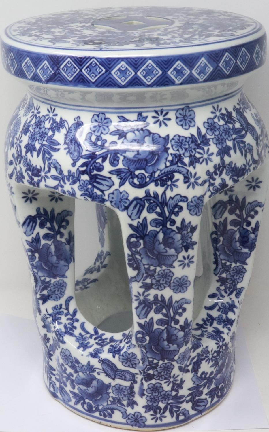 Chinese blue-over-white ceramic stool, decorated with flowers and birds, H: 38 cm. P&P Group 2 (£18+VAT for the first lot and £3+VAT for subsequent lots)