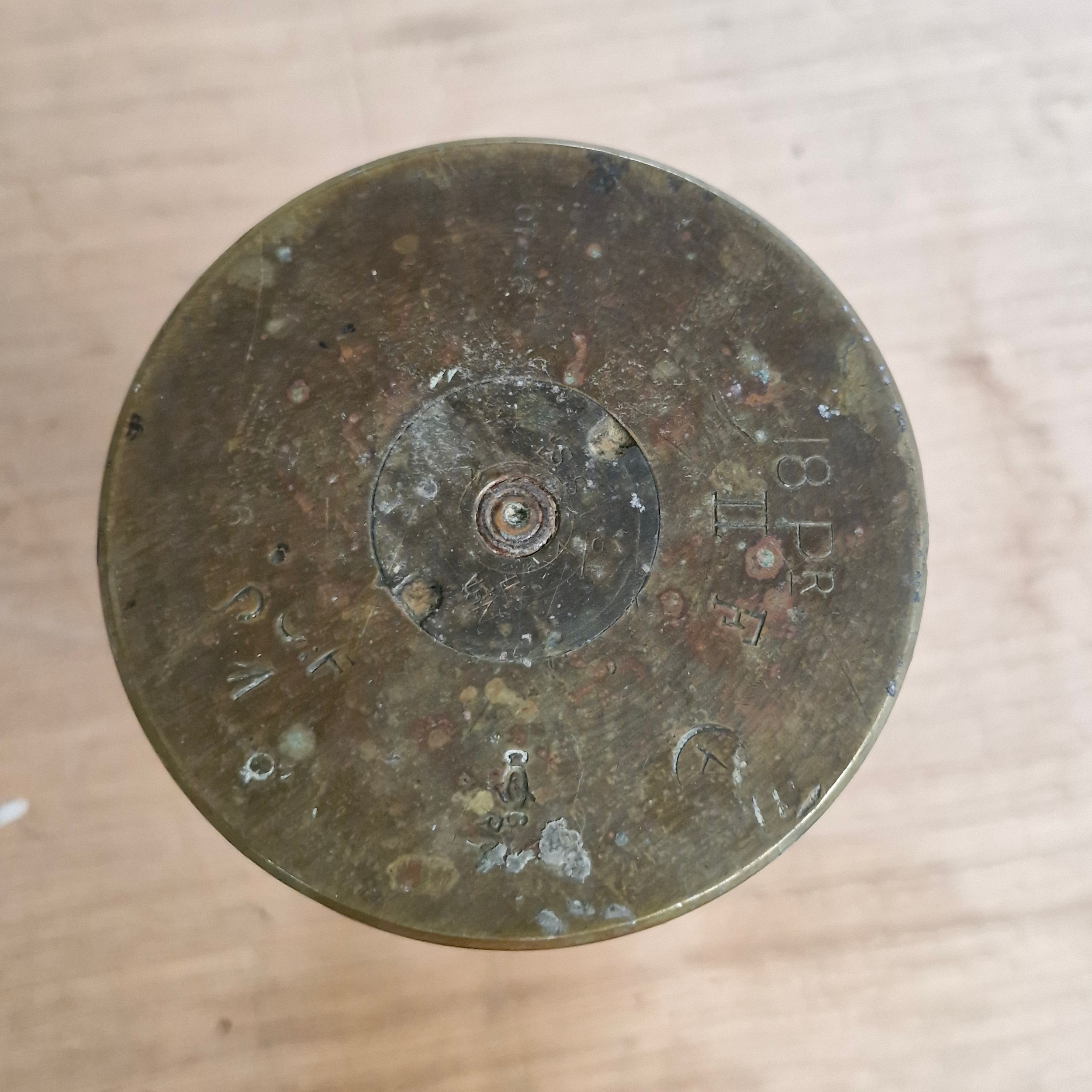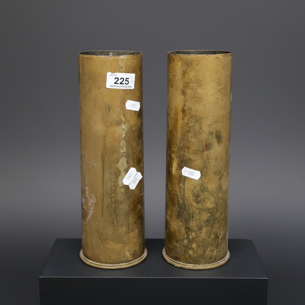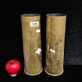 A pair of large brass WWI ammunition shell cases. One shell dated 1916 to base.