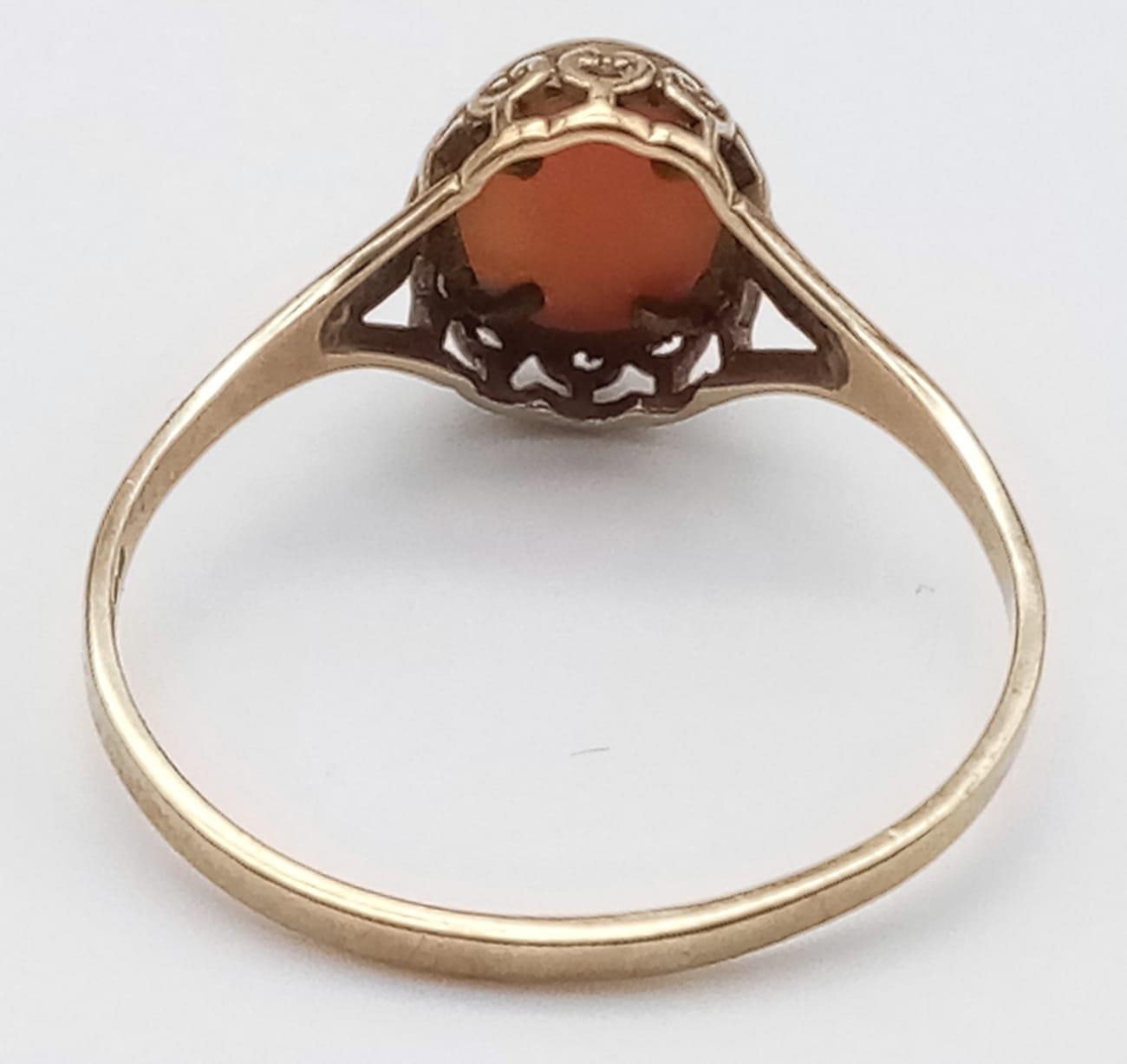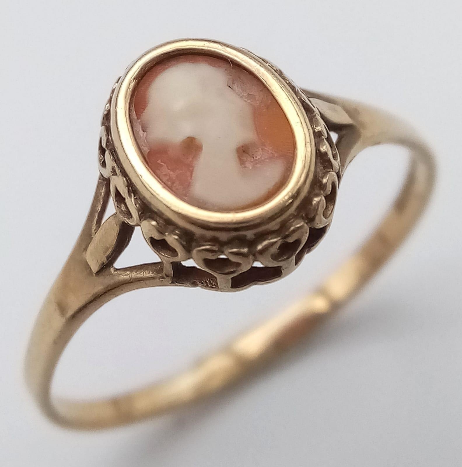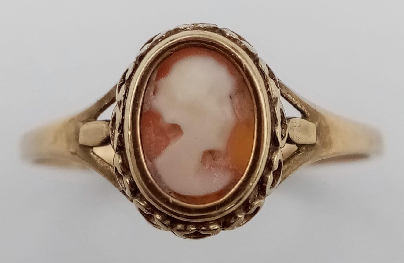 A 9K Yellow Gold Cameo Ring. Size Q. 1.45g total weight.