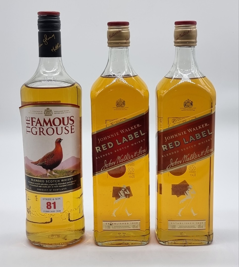 Three 1 litre bottles of Blended Whisky, comprising: The Famous Grouse; and two Johnny Walker 'Red Label. (3)