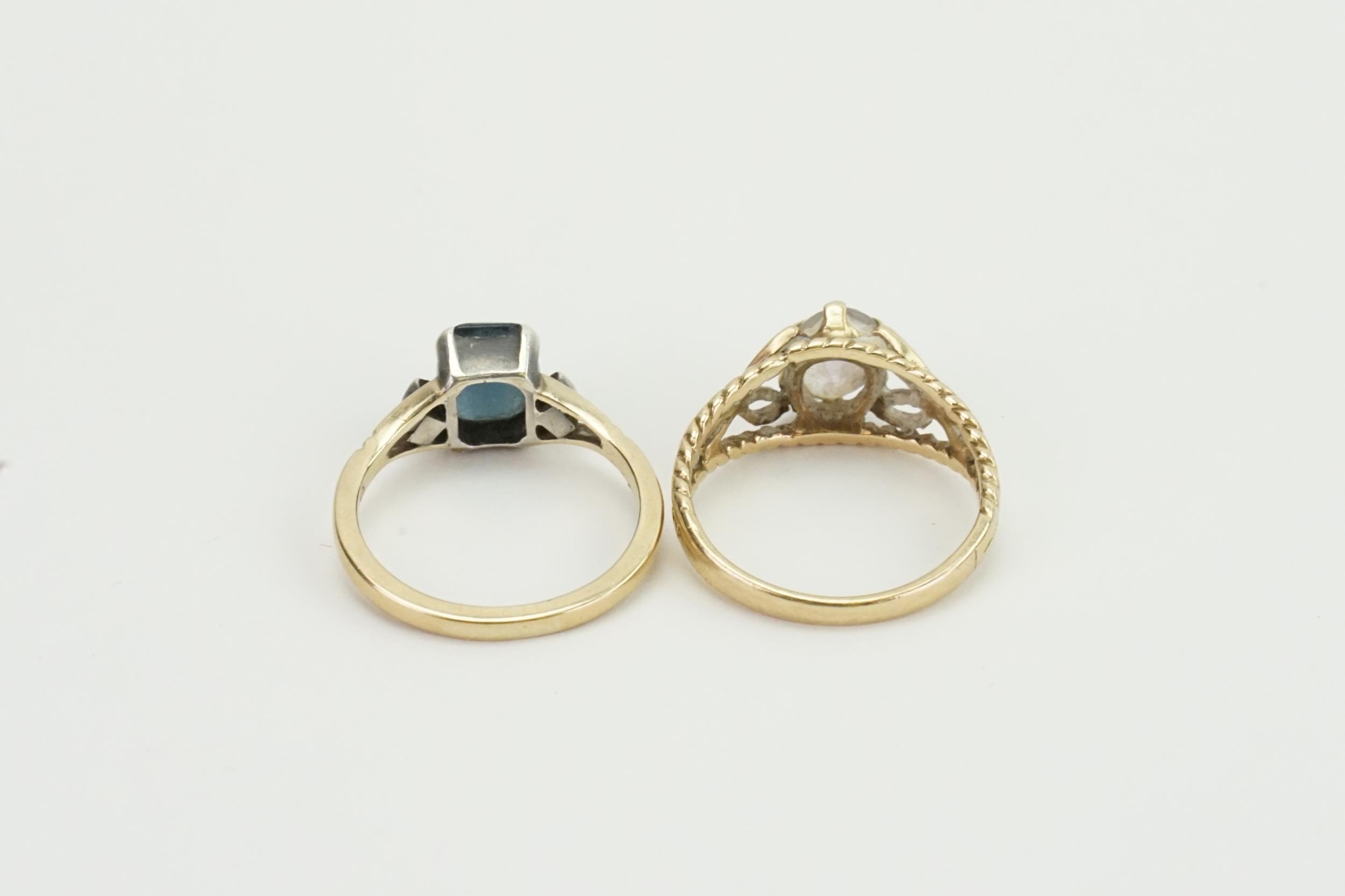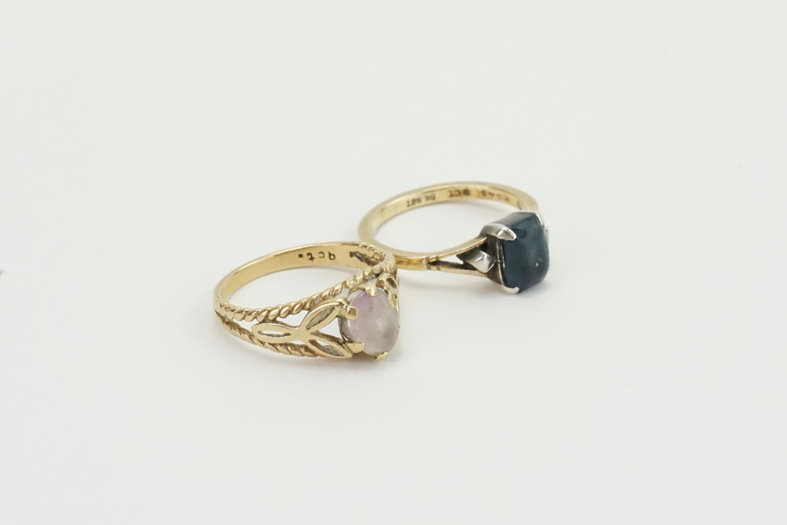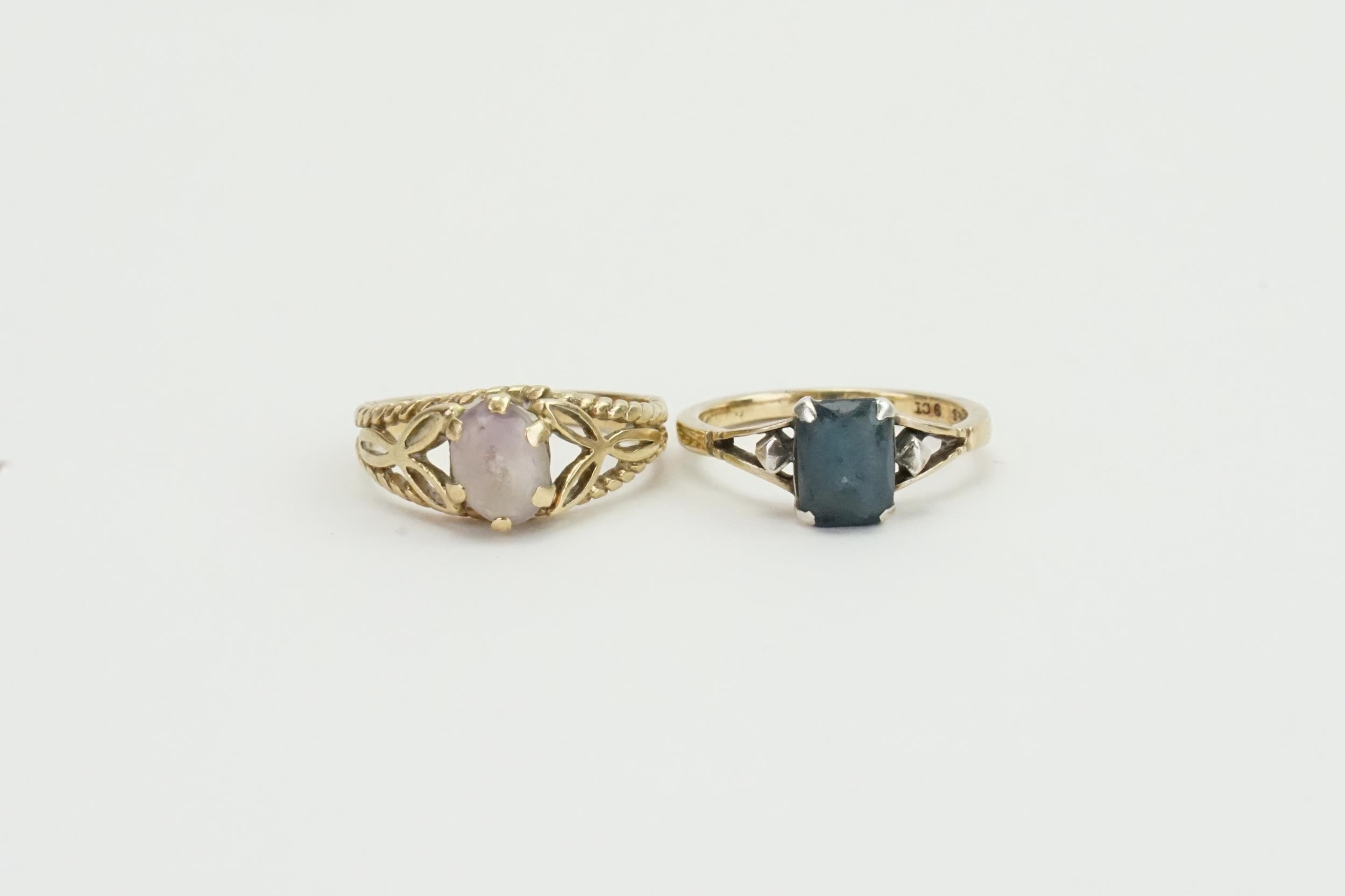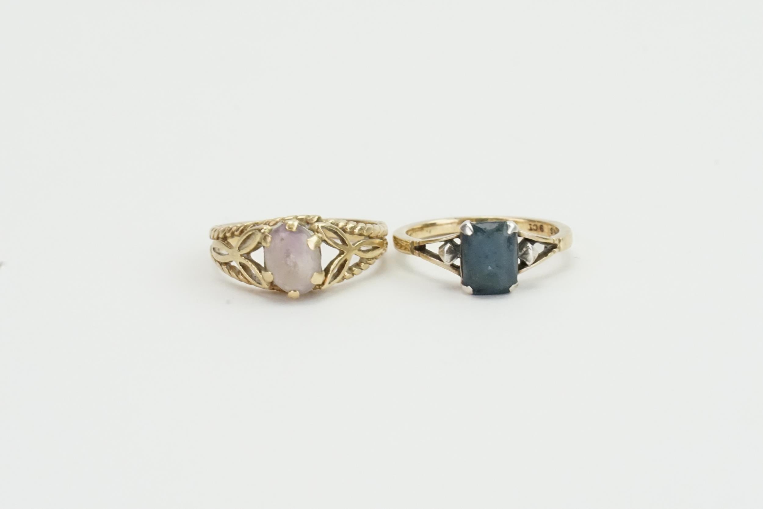 A 9ct gold Sapphire set ring, along with a 9ct Amethyst ring. Weight 5.4g.
