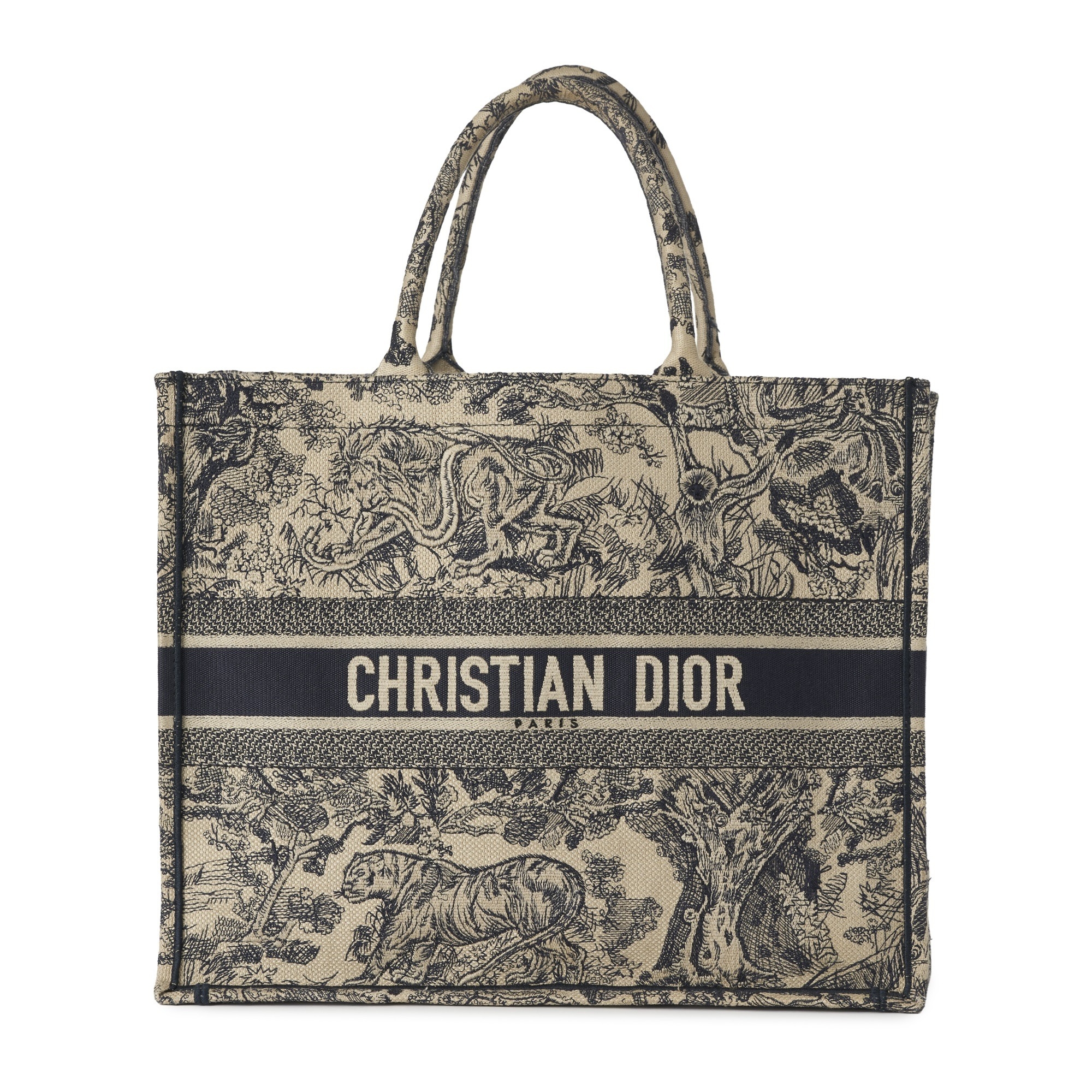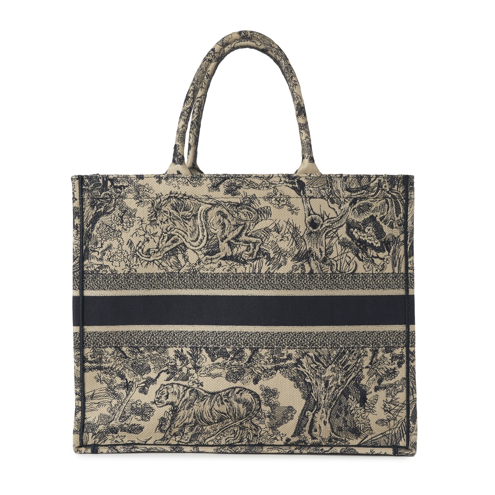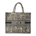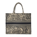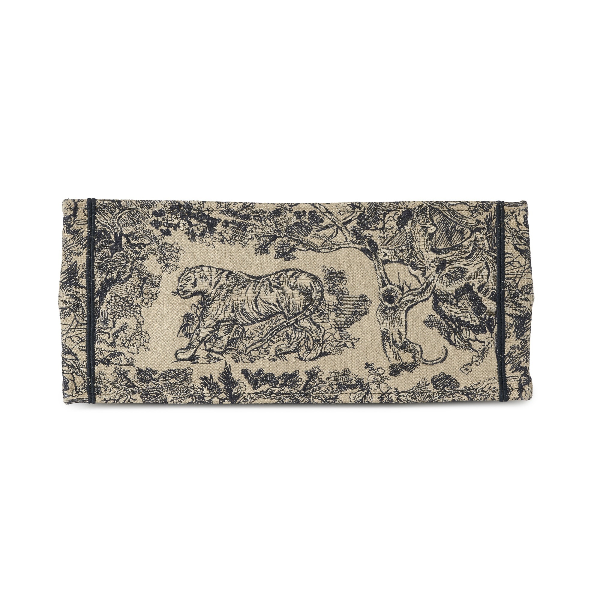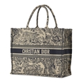 Christian Dior, a large Book Tote, featuring an ecru and blue Toile de Jouy embroidered motif, with two looping handles and an open top, measuring 18.5 by 35 by 42cm