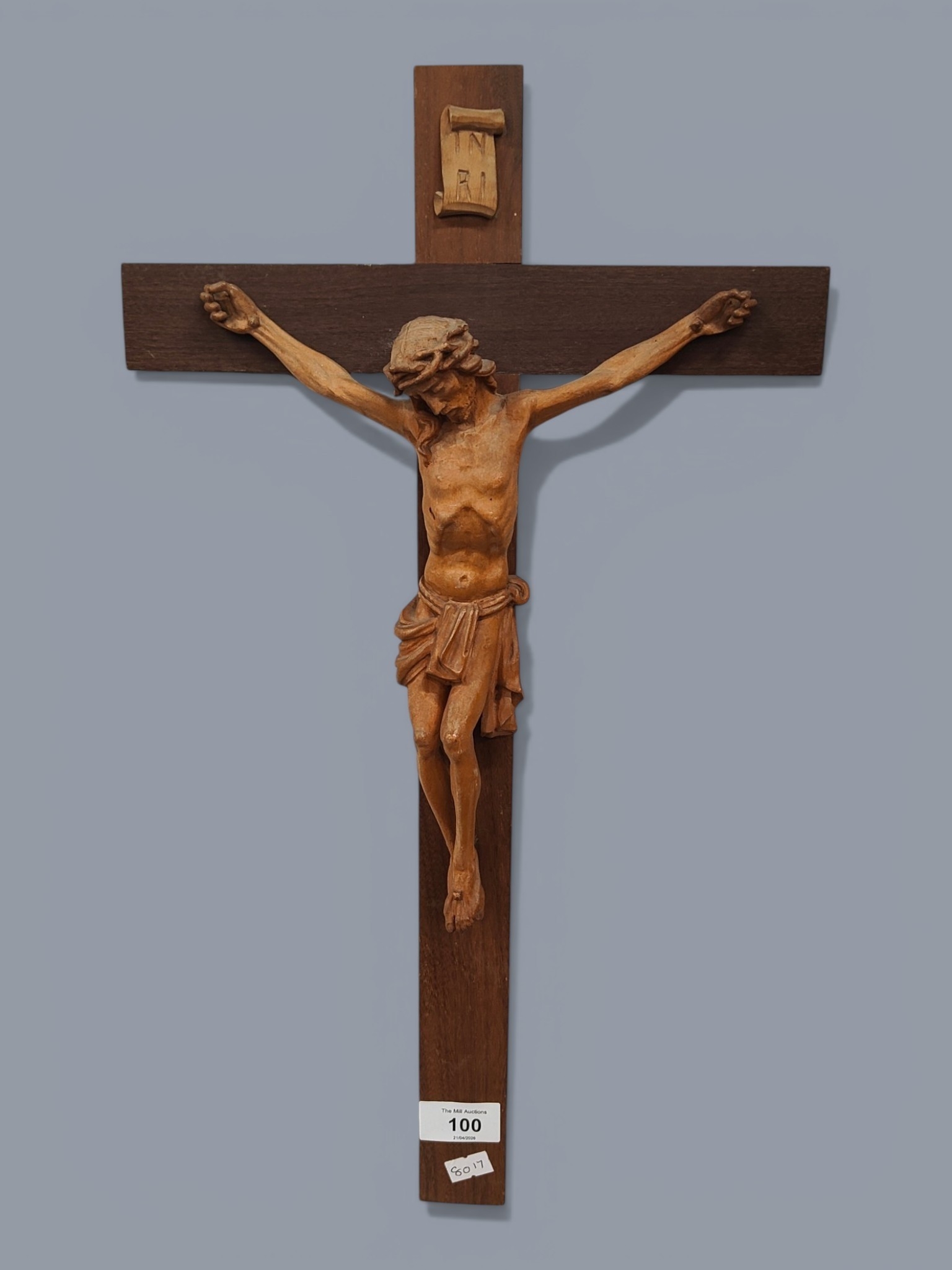 MID CENTURY CARVED CRUCIFIX 50 X 28CM