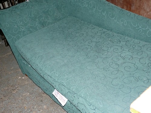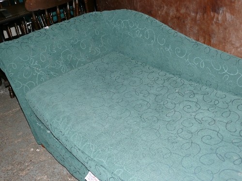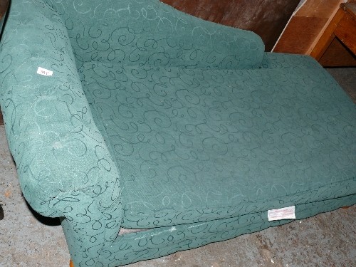 A GREEN CHAISE LONGUE.
