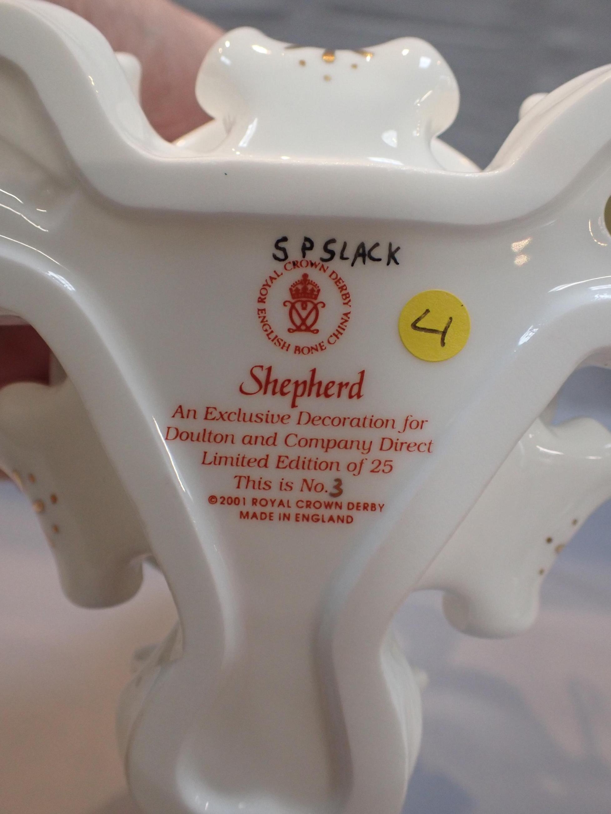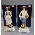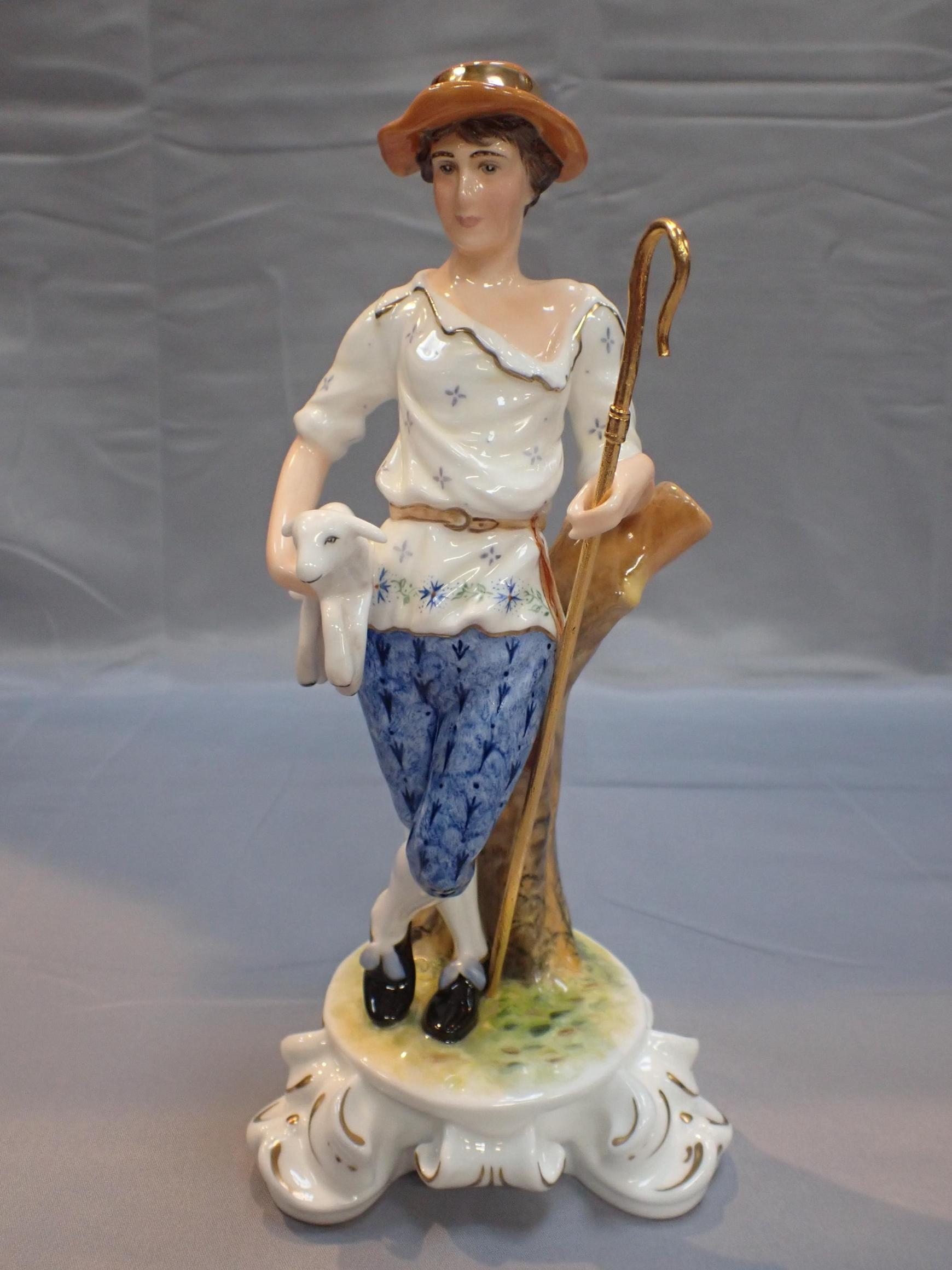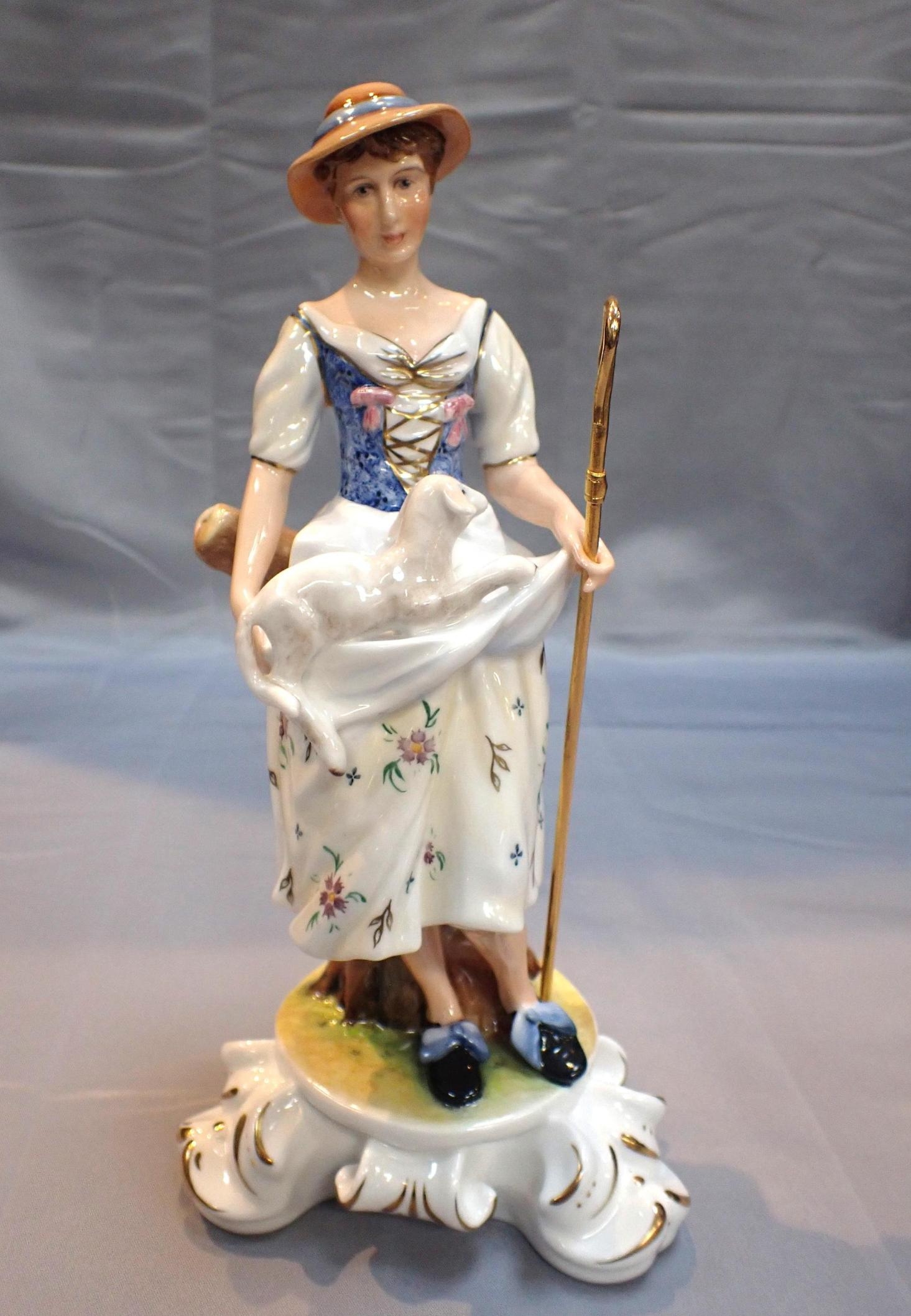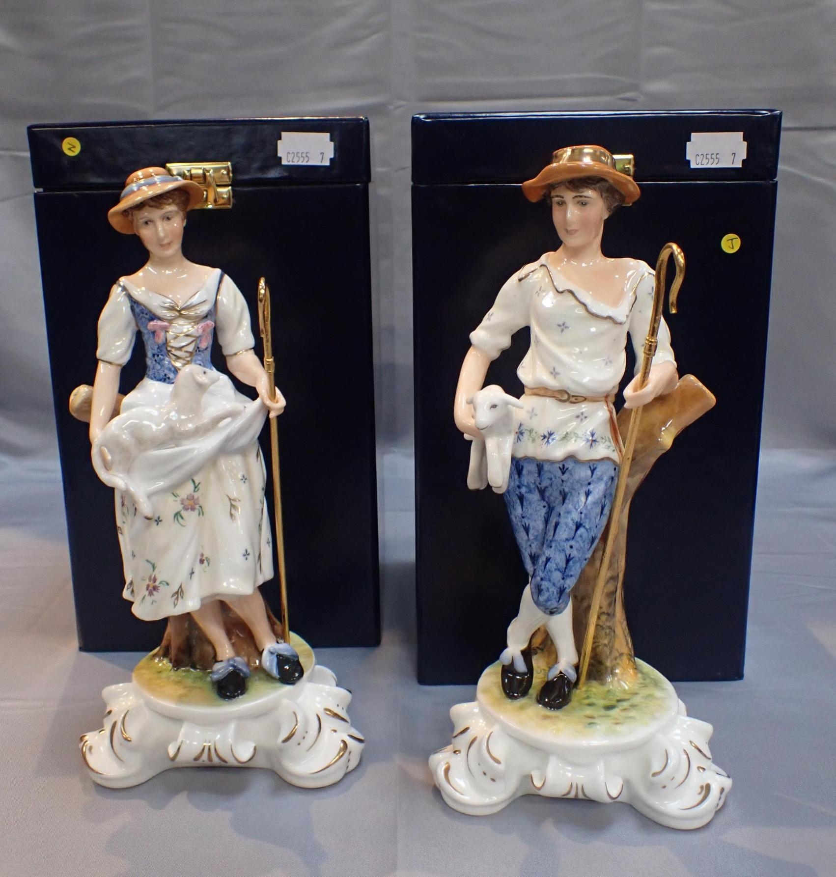 each holding a lamb with sherherds crook, leaning on a tree stump, numbered 3/25, 25cm high, certificates and boxed, (2)
