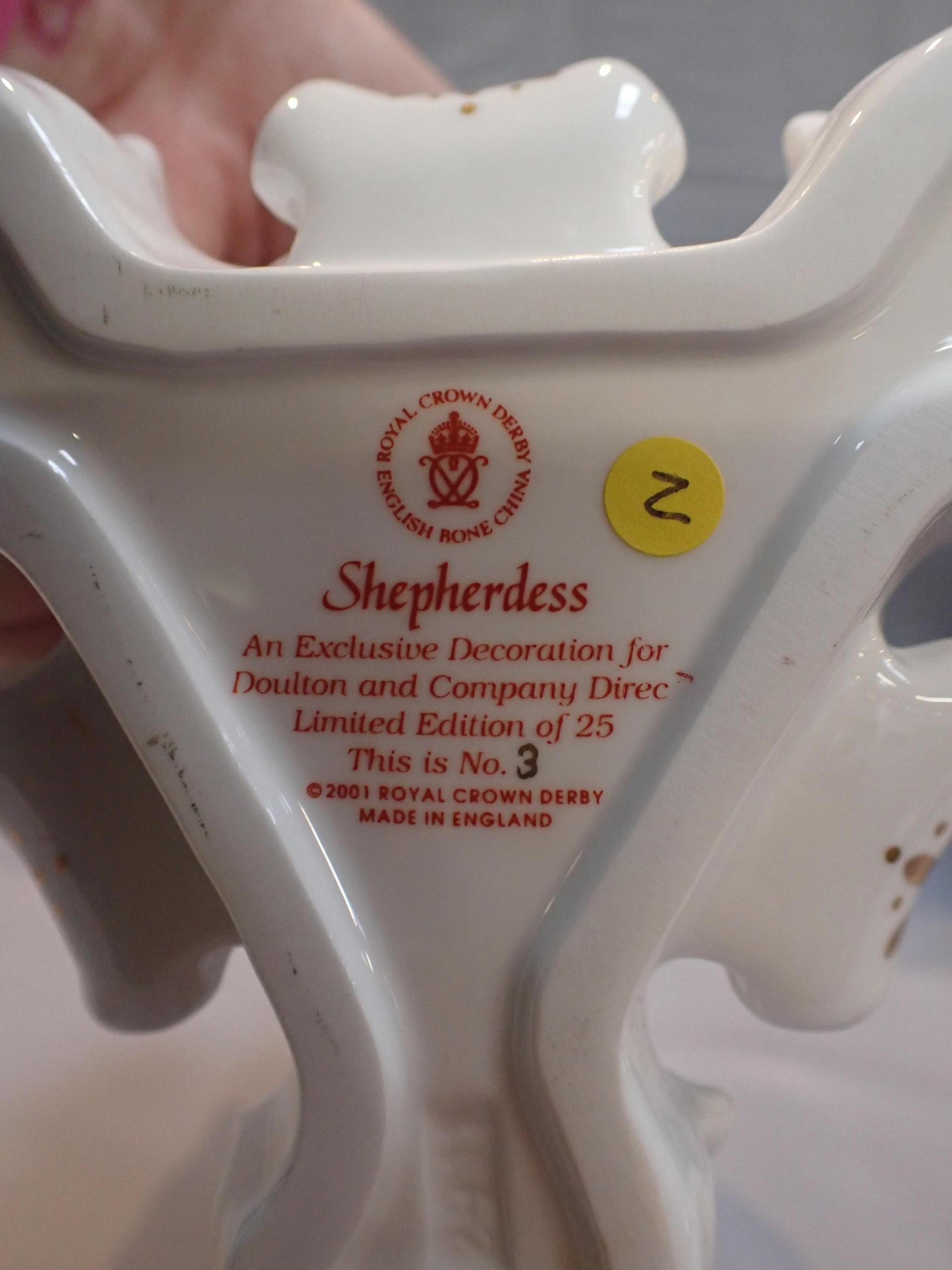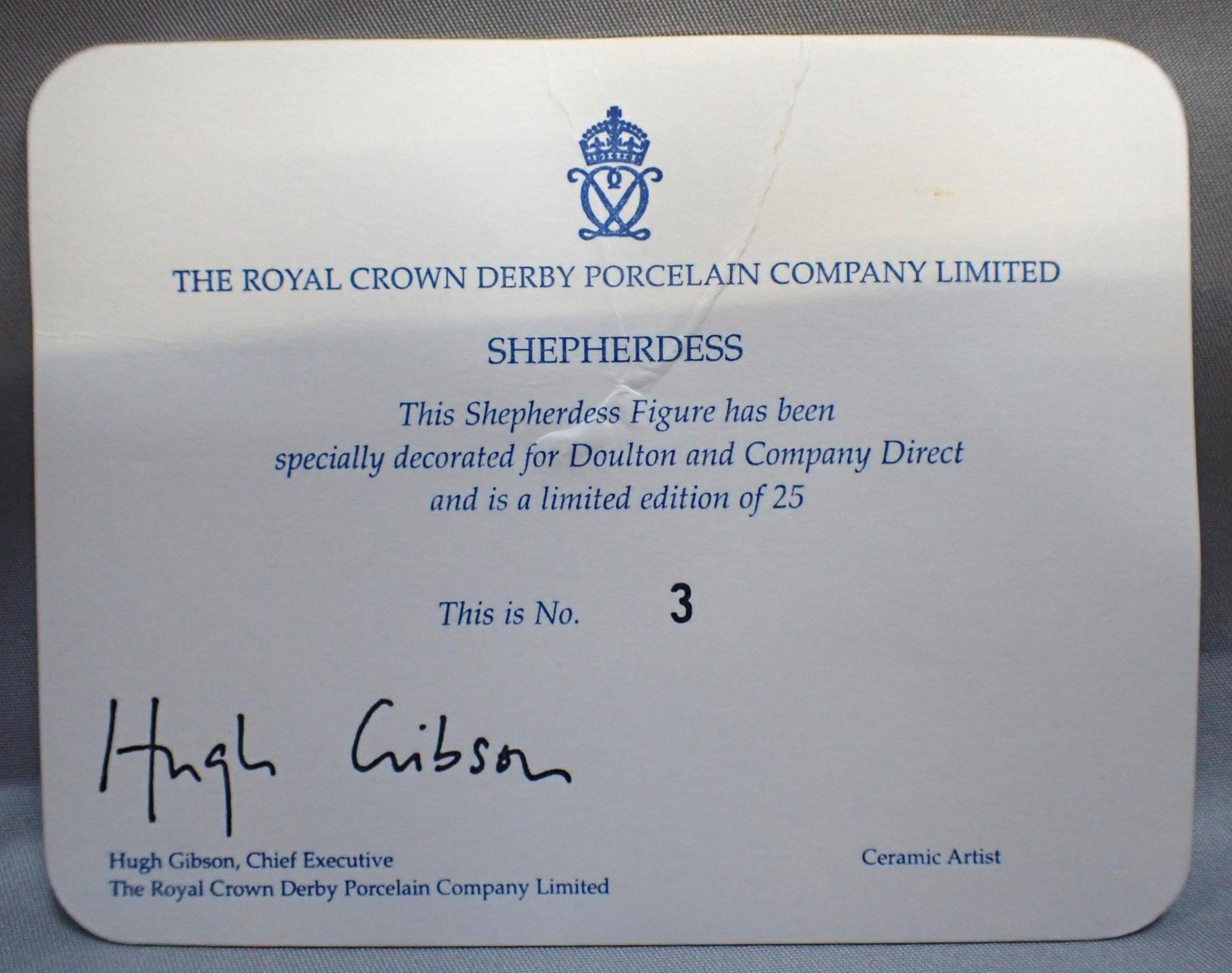 A PAIR OF ROYAL CROWN DERBY FIGURES OF A SHEPHERD AND SHERPHERDESS
