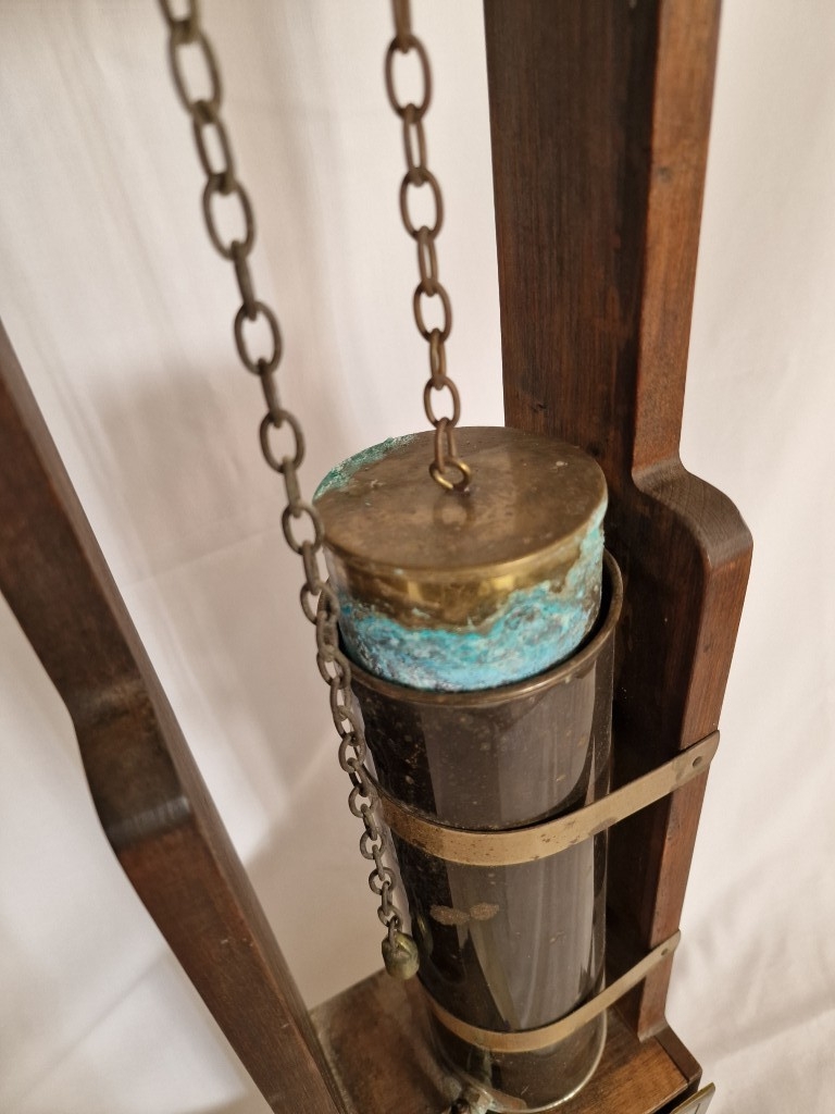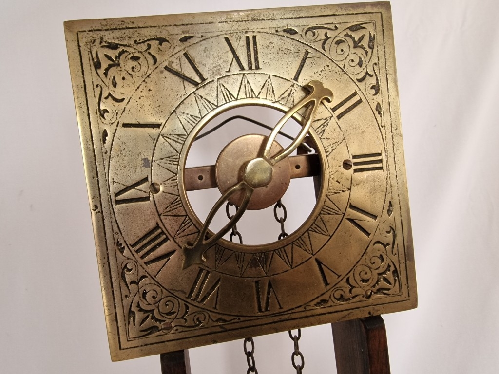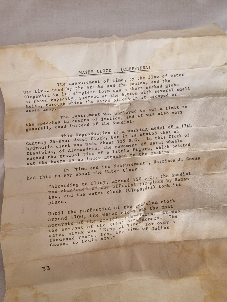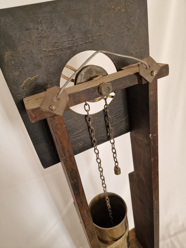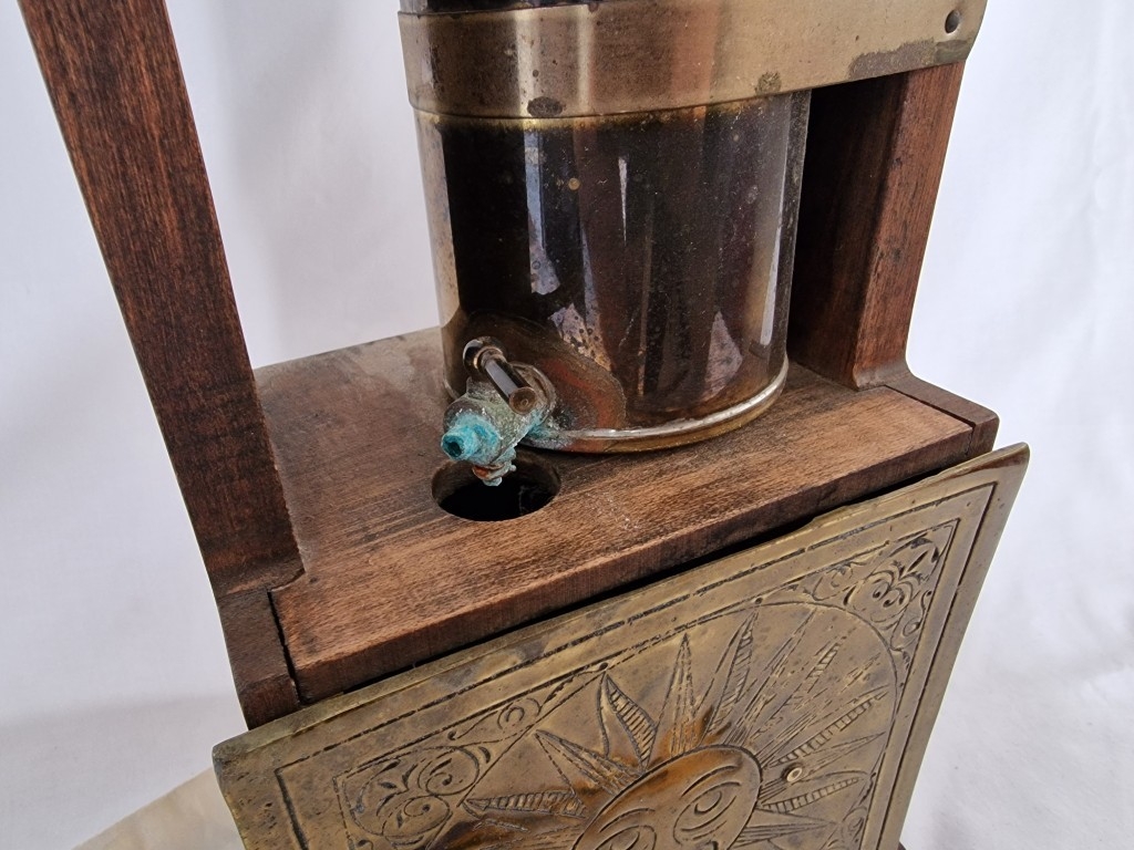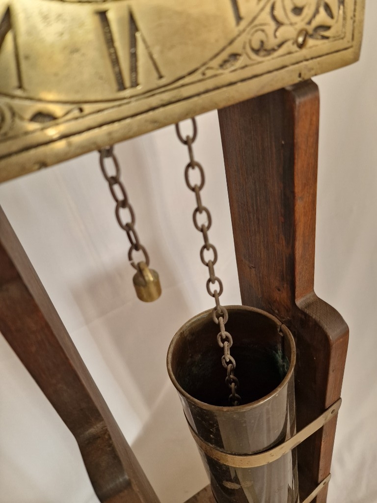 Rare & Fascinating 'Clepsydra', an English Water Clock, a Vintage Mid-Century Reproduction of an Antique 17th Century 24-Hour Water Clock with Oak Case, Brass Face & Hands, Float on Chain with Water Vessel Over Collection Tank with Sun Dial Decoration to Brass Face, (Approx. H: 79cm),
