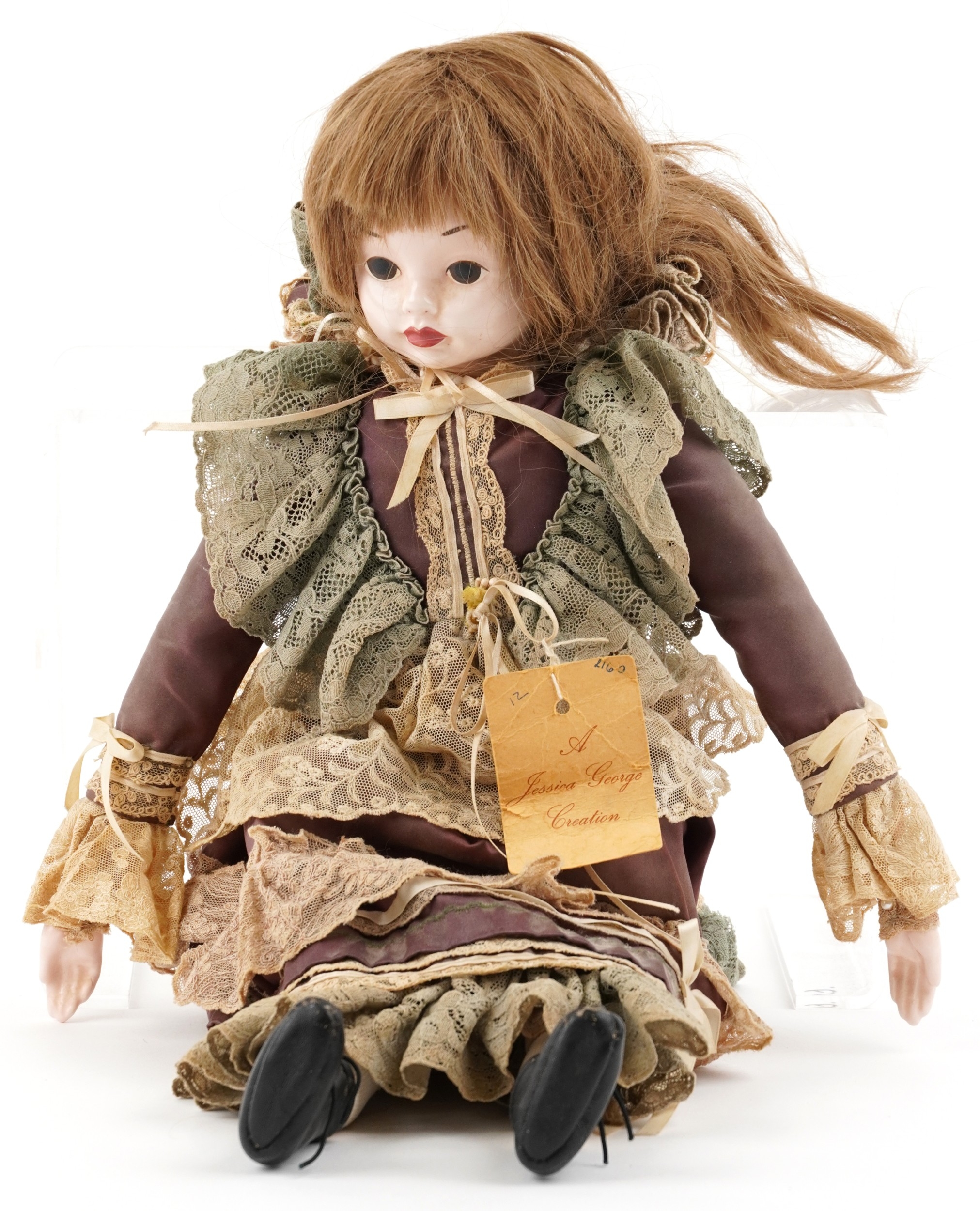 A Jessica George Creation porcelain head English doll - Rachel, with lace clothing, 51cm high.