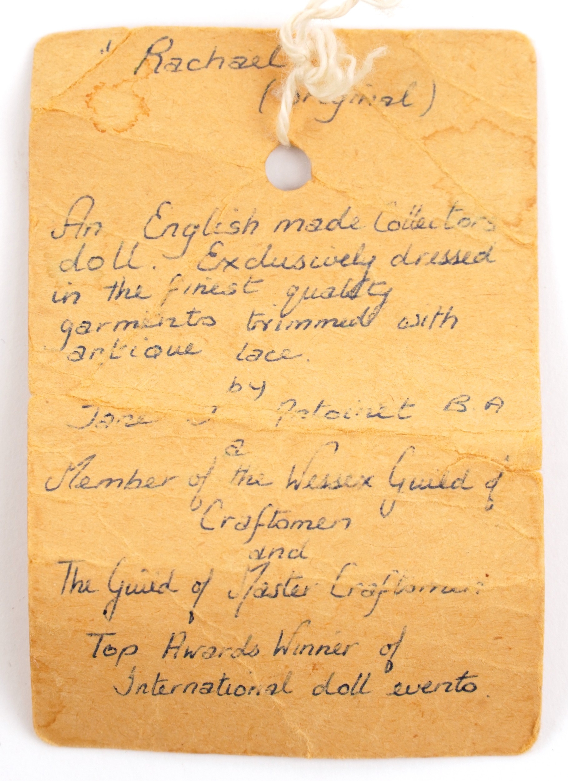 A Jessica George Creation porcelain head English doll - Rach...