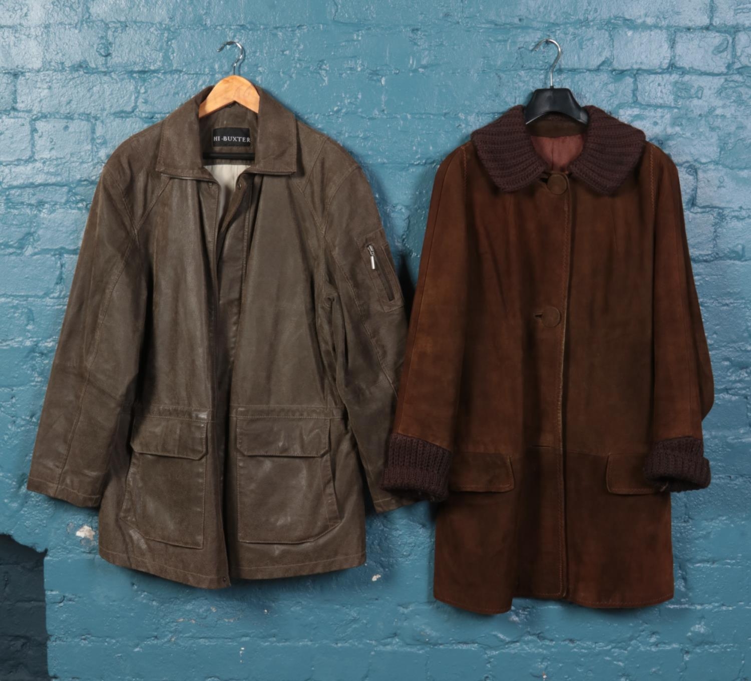 Two animal skin jackets. To include a Hi-Buxter Pig skin jacket size 52 and an Elk skin jacket. Chest size: 61cm, Length 91cm.