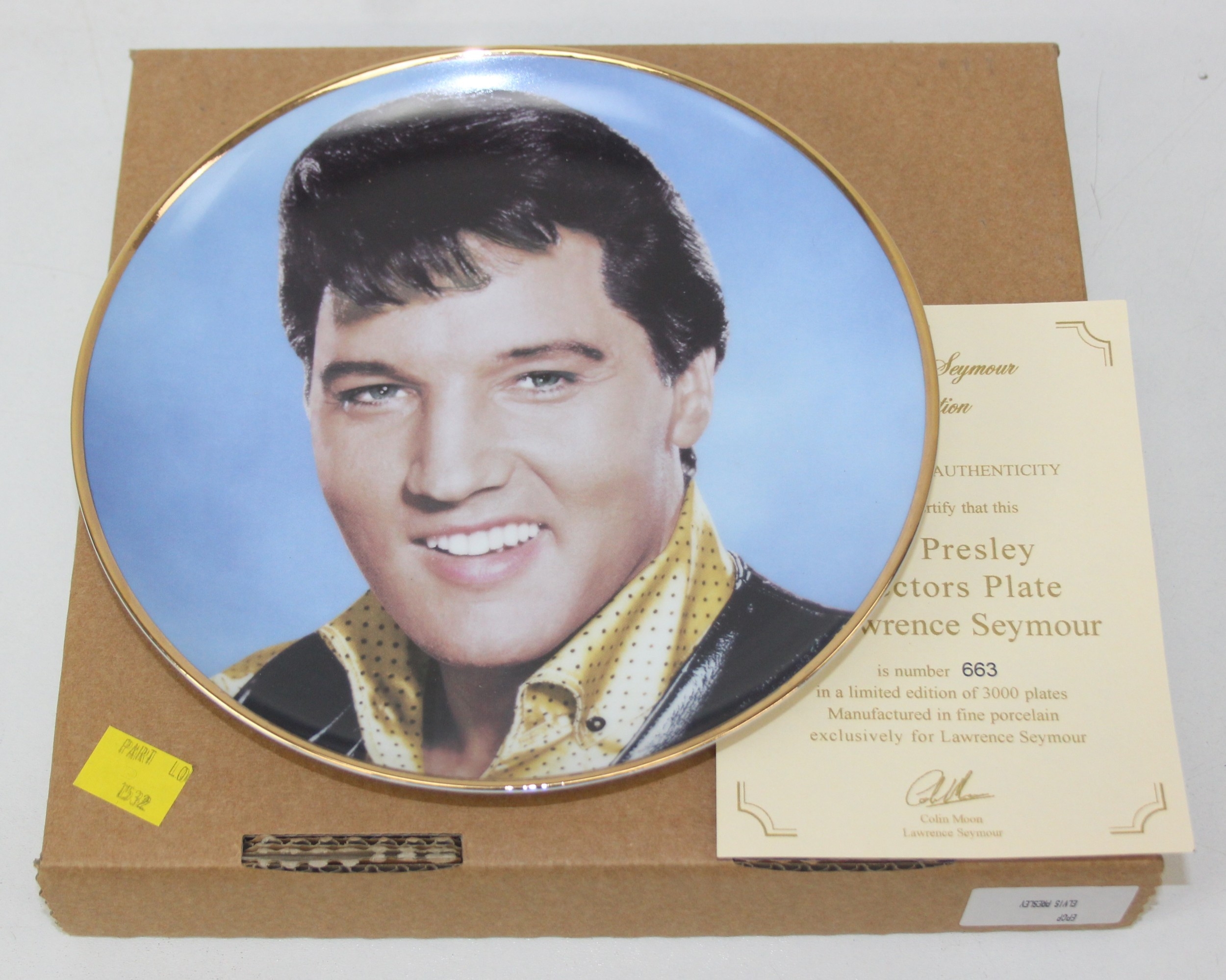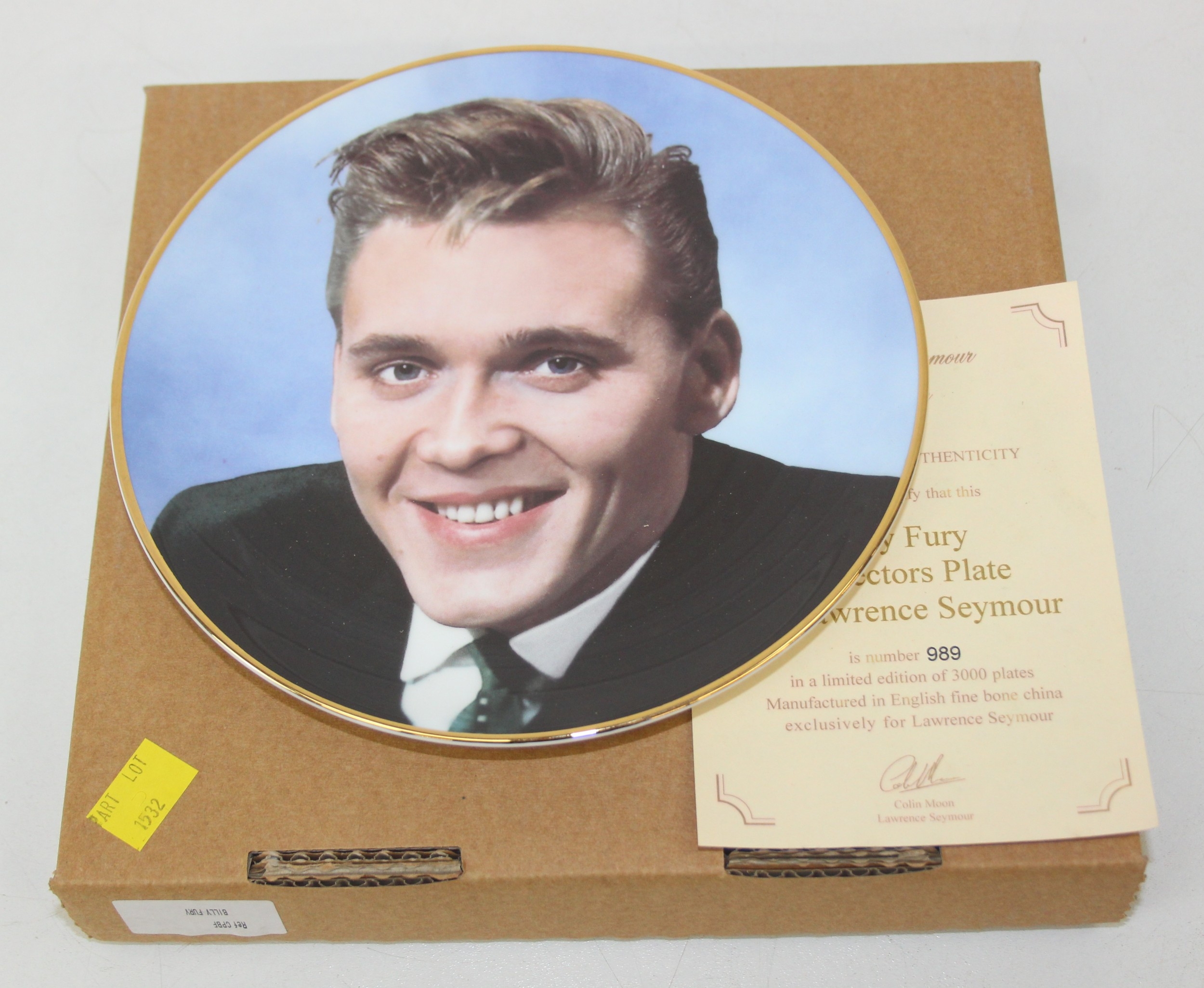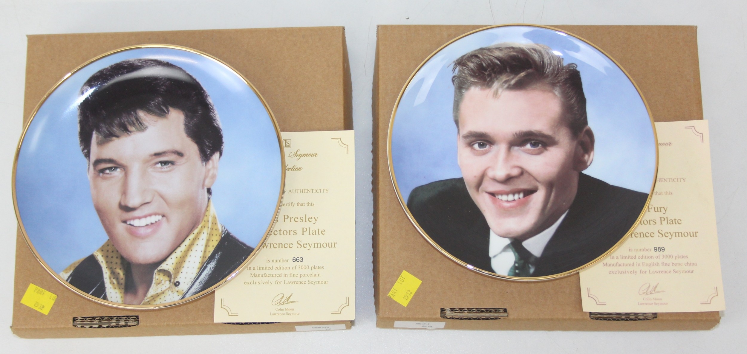 Two limited edition collectors plates from the Lawrence Seymour collection to include Elvis Presley 663/3000 and Billy Fury 989/3000 [2]