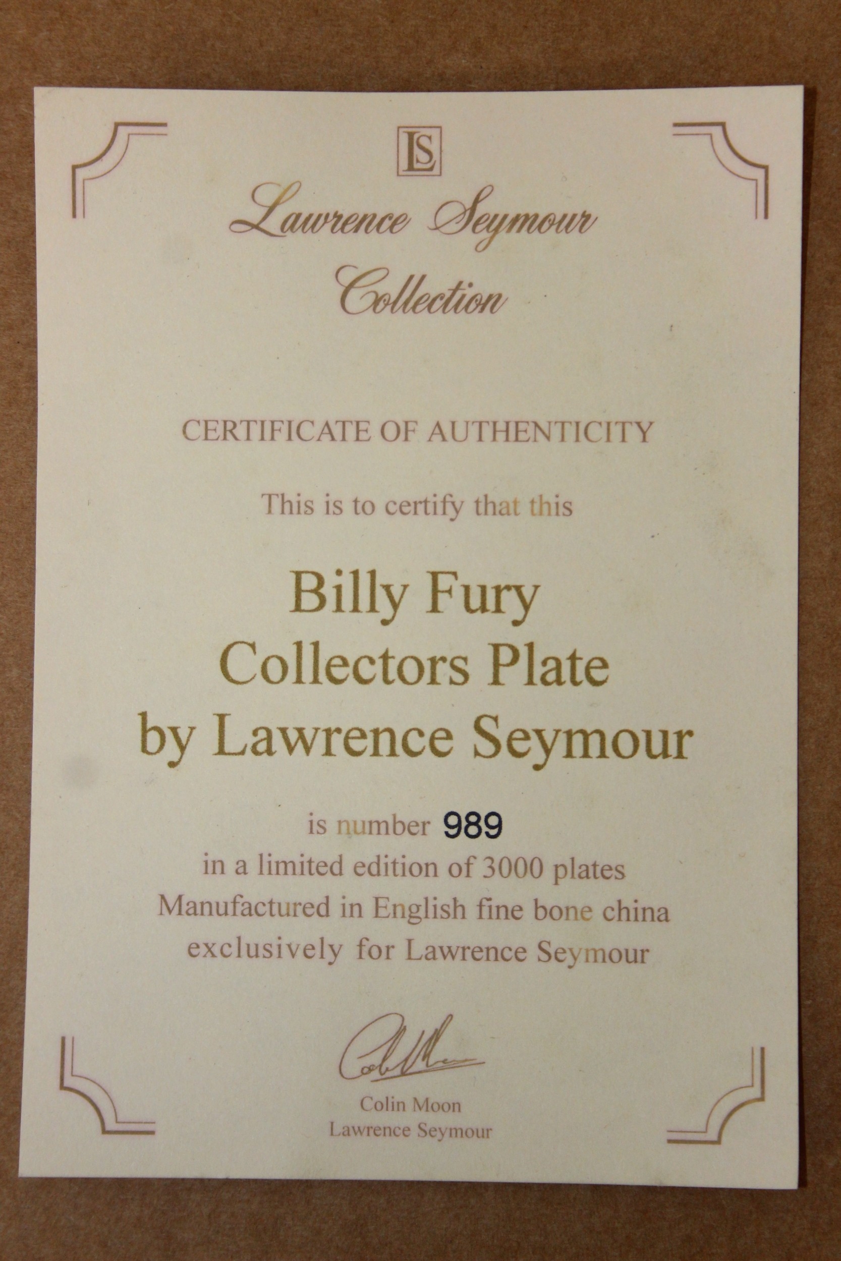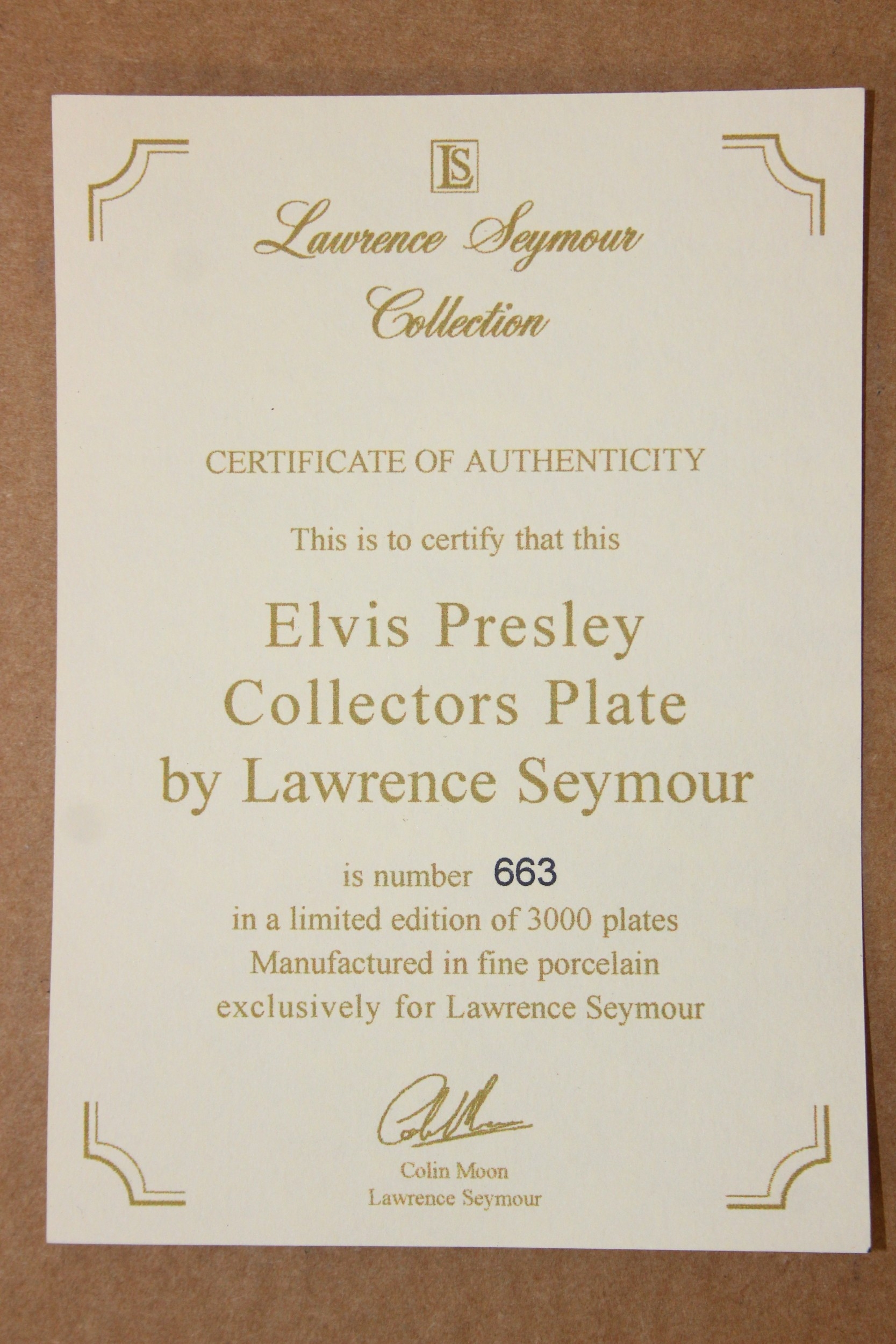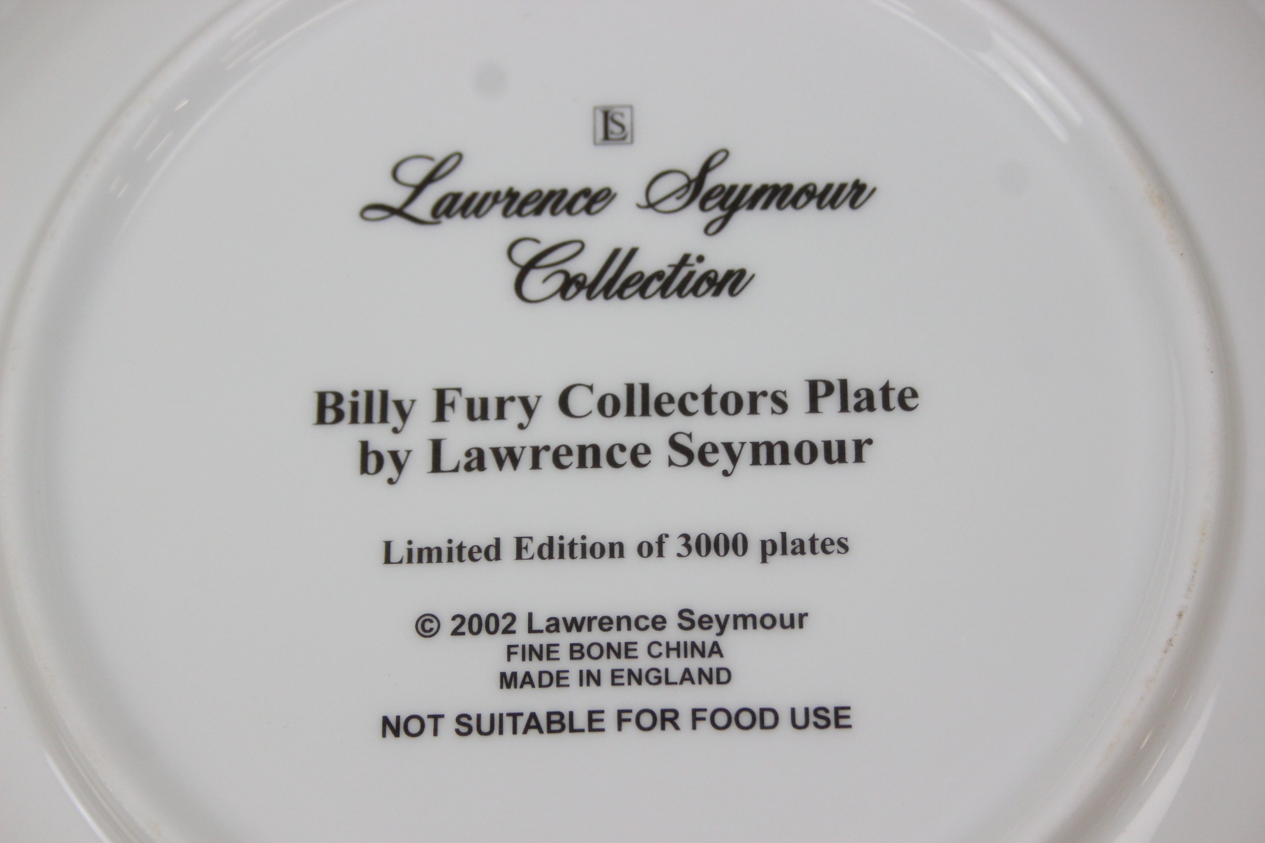 Two limited edition collectors plates from the Lawrence Seymour collection to include Elvis Presley 663/3000 and Billy Fury 989/3000 [2]