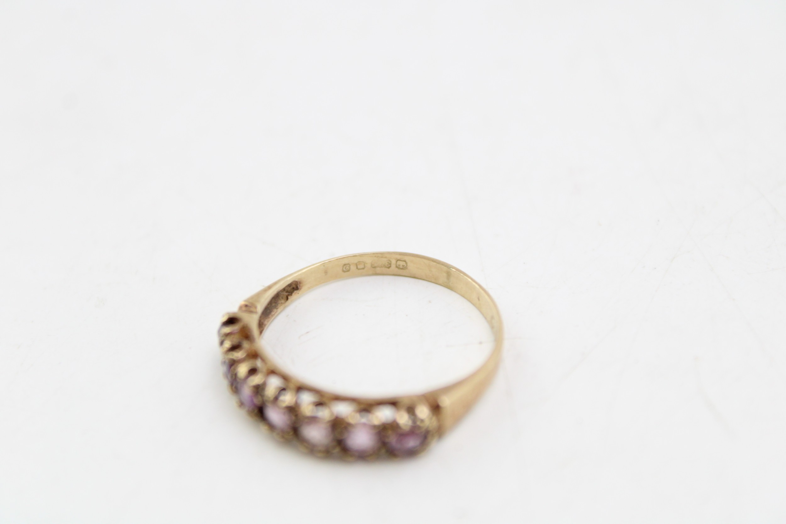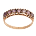 A 9ct gold lady's ring, set with seven stones, likely rose quartz, size P, 1.7g.